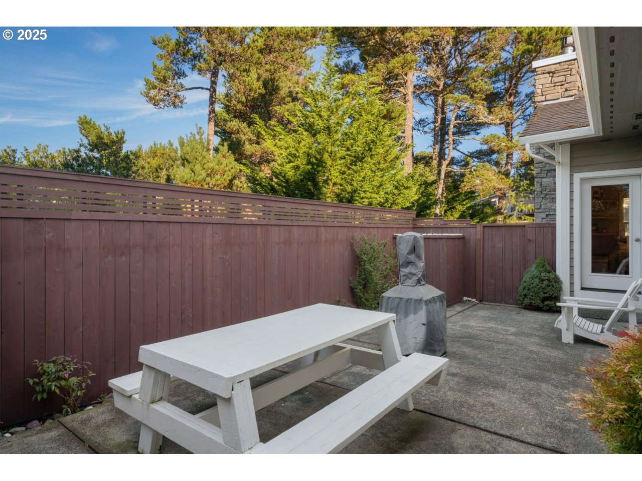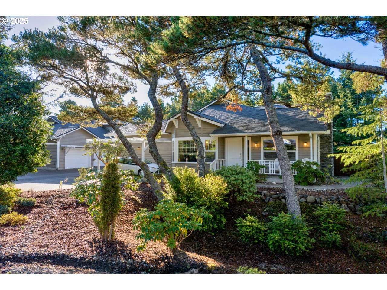 Welcome to Sandpines West, a sought-after gated golf course community in Florence, Oregon. This charming 1-bedroom, 1-bath townhome offers easy coastal living with vaulted tongue and groove ceilings and an open great room that feels light and airy. The inviting living area features a cozy fireplace, custom built-ins and beautiful hardwood floors throughout. Large windows fill the space with natural light, while the spacious primary bedroom includes floor-to-ceiling closets and a private entrance to the fenced backyard—perfect for relaxing or entertaining. Enjoy low-maintenance landscaping, ideal for a fulltime or vacation living just minutes from the beach, Old Town, and all the amenities Florence has to offer.