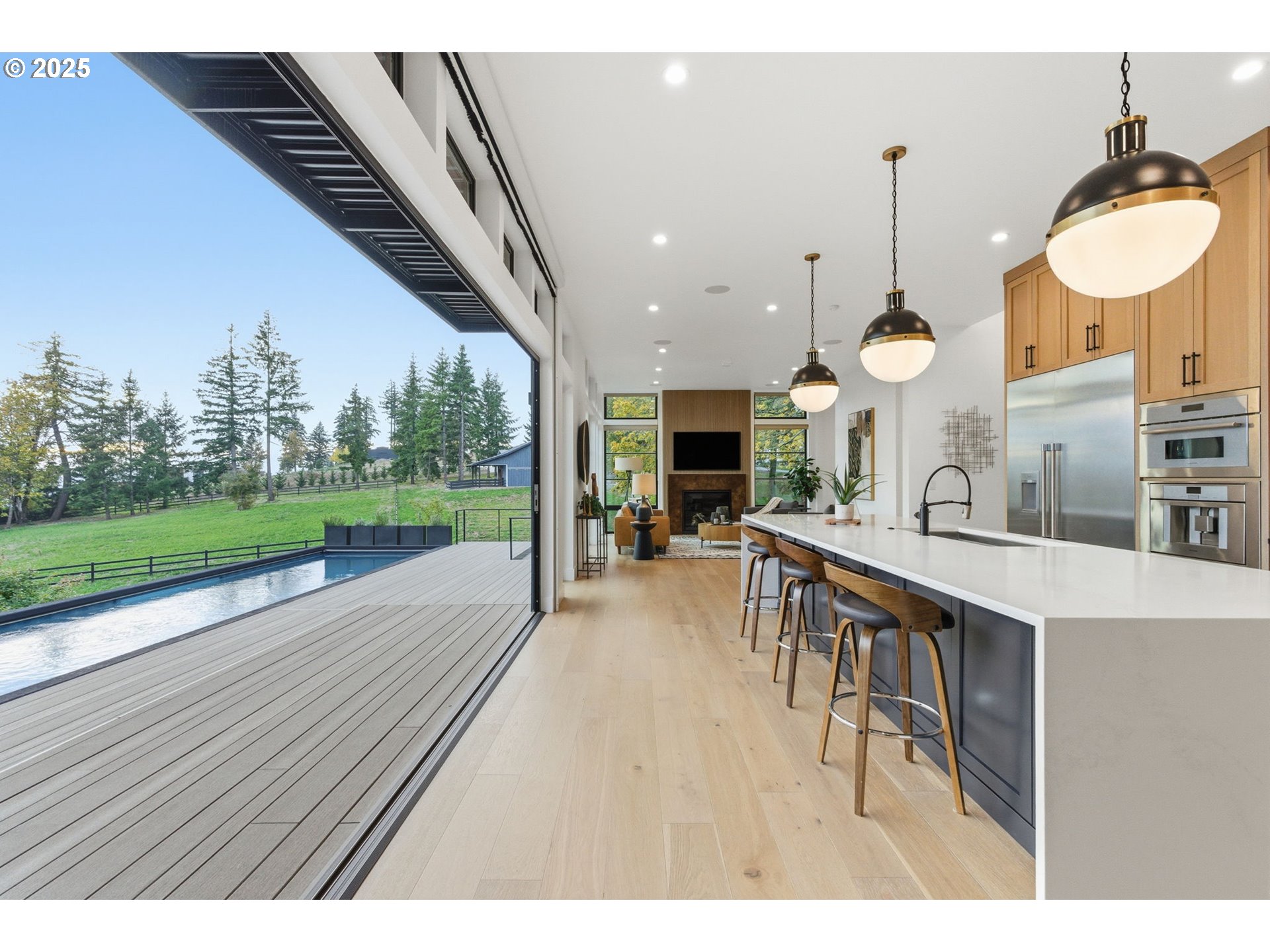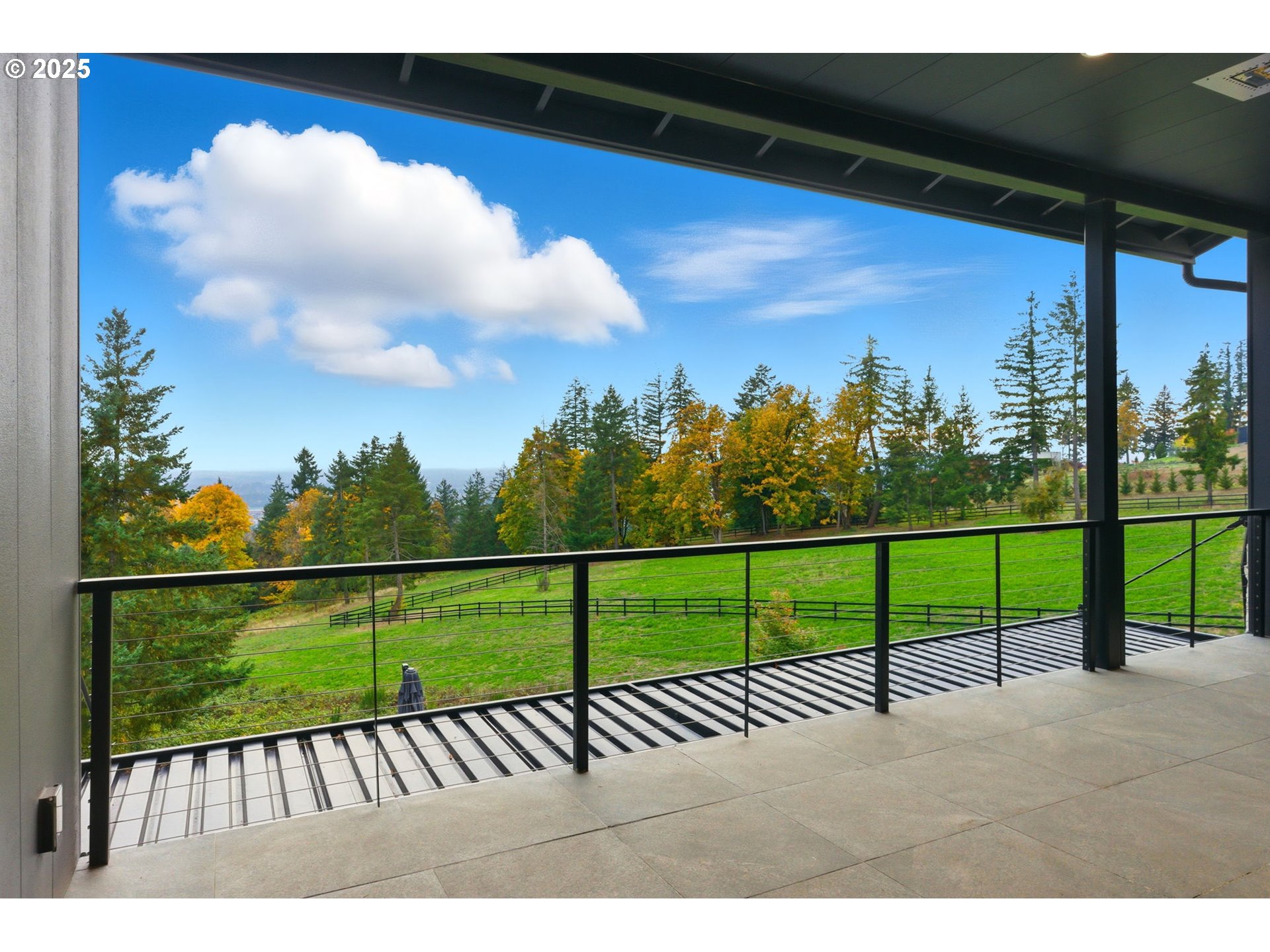 Commanding panoramic views of the valley and Oregon Wine Country, this extraordinary 2022 Street of Dreams residence—built by Elite Development NW in collaboration with House of Ponce—is a stunning expression of refined design, modern craftsmanship, and country serenity. Thoughtfully positioned on beautifully landscaped acreage, the home blends architectural sophistication with natural beauty, creating a setting that is as inspiring as it is livable. The interior showcases a chef’s kitchen with Thermador high-end appliances, Nano doors, and designer finishes throughout, emphasizing seamless indoor-outdoor living. Expansive windows and view terraces capture light from every direction, while open gathering spaces encourage effortless entertaining. A beautifully appointed private guest apartment offers flexible accommodations for hosting or multigenerational living. Outdoors, a sleek Modpools container pool anchors the view terraces, perfectly positioned for year-round enjoyment. Equestrian amenities include a two-stall barn with walk-out paddocks, high-quality fenced and cross-fenced pasture, and a groomed trail looping the property—ideal for riding or peaceful evening walks. A dedicated pet relief area adds thoughtful convenience, while buried high-speed internet and NW Natural Gas service provide modern comfort rarely found in rural properties. A whole-home Generac backup generator ensures continuous power and peace of mind. Located just minutes from historic downtown Newberg, celebrated wineries, and acclaimed restaurants, this remarkable property embodies the essence of Oregon Luxury Country living—modern, elegant, and timeless.