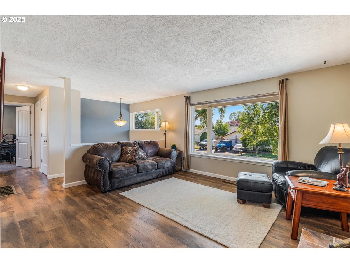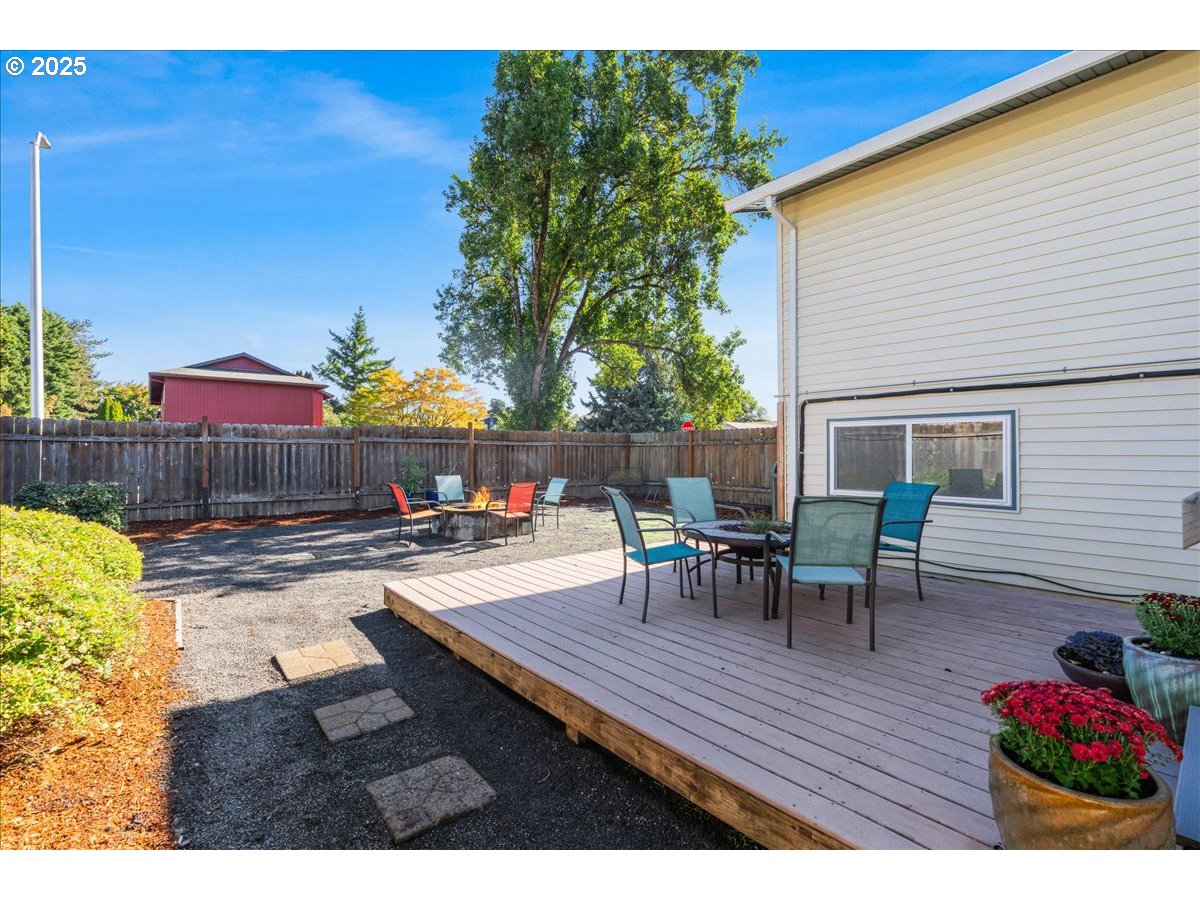 Situated on a corner lot, this 3 bed/2 bath home with a remodeled kitchen and two separate living spaces has a fully fenced backyard, large attached two car garage, additional shop space and plenty of room to park an RV or boat all on the north side of Newberg with no HOA and in close proximity to schools and parks. This split-level home has been completely updated with LVT flooring throughout the main living areas, vinyl windows, a roof that’s less than 10 years old, newer water heater and has the option to come with all the appliances. The downstairs contains a large primary suite with a full bath and huge walk-in closet. Just off the primary is a living and office area along with the separate laundry room, extra closet for storage along with access to the garage and 15’x18’ finished shop/flex space. Upstairs has two additional bedrooms, a full bathroom, wood burning fireplace and kitchen with quartz countertops and stainless steel appliances. Just off the kitchen is a slider that leads to a covered deck which has stairs down to a lower deck, fire pit and big backyard. With both communal and distinct spaces in this home and with the possibility of turning the shop room into an ADU, this property is well suited for multigenerational living, hosting/entertaining or for anyone who just appreciates having a home with different functional areas. Schedule a tour of this home and see all of its possibilities!