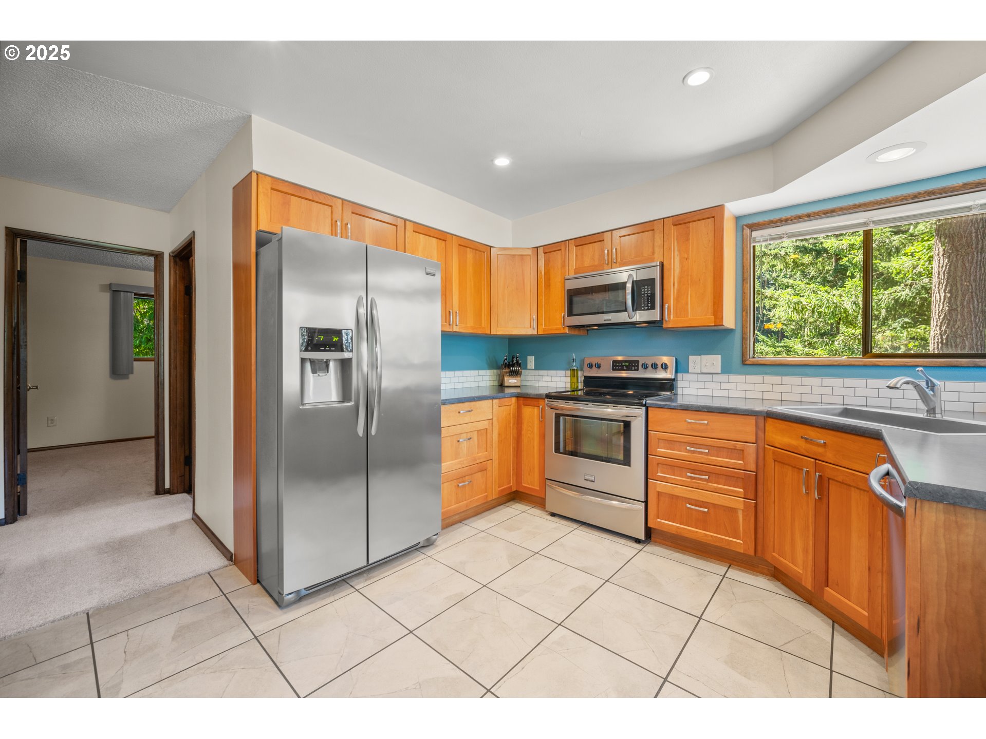 Tucked away on a quiet, secluded street just a mile from everyday amenities, this incredibly well-maintained 3-bedroom, 3 full-bath home has been lovingly cared for by the same owner for over 35 years. From the moment you arrive, the mature trees offer both shade and privacy, setting the tone for this peaceful retreat. Inside, you'll find a beautifully remodeled kitchen, remodeled bathrooms, and vaulted ceilings in the main living room. Two cozy wood-burning fireplaces create a warm, inviting feel throughout the home. The huge basement offers a flexible bonus room, additional bathroom, and ample storage space — perfect for guests, hobbies, or a home office. Step outside to a large deck with a hot tub and peekaboo views of Portland’s city skyline, you'll love the private backyard, and the calming sound of a seasonal creek that runs along the edge of the property. There's even room to park your boat, trailer, or RV — rare in this area. Clean, timeless, and move-in ready, this is one of those homes that just feels right.