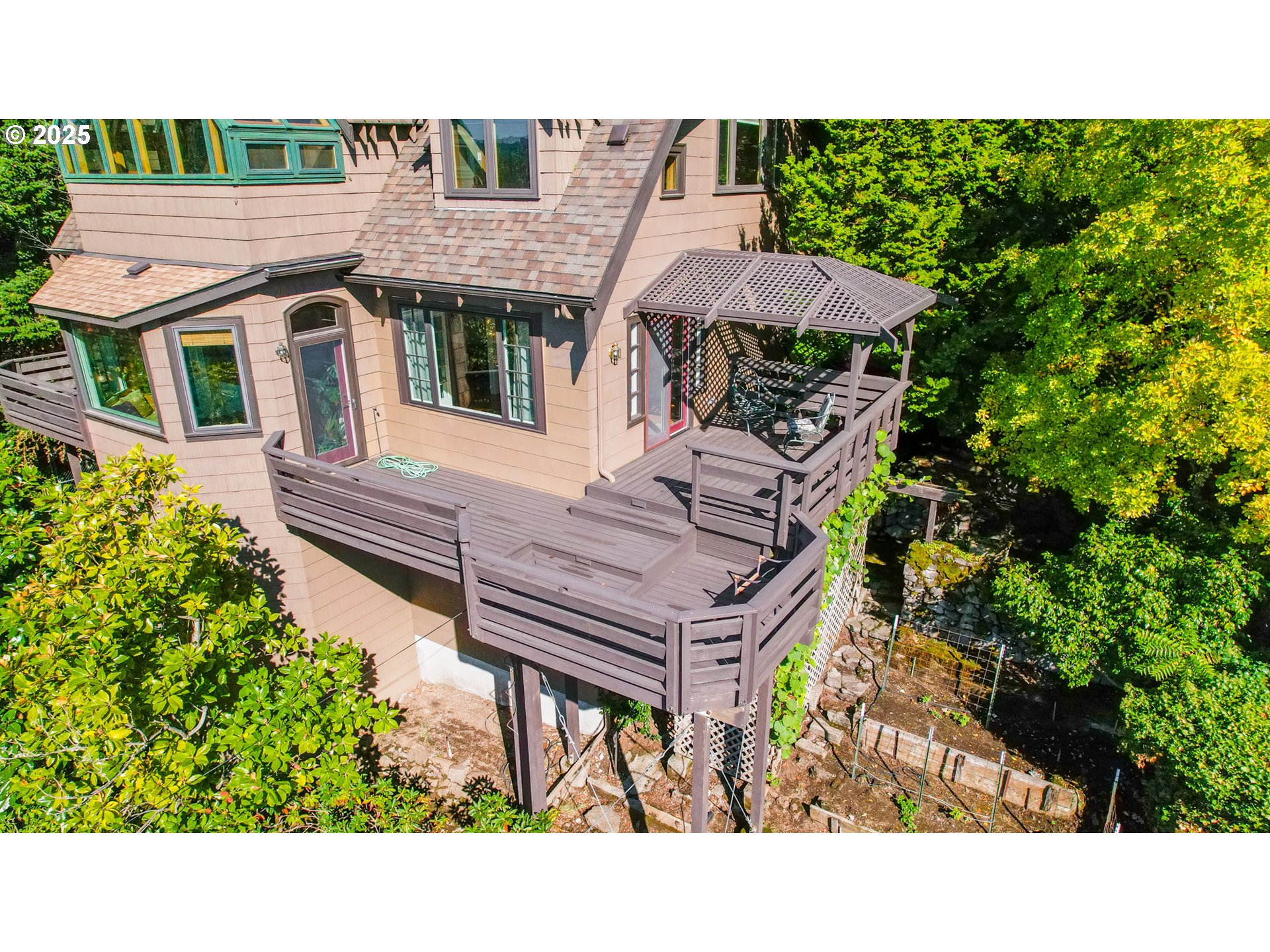 Perched atop Portland’s iconic Alameda Ridge, this unique 1911 home blends early 20th-century craftsmanship with modern updates and creative spaces. With 4 bedrooms, 3 bathrooms, and almost 4,000 square feet of finished living space, this residence is located in one of the city’s most desirable historic neighborhoods. Inside, you’ll find period details such as hardwood floors, detailed millwork, and a classic fireplace, along with abundant natural light. Expansive decks off the main level provide perfect outdoor perches with sweeping views toward downtown Portland and the West Hills — a hallmark of Alameda Ridge living. The spacious primary suite is a true retreat, featuring a wet bar, sitting area, jacuzzi tub, deck and office. The terraced yard is thoughtfully landscaped and includes a tranquil “waterfall” feature, creating a peaceful outdoor sanctuary. Unique to this property are its artist studio and shop, offering flexible space for creative work, hobbies, or expanded storage.