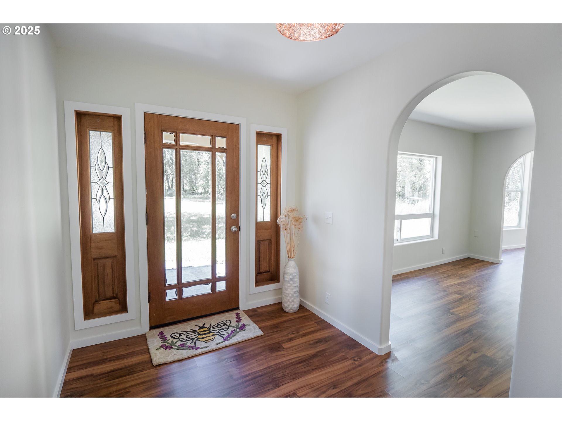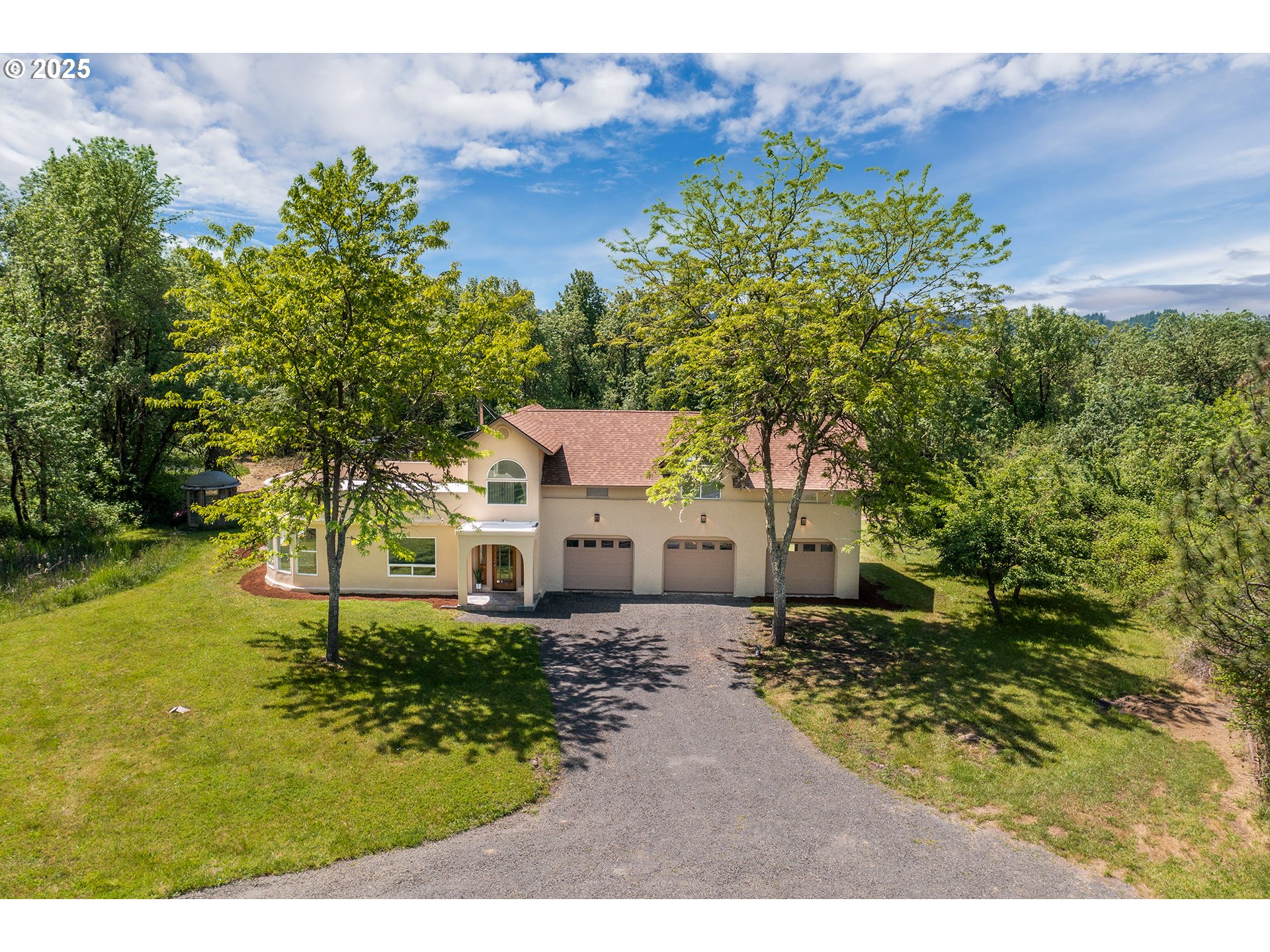 Privacy and nature surround this stunning 8-acre, close-in country property. Achieve self-sufficiency with this super-insulated concrete home. 6” thick walls save money on heating and cooling. Artesian well, commercial greenhouses, excellent exposure for solar, firesafe exterior and defensible space. Amazing landscape views and multiple spaces for entertaining or simply relaxing. Beautifully designed Mediterranean-style 3 bedroom, 2.5 bath home with open-concept floorplan. Gorgeous luxury vinyl plank flooring throughout. The kitchen/dining/living areas blend perfectly together with charming arched doorways. Views from every window and a cozy woodstove in the main living area. Custom teak countertops in the kitchen and all brand new stainless steel appliances are included. Bathrooms with custom teak countertops, herringbone tile in tub and showers and attractive new slate tile flooring. Desirable main-level primary bedroom is complete with en suite bath. Spacious, light & bright upper bonus room with a huge 2nd story sunporch/deck that is plumbing-ready. Plenty of room for entertaining and tons of storage. Over-sized 3-car garage, ample parking and RV parking. This breathtaking 2,335 square foot home built in 2000 has it all!