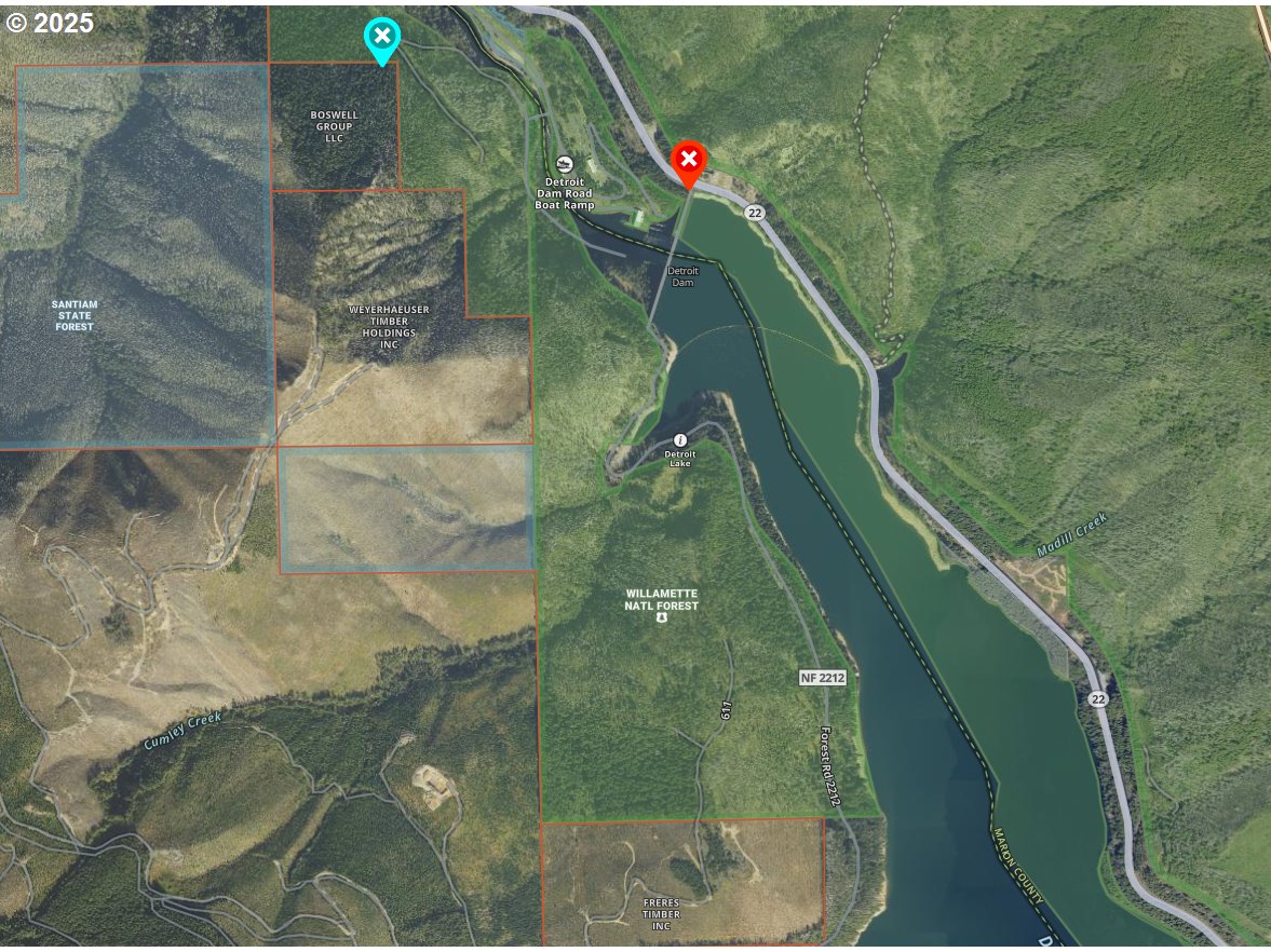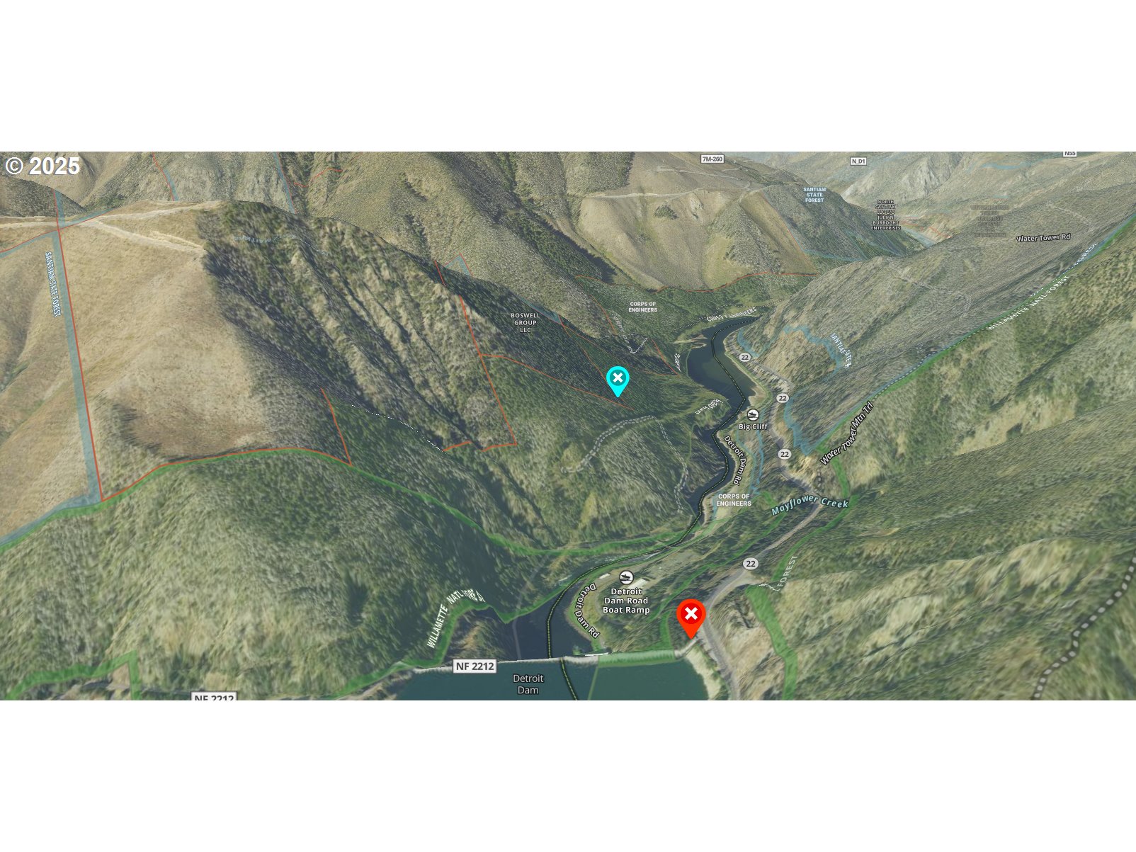 FROM DAM AT DETROIT LAKE, CROSS DAM, R DOWN MAINT RD, UP TO THE POWER LINES INTERSECTING NE CORNER