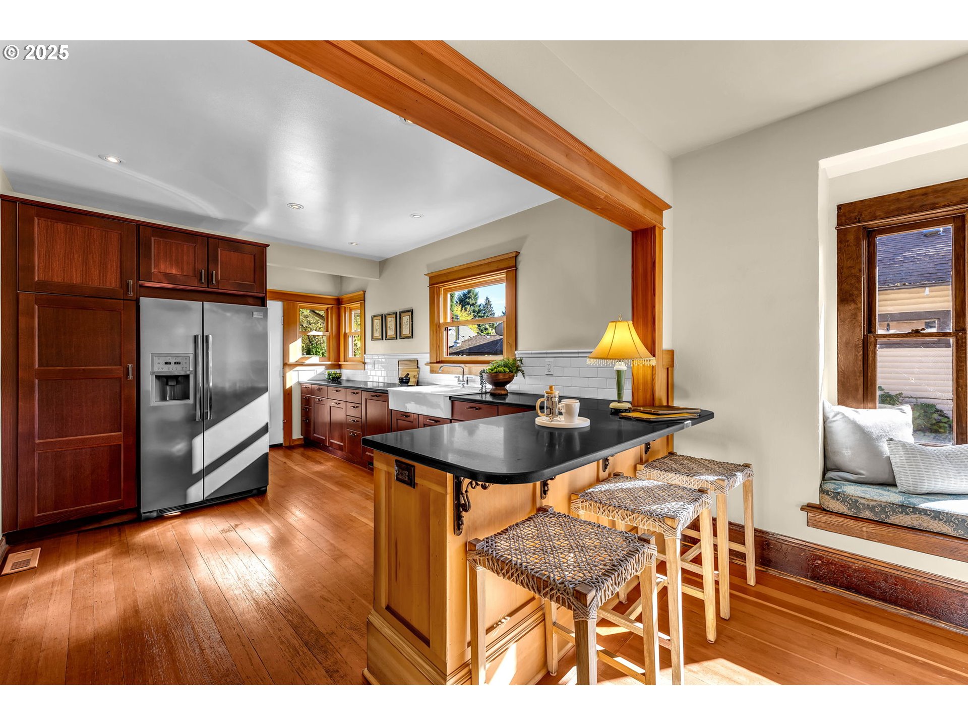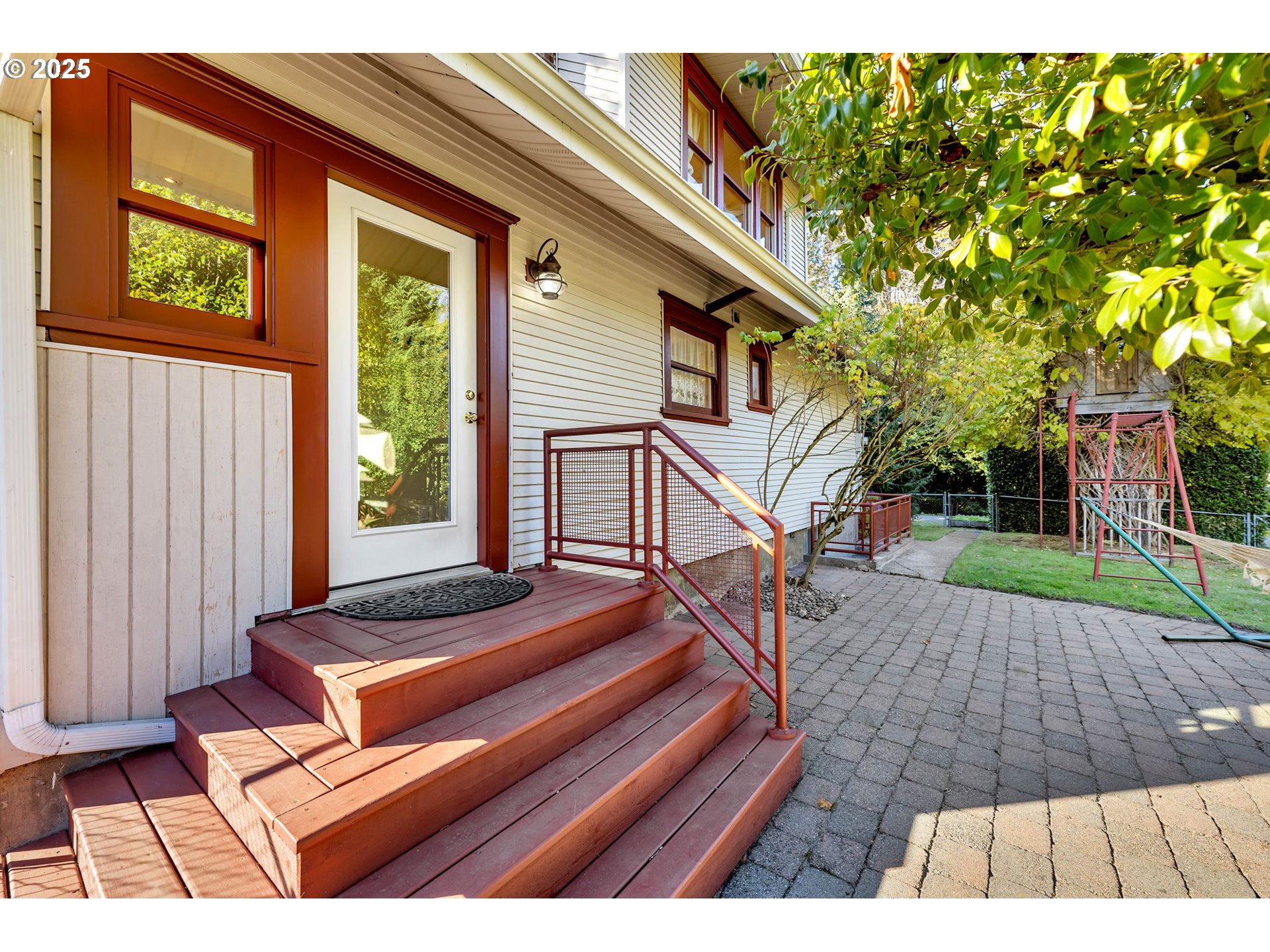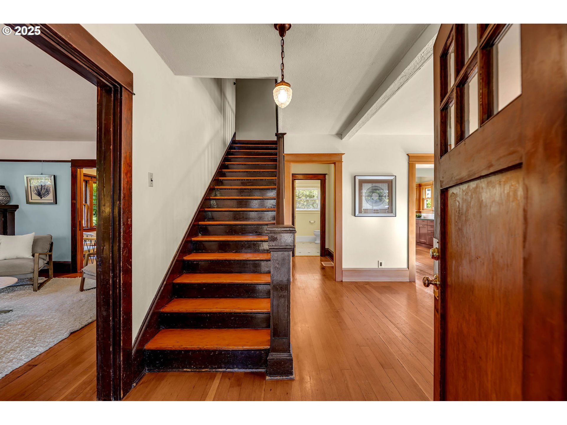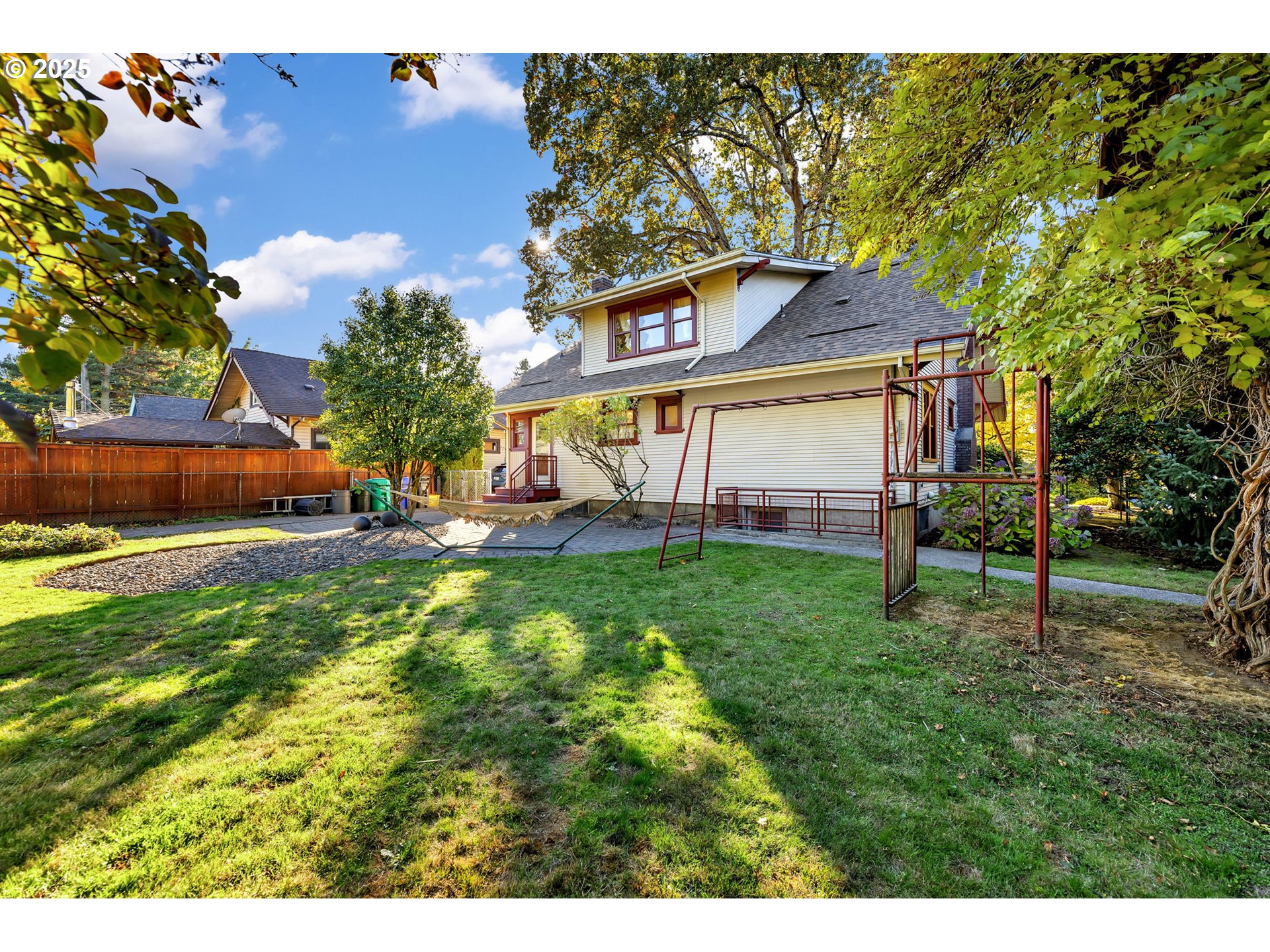 Welcome home to the Craftsman of your dreams. Spend an afternoon swinging from a porch swing on your large front porch. Bathe in the sun soaked dining / kitchen great room. Revel in the glory of the oh-so-cozy living room with wood burning fireplace, built ins with leaded glass doors, a phenomenal mantle and French doors that adjourn to the family room (also used as a 4th bedroom in times past!). This impeccably maintained and thoughtfully updated 1912 home has maintained architectural integrity with a nod to the present in a renovated gorgeous open kitchen, newer roof & water heater. The kitchen and dining room have fabulous southern exposure keeping it all light and bright. Upstairs, 3 generous bedrooms and a huge full bathroom. Full unfinished basement has room for storage, crafts, or workout space. Large double lot with mature apple & pear trees with room to plant your veggies, soak up the sun or just enjoy quiet time with room to roam. Lastly, across the dead- end street is the n'hood treasure - Rabbit Hill Community Garden. Here is the house you have been waiting to call HOME. [Home Energy Score = 2. HES Report at https://rpt.greenbuildingregistry.com/hes/OR10242529]