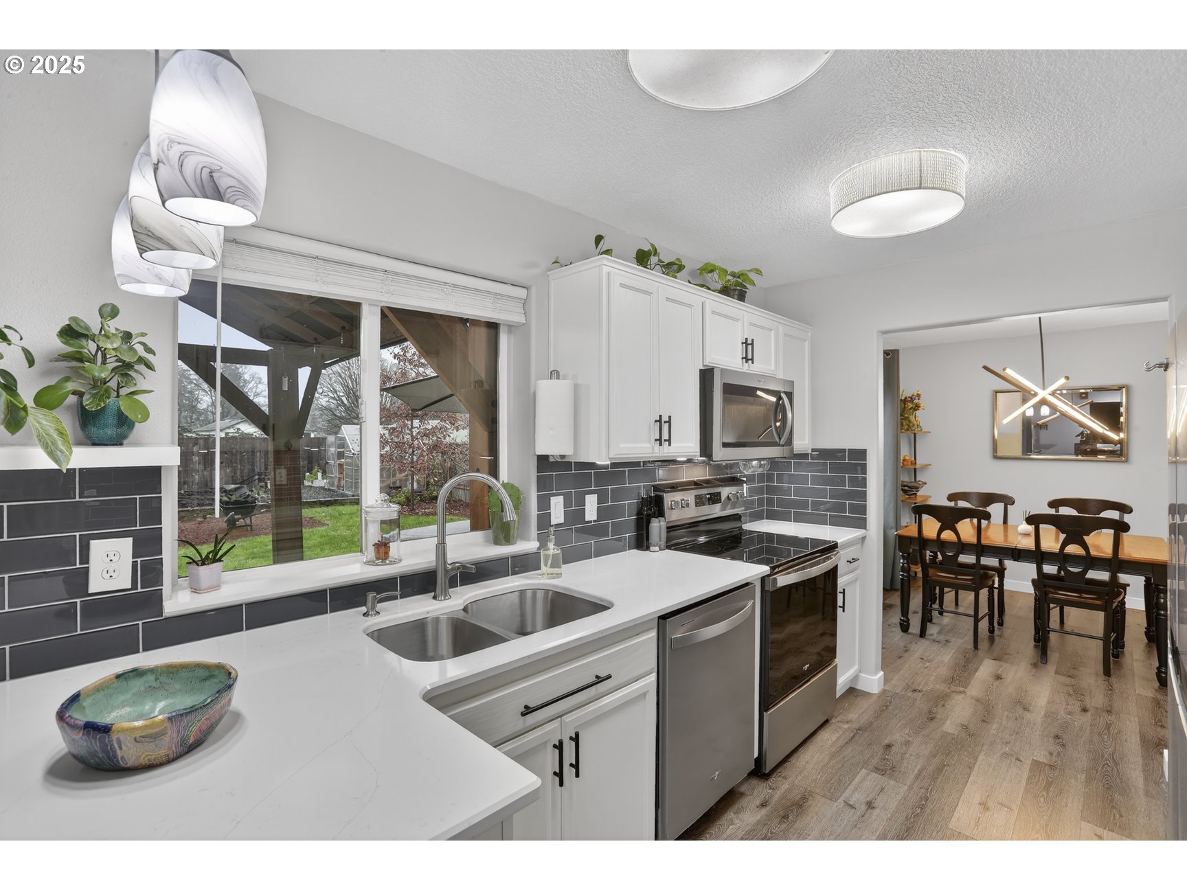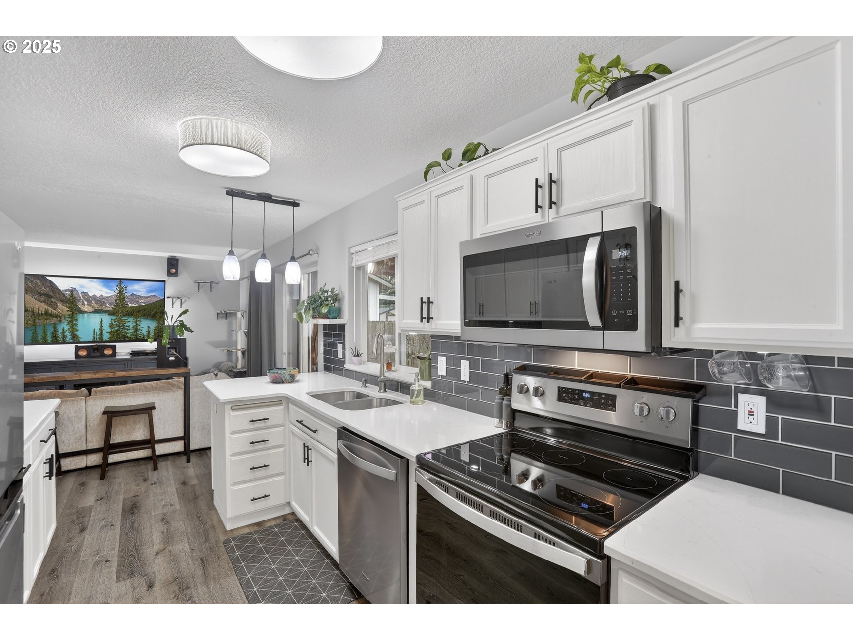 This beautifully updated, well cared for 3 bedroom, 2.5 bath, two story home is ideally located just minutes from parks, schools, shopping and Hwy 30. Nearly every surface has been refreshed, blending modern style with thoughtful functional upgrades. The remodeled kitchen features quartz countertops, stainless steel appliances, updated lighting, faucet fixtures, and new PEX plumbing. On the main level, enjoy new LVP flooring, fresh interior paint, upgraded baseboards, and an added new stainless steel utility sink in the laundry room. Upstairs, you will find engineered hardwood, new carpeting, and updated lighting. Outside, the fenced back yard includes a covered pavilion style concrete patio, perfect for year round entertaining, A hot tub is on site and is negotiable. There is a welcoming covered front porch and RV parking. The roof was replaced in 2021. Move-in ready and filled with modern updates, this home truly shines.