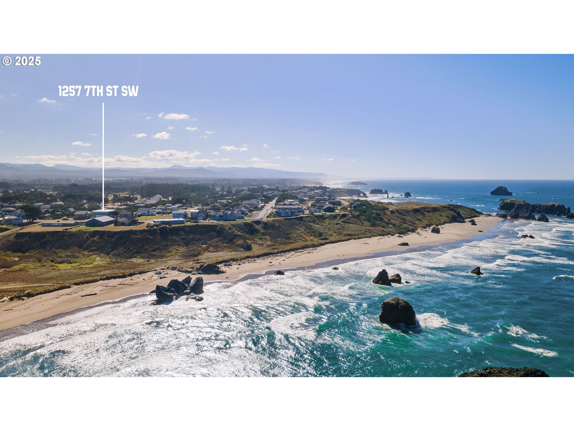 ONE-OF-A-KIND CUSTOM HOME WITH UNMATCHED OCEAN VIEWS & ELEVATOR ACCESS! For the first time since it was built in 1997, this extraordinary custom home is available, offering a level of design, functionality and setting you won’t find anywhere else. From the ground up, this property was crafted to be truly unique. The home is centered around 3 massive RV garages cleverly tucked beneath the residence and designed with both front and rear access so you can pull in and out with ease. Just off the garage, you'll find a main-level bedroom and an attached en-suite bath that has been fully remodeled, offering ideal space for guests. From the foyer, step into the home’s elevator and ride effortlessly to the second and third floors. The second level provides abundant storage and opportunity for expansion, while the third floor is the heart of the home. Spanning 2,530 sq ft, it features 3 generously sized bedrooms and 2 full bathrooms. The primary suite offers a double door entry, walk in closet and a spa-like ensuite with double sinks and an oversized walk-in shower. All 3 bedrooms include private access to the wraparound covered deck, where you can soak in jaw-dropping panoramic views of the Pacific Ocean, Lighthouse and a front row seat to Bandon’s iconic Table Rock. The open-concept living area and chef’s kitchen are framed by over 15 windows that capture the unbelievable scenery. The kitchen includes double ovens, a cook island with prep sink, a second island with pull-out cabinetry and built-in seating to enjoy the view. A custom bookcase, built-ins and a pellet stove add warmth and character to the living room. The fully fenced backyard is low maintenance and perfect for outdoor enjoyment. Built with full accessibility in mind and located in one of Bandon's most sought-after neighborhoods, just a quick walk away from several beach access points. This is not just a home, it’s a statement piece on the Oregon Coast. Call today to schedule your private tour.