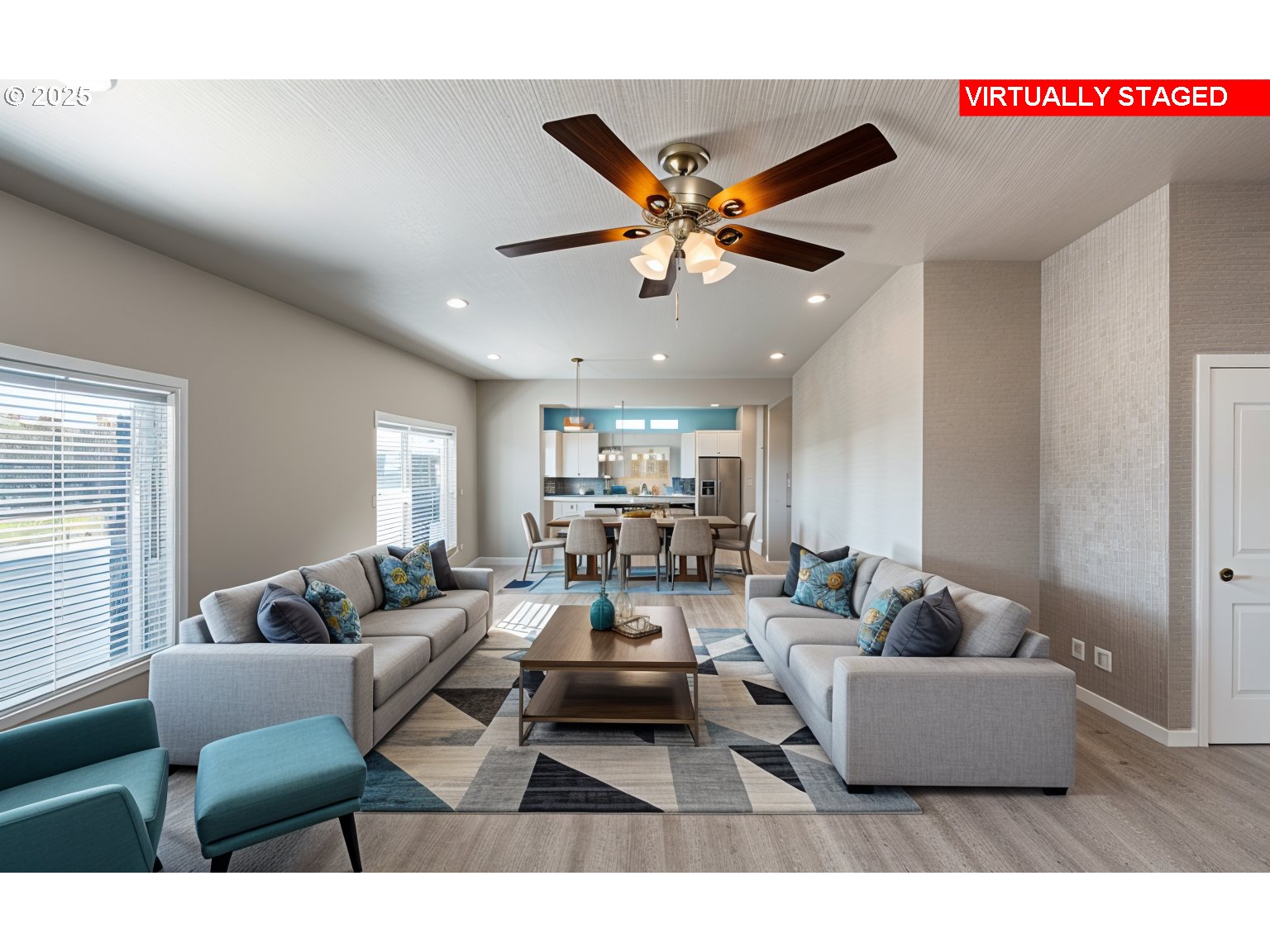 Enjoy peace of mind in Emerald Coast Estates, a beautifully maintained 55+ gated community just minutes from beaches, the port, restaurants, and shopping. This inviting 2-bedroom, 2-bath home with 1257 sq. ft. offers comfort, and a relaxed coastal lifestyle. The kitchen and breakfast bar open to a large, light-filled living room, creating an easy flow for daily living and entertaining. The kitchen includes a slider to the patio and fenced backyard—perfect for outdoor dining or spending time with pets. Skylights in key places spill in natural light. A dedicated laundry room adds everyday convenience. Designed to accommodate the changing needs of those 55+, the attached 2-car garage includes a wheelchair accessable ramp leading directly into the home, and the primary suite features a walk-in closet, a bathroom with walk-in shower with seating built-in, and double sinks. Park amenities are among the best in the community, including a pond and water features, an indoor heated pool, a library, shared garden space, and large community room with a full kitchen for gatherings and events. The monthly park fee of $932 covers sewer, common-area amenities, and grounds maintenance including front yards. Monthly fee expected to increase with new ownership. A $10,000 flooring and window credit is offered with an accepted offer, allowing you to personalize the home to your taste. RV parking is available through the park for an extra charge. This friendly coastal community is ideal for those seeking low maintenance living and the tranquility of life by the sea. Be sure to view the videos and 3D walkthrough.