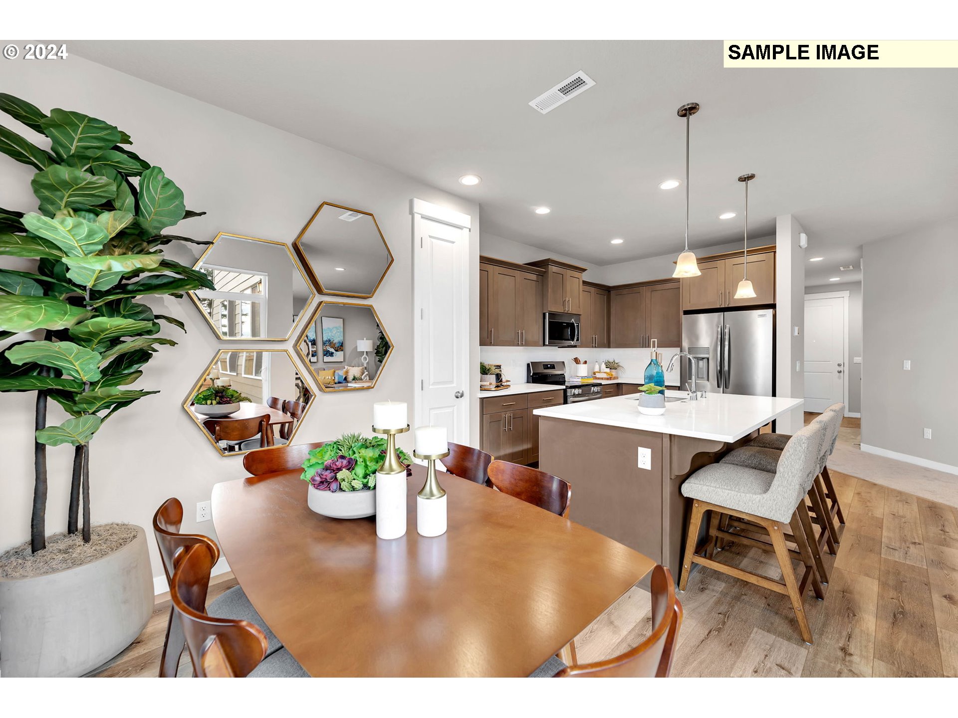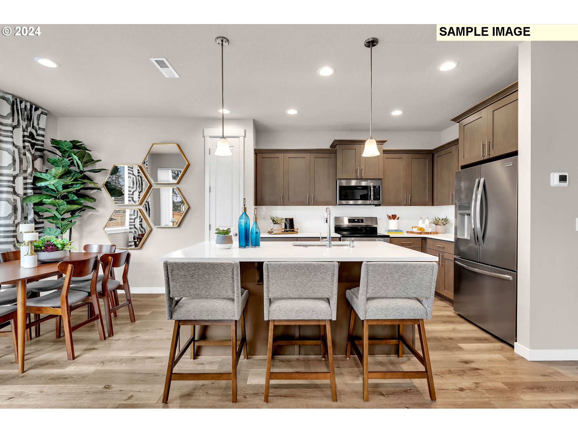 HUGE Space for Rv parking on side of garage. Open-concept with separate dining nook. Oversized island with seating, farm house sink, gas stainless steel appliances, Quartz counter tops and full tile backsplash. Large primary suite with large bathroom has two sinks and extra big walk-in closet. 2 spare bedrooms, large full bathroom with big tub and good-sized laundry room. Fully fenced backyard. This home comes with ev car charger and is also solar ready!
