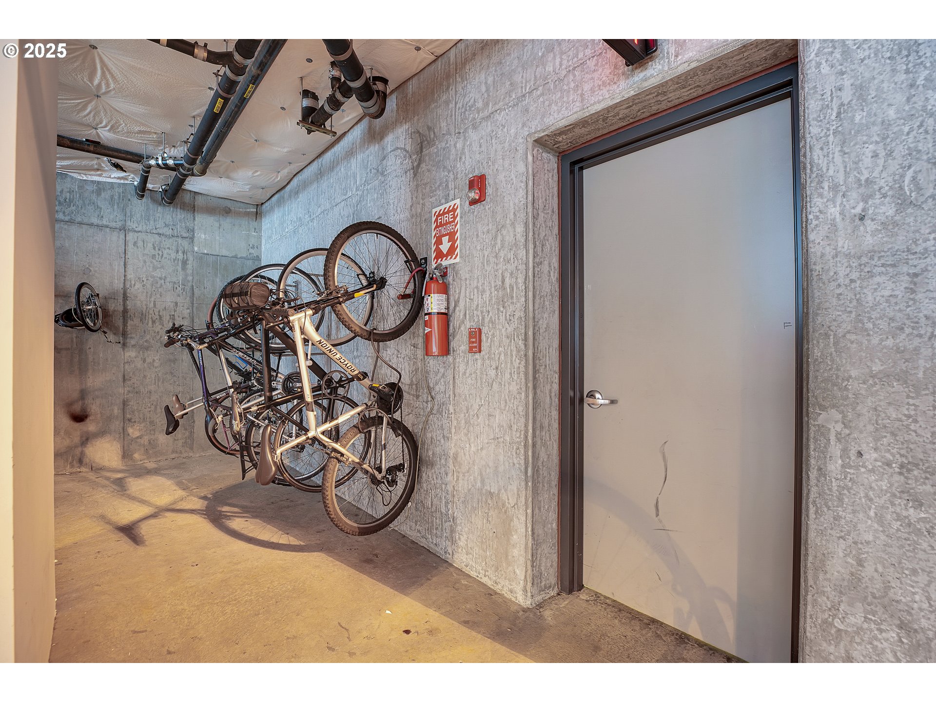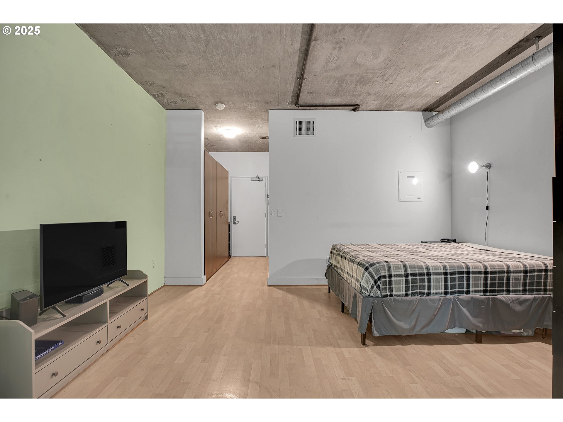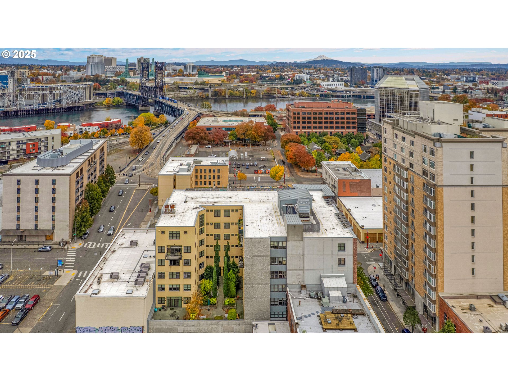 Welcome to this sophisticated studio in the Old Town Lofts! Offering modern comfort and vibrant city living. The urban studio is conveniently located steps from the elevator. This thoughtfully designed studio features an open floor plan to simplify your life, laminate flooring, soaring industrial ceilings, and an abundance of customized built-ins that maximize space and function. Plus, the convenience of in-unit laundry. Boasting the best parking spot in the building, as you step off the garage elevator in a secure garage. Enjoy the seamless indoor-outdoor flow with oversized dual glass doors opening to a peaceful patio and courtyard with a deciduous tree for year-round privacy, perfect for relaxing or entertaining. Located in the heart of Portland’s Old Town/Chinatown district, you’ll be steps from grocery stores, trendy restaurants, nightlife, coffee shops, train station, and transit with a walking score of 98! Whether you're looking for a low-maintenance urban retreat or an investment opportunity, this property offers both, with this building having NO rental cap. All furniture included in the sale if desired. This studio delivers the best of Portland living!