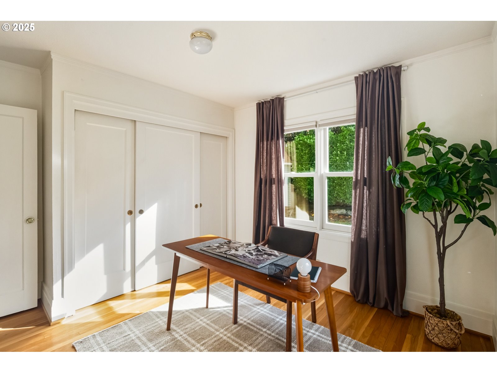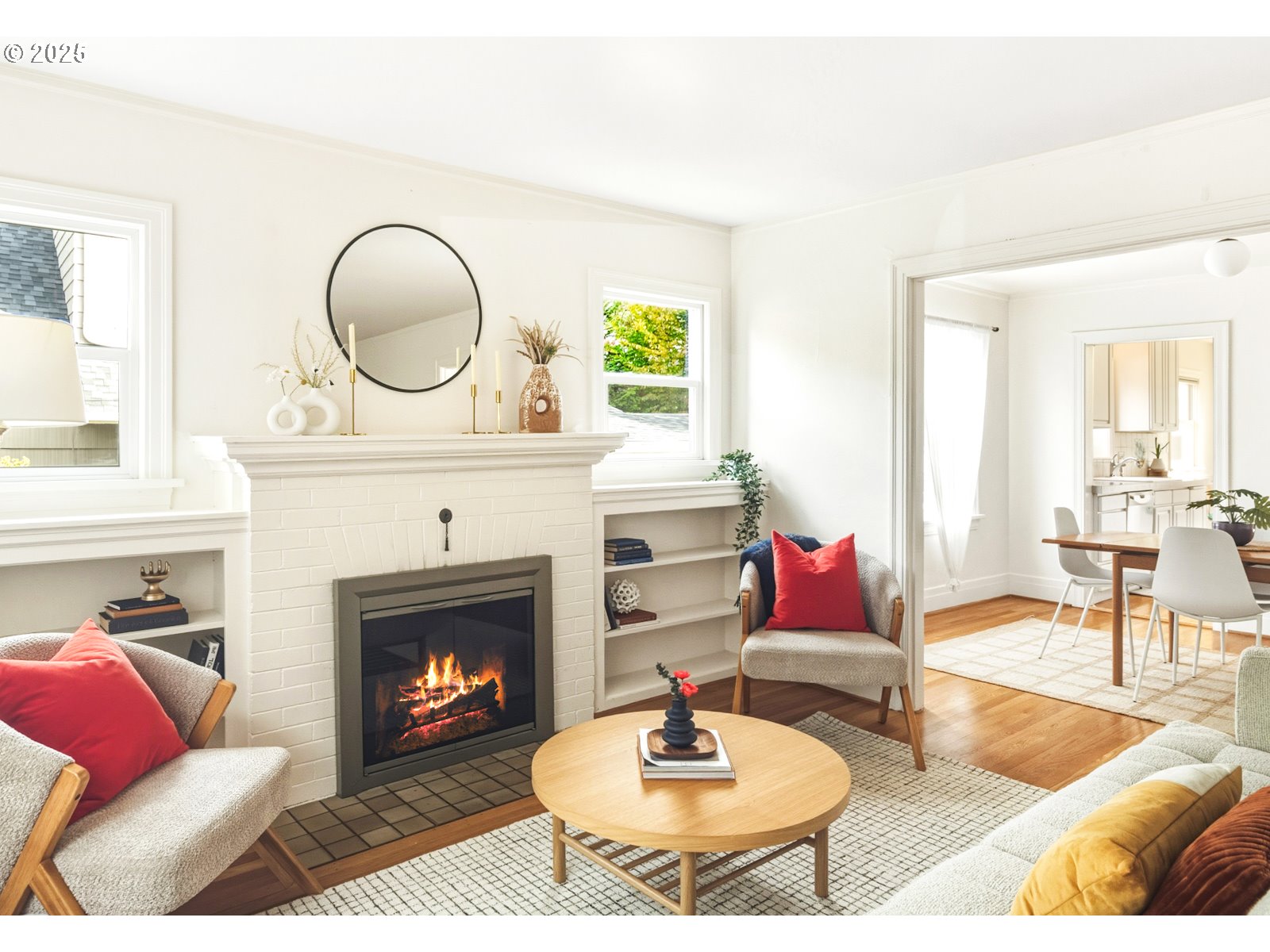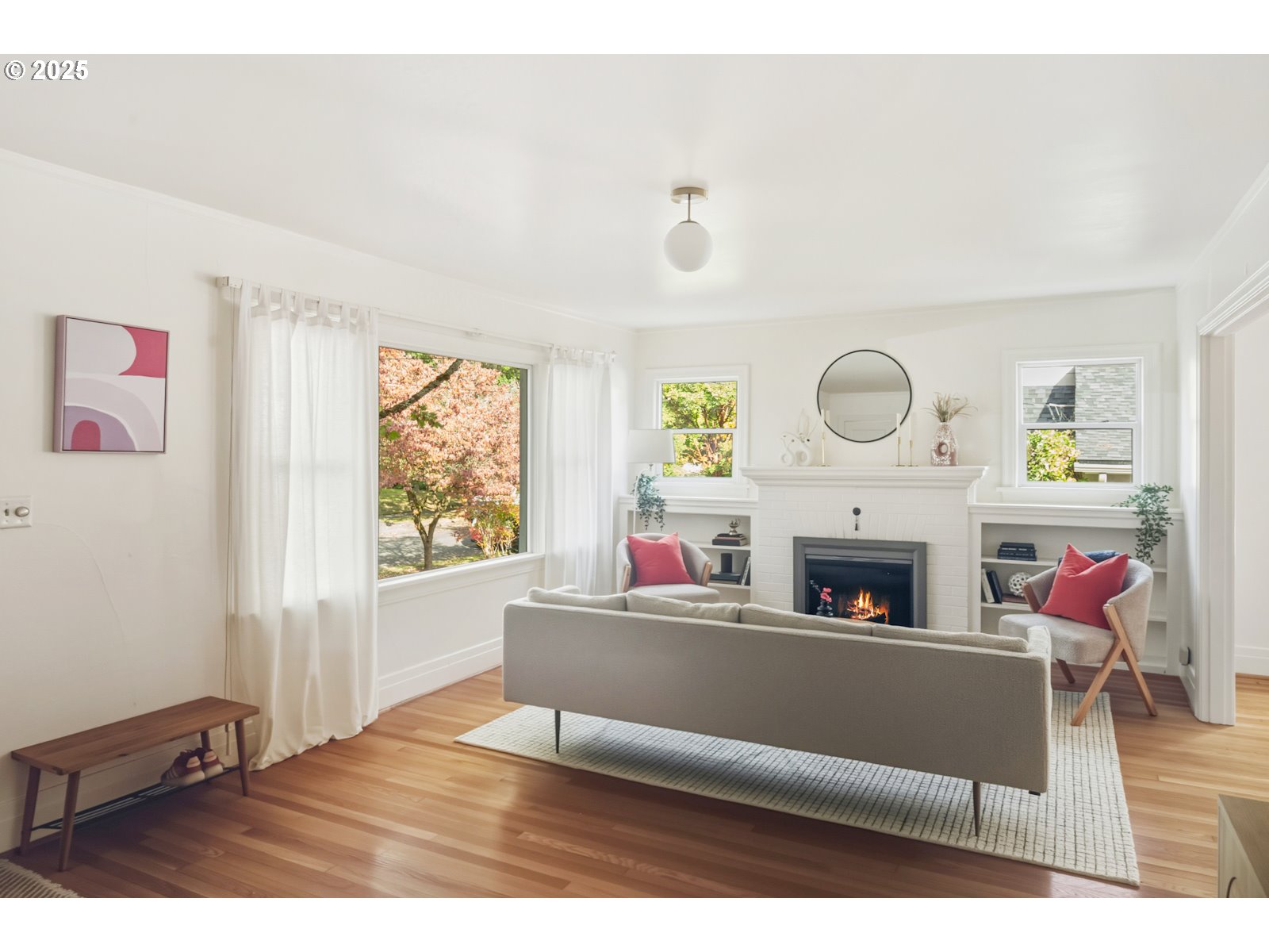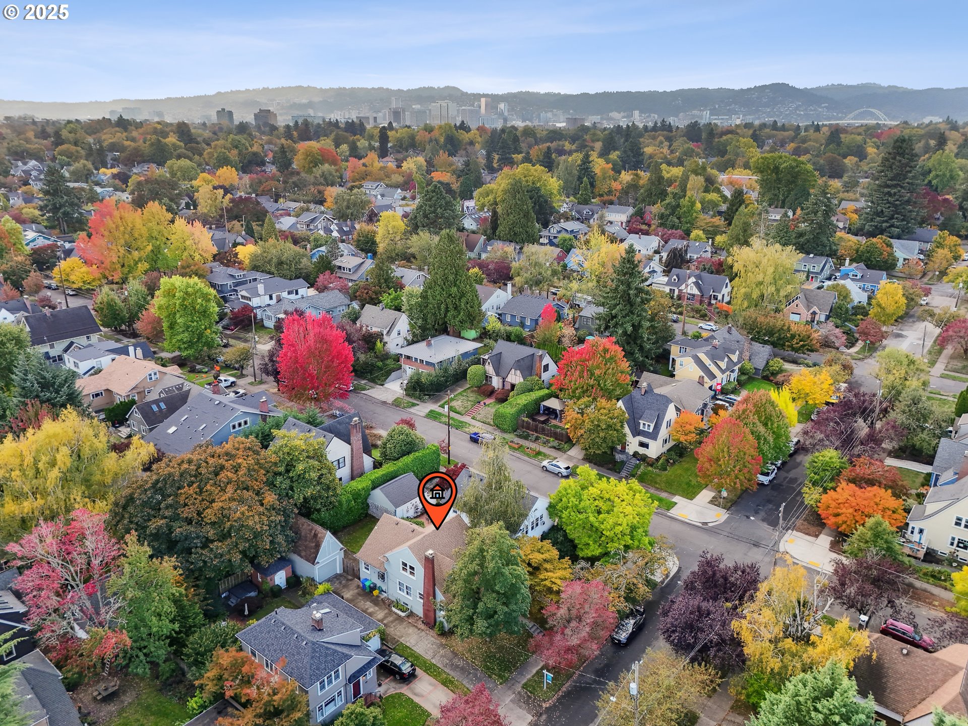 Offer Deadline 3pm 10/19. Alameda Charmer with Heart and History. Perfectly perched on a quiet, tree-lined street in the heart of Alameda, this Tudor-inspired bungalow has that rare mix of charm, sturdiness, & soul. Step inside and you’ll feel the care that’s been poured into it over the years — original hardwoods glow in the sunlight streaming through energy-efficient windows, the sense that this home has always been well loved. The generous entry welcomes you with a walk-in coat closet (with its own window, of course) & opens to the living room centered around huge windows & a wood-burning fireplace. Through the formal dining room you’ll find a cozy kitchen & sunny breakfast nook — ready for your creative touch when the time is right. Two main-level bedrooms & a full bath round out the first floor, while upstairs, a half bath, two more bedrooms, including a large primary with a charming nook, & a large unfinished attic, are waiting to become the primary suite of your dreams. This home has more storage & ample closets than a typical 1927 home, making it extra functional. While the kitchen and baths are ready for your modern touch—most major systems & structural updates have already been completed. For example, the basement is waterproofed, the foundation bolted, new sewer line, water main, updated plumbing & decommissioned oil tank— all the quiet, important upgrades handled. Out back, the sun-soaked yard is private and full of promise, while the detached garage with a full attic offers storage galore or an ADU opportunity. And the location? Just a few blocks from Alameda Elementary, Guilder Coffee, Garden Fever, Lucca, & WILD Pet Provisions — a little pocket of Portland that feels both peaceful & perfectly connected. Loved, cared for, and full of good vibes — perfectly poised for its next story. [Home Energy Score = 2. HES Report at https://rpt.greenbuildingregistry.com/hes/OR10241694]