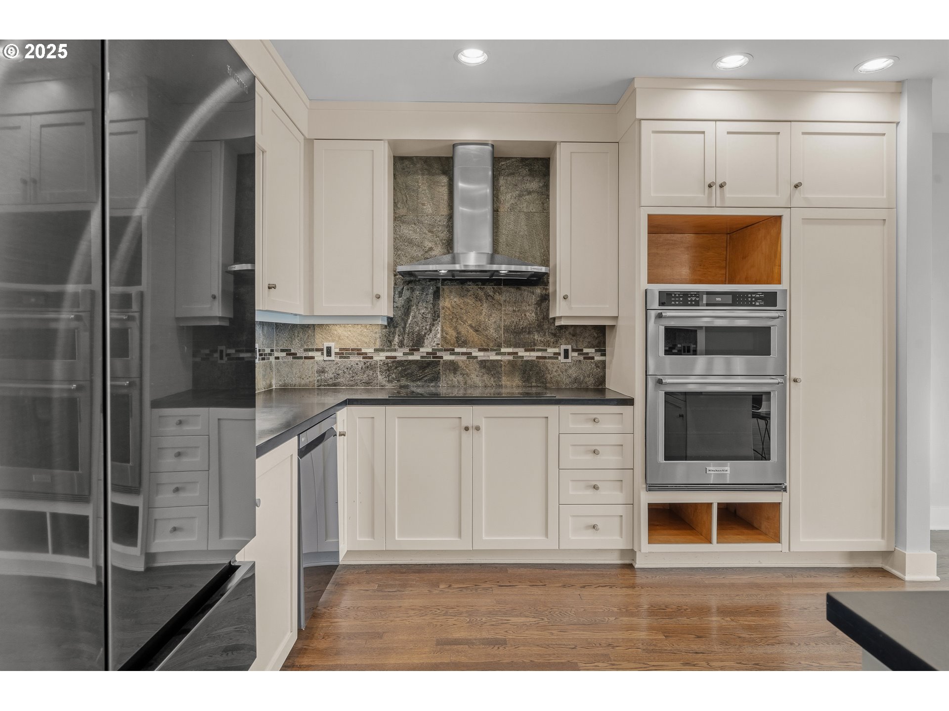 This light-filled and stylish Johns Landing condo offers a sophisticated open floor plan designed for both comfortable living and effortless entertaining. Expansive windows showcase sweeping views of the Willamette River and Mt. Hood, filling the home with natural light. The remodeled gourmet kitchen features sleek countertops, high-end appliances, and custom cabinetry, opening to a spacious great room with a cozy fireplace and access to a private terrace—perfect for relaxing or hosting guests. Hardwood floors flow throughout the main level, adding warmth and character. The downstairs carpet is 2 years old, meticulously cared for and is 100% real wool! Downstairs, the primary suite provides a serene retreat with a walk-in closet, luxurious bath, and its own private terrace with captivating views. An attached garage plus additional carport provide ample parking, and the exterior and decks have been beautifully updated. Ideally located in Portland’s desirable Johns Landing neighborhood, this home offers easy access to riverfront trails, charming cafés, boutique shops, and downtown amenities.