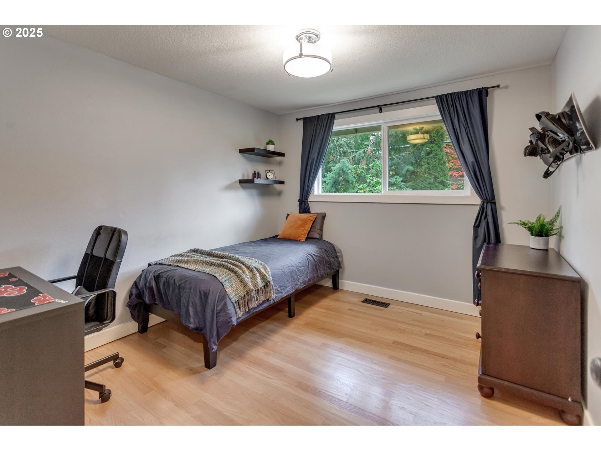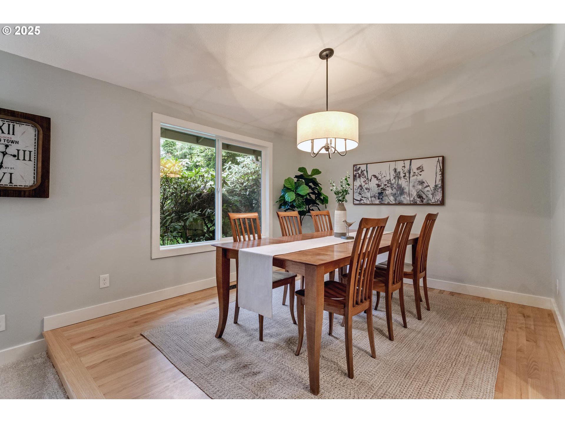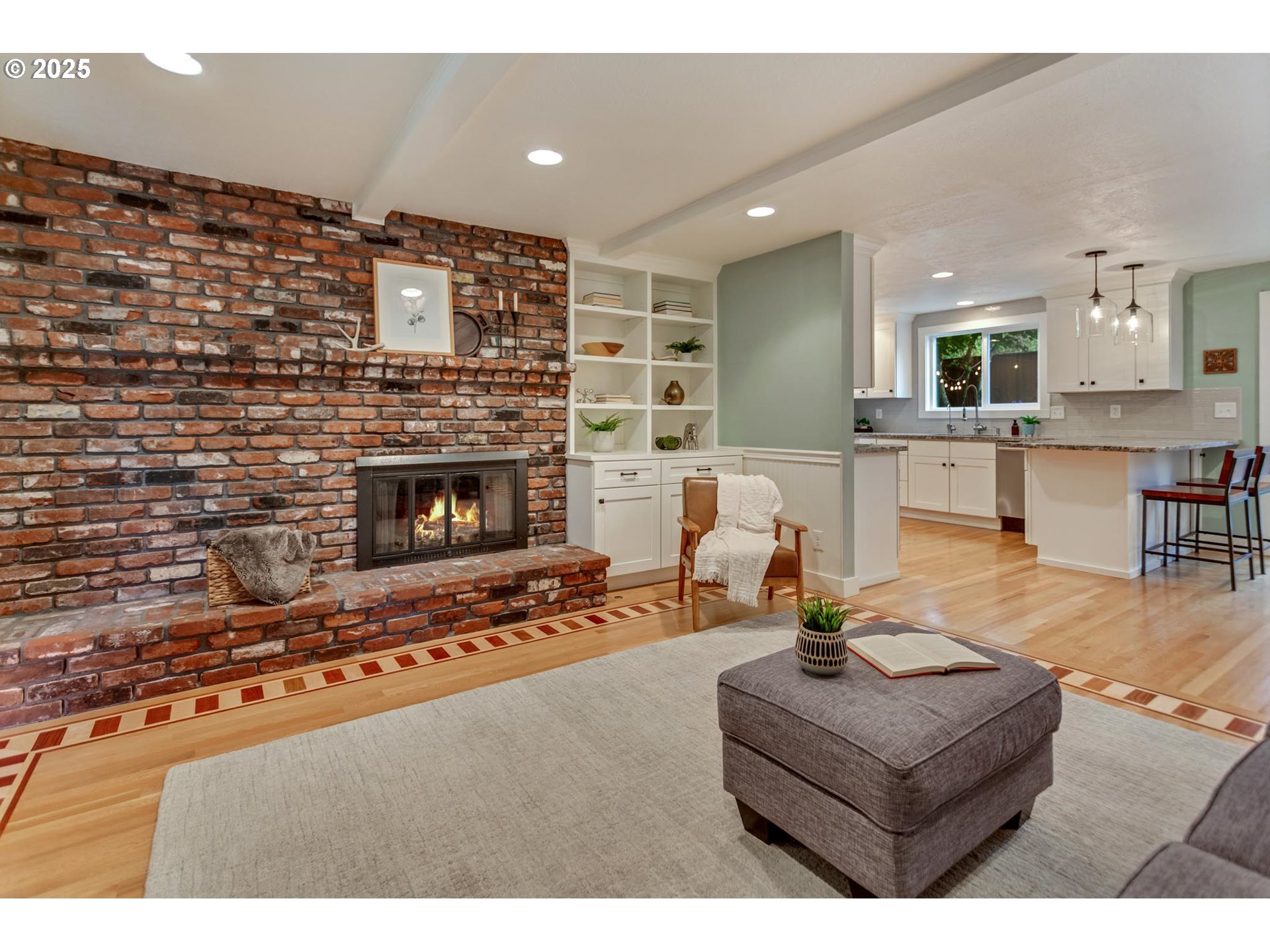 Step into comfort and quality with this beautifully maintained single-level home offering 1,940 square feet of inviting living space on an expansive private lot. The updated kitchen (2019) features granite countertops, white solid maple cabinets with pullouts, a gas range, a double oven, stainless steel appliances, and a reverse-osmosis water filtration system. A bright dining nook with built-ins and a desk area makes a perfect spot for morning coffee or homework. Oak hardwood floors flow throughout the main living areas, complemented by new carpet (2025) in the open sunken formal living room with vaulted ceilings and a classic wood-burning fireplace. The adjacent family room adds warmth and function with a cozy gas fireplace and custom-built ins. The spacious primary suite features a soaking tub and generous closet space, while the remodeled laundry room (2019) includes solid maple cabinets and extra storage. Additional updates include an updated furnace (2016), air conditioning (2021) and both recently serviced, a new 30-year roof, and gutters (2025). Attic storage above the garage adds everyday convenience. This home has been pre-inspected, with critical items repaired, offering actual move-in readiness. Outside, the expansive fenced backyard invites gardening, entertaining, or play in a serene setting. Located blocks from the optional Greentree Pool and near the new recreation center, New Seasons, Whole Foods, and local shopping, this home blends comfort, craftsmanship, and convenience in one exceptional package.