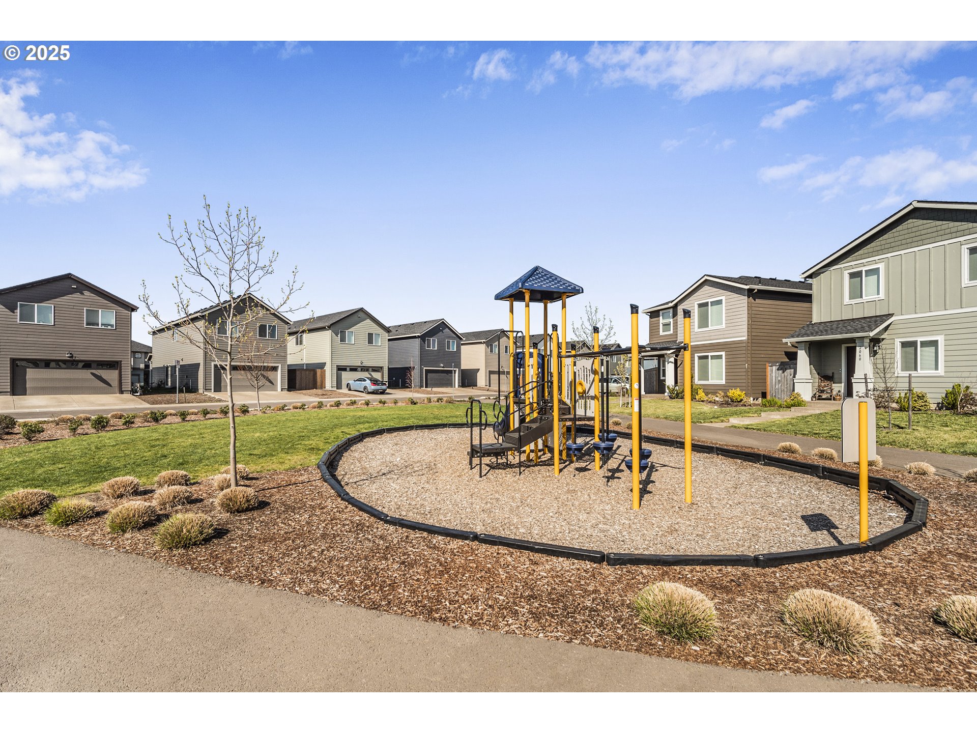 Welcome to Smith Creek by Lennar in Woodburn. The Blair plan is a two-story home featuring an open main floor layout that connects the kitchen, nook, and great room—perfect for both everyday living and entertaining—with convenient access to a powder room. Upstairs are three bedrooms, including a generous primary suite with an ensuite bath featuring a double vanity and a walk-in closet. Interior highlights include quartz countertops, shaker-style cabinets, luxury vinyl plank flooring in the kitchen and entry, and luxury vinyl tile in the baths. This home also includes central air conditioning, a refrigerator, washer and dryer, and blinds—all at no extra cost! Smith Creek is conveniently located near I-5, just 7 minutes from Woodburn Premium Outlets and close to parks, golf courses, schools, and vineyards, with easy highway access for smooth commutes. Community amenities include a dog park, multiple playgrounds, picnic areas, trails, and a basketball court. Rendering is artist conception only. Photos are of a similar home, features and finishes will vary. Estimated completion: November 2025. Homesite 583.