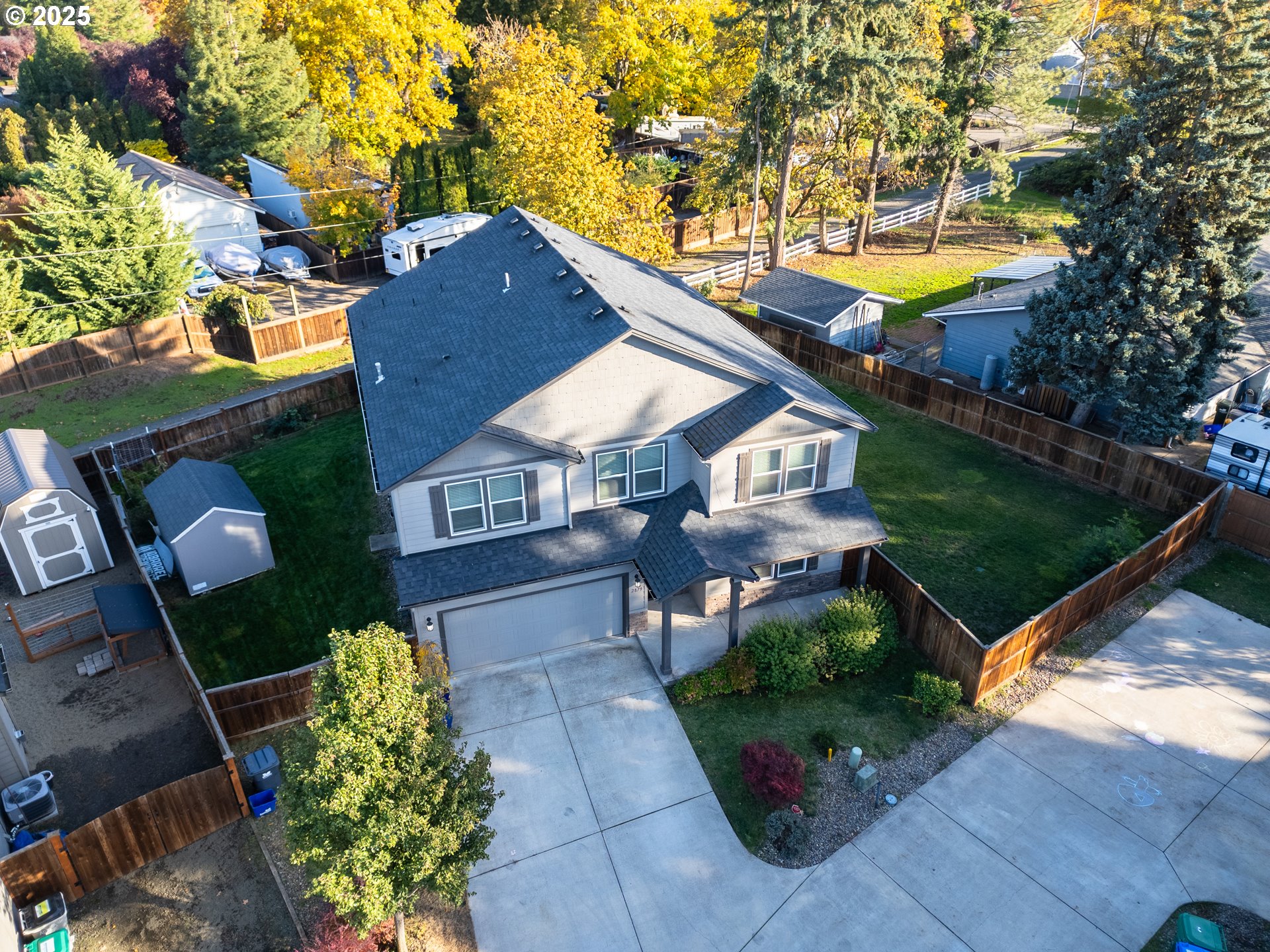 A cherished, sole-owner home awaits in a coveted neighborhood. Built in 2018 and impeccably cared for by its sole owner, this modern 3,195 sq ft residence offers a like-new experience. This spacious, light-filled open floor plan features real hardwood floors, 5 bedrooms, and 2.5 bathrooms. A versatile private flex room on the main level includes a closet with a glass door adds elegance and is ideal as an office, den, or 5th bedroom. Relax in the primary suite with its indulgent soaker tub, and enjoy family time in the second-floor loft.Step outside to discover a rare, spacious 10,890 sq ft lot — a true backyard oasis. Entertain on the covered patio, enjoy the meticulously landscaped grounds with an automated sprinkler system, or gather around the durable, safe firewood burning ring for cozy campfire nights. Situated on a quiet street, this home is just blocks from top-rated schools and a short drive to major freeways, it is the perfect balance of suburban tranquility and urban accessibility. Make it yours—schedule a viewing today!