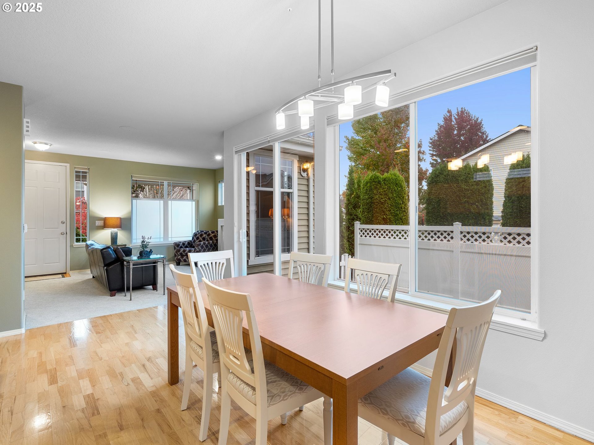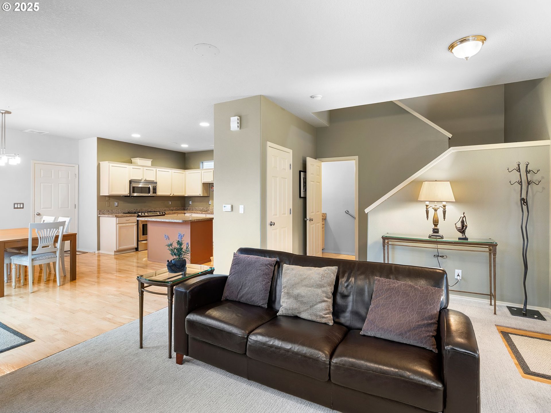 Open Saturday(11/8)from 11-1! Welcome to this beautifully maintained Beaverton gem offering a bright and airy ambiance with large windows that fill the living spaces with natural light. The spacious kitchen features a generous island/eating bar perfect for entertaining or casual meals and flows seamlessly into a dining area sizable enough to accommodate a “real” dining room table. Sliders off the dining area open onto the patio for a seamless transition when BBQing or relaxing outdoors. The living room’s gas fireplace, recessed lighting, and built in speakers keep things cozy and inviting. Upstairs, you’ll find a versatile office nook - ideal as a home office, fitness space, or separate family room, along with two guest bedrooms, a guest bath with skylight, utility room with Washer/Dryer, plus the primary suite with walk-in closet and dual vanity bath. All bedroom closets feature built-ins with shelving and/or drawers. The interior is thoughtfully laid out and move-in ready with brand new carpeting throughout the upper level, fresh interior paint, plus recessed lighting and wired speakers across the home. Central Air cooling as a bonus! Low maintenance outdoor spaces include a covered front porch and abundant patio, while the 2 car garage adds convenience and extra storage. Nestled in a quiet neighborhood, the property is a mere one mile walk/bike ride to Nike’s campus and even closer to shopping, restaurants, and cafes. This home offers a remarkable opportunity with its exceptional convenience and comfort.