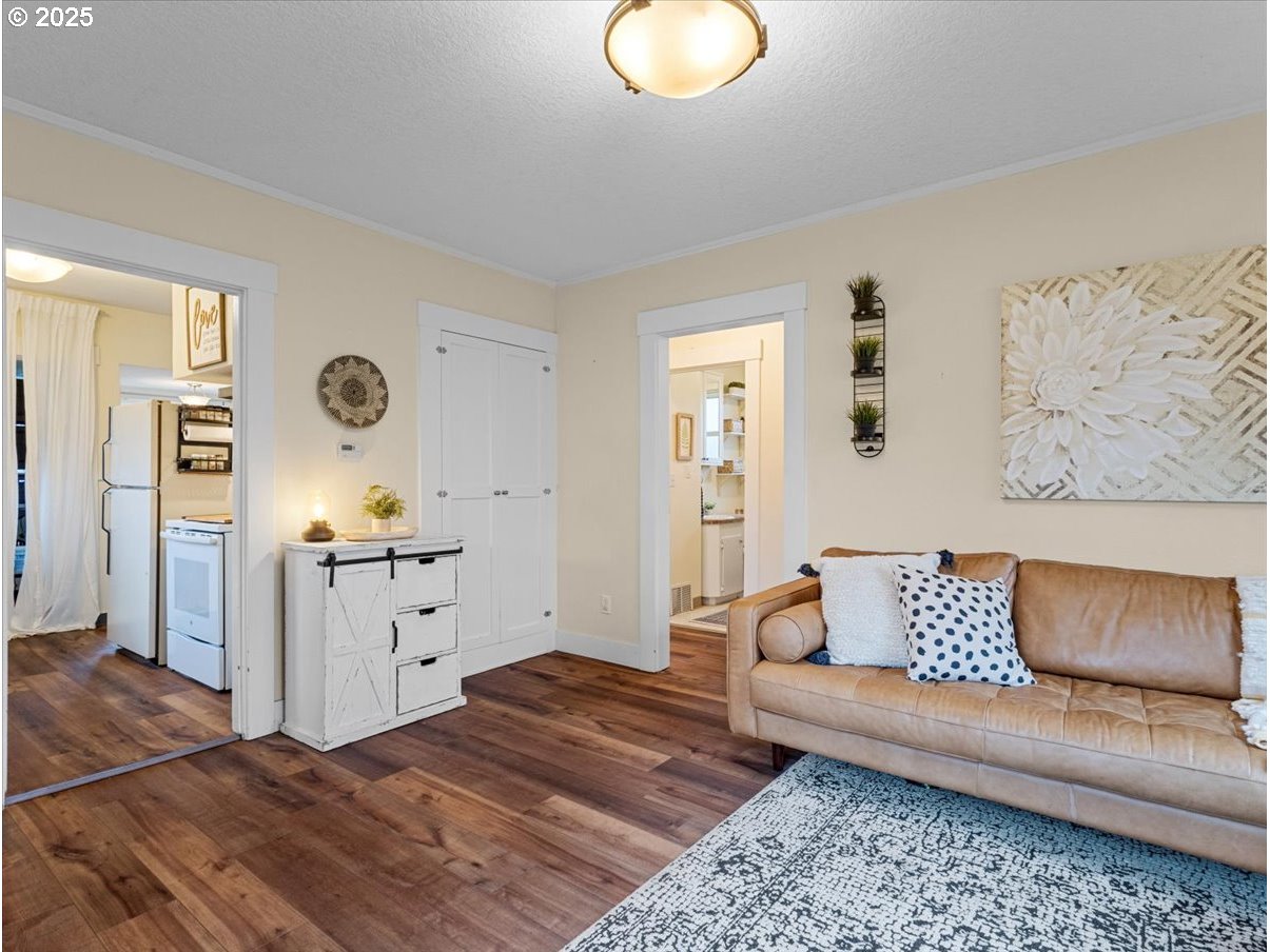 Cute as a Button Bungalow in SE Portland. Situated on a spacious corner lot, this home has loads to offer at an affordable price; classic charm, energy efficiency, updated systems and a giant fenced yard. As a bonus, the sellers will install a BRAND-NEW ROOF before closing with an acceptable offer! Enter through the cozy covered front porch to a lovely light-filled living room. Veer into a galley kitchen complete with pantry area and an adorable breakfast nook. Two bedrooms and a full hall bath fill out the main floor. Downstairs you’ll find a family/media room, third bedroom, laundry area and bonus storage space. Updated windows + plumbing + electrical system, central air conditioning and a home energy score of 8/10 only sweetens the deal. Both front and back yards are completely fenced. A detached garage with driveway and street access offers options for parking, storage or hobby-space. The corner lot location with R2.5 zoning could add development options and value; whether it’s pursuing infill development with the addition of an ADU or two or creating a land division. Commuter-friendly and easy access to shopping, food carts and parks. Walkscore 75, Bikescore 88. [Home Energy Score = 8. HES Report at https://rpt.greenbuildingregistry.com/hes/OR10192135]