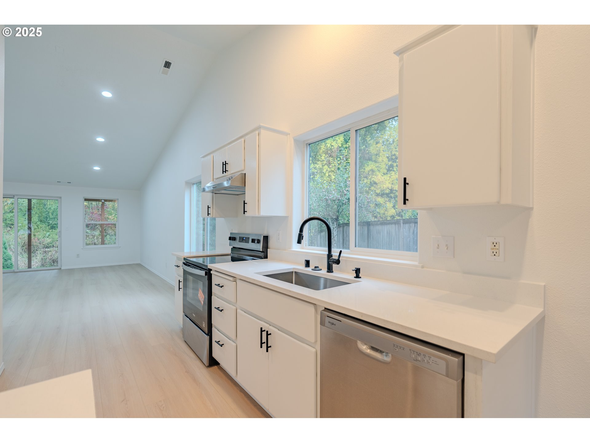 Located at the end of a cul-de-sac and backing to beautiful greenspace, this fully updated Battle Ground ranch home combines comfort, convenience, and lasting value. Thoughtfully refreshed from top to bottom, this 3-bedroom, 2-bath home is truly move-in ready. Inside, you’ll discover brand-new luxury vinyl plank flooring, fresh interior paint, and a stunning modern kitchen featuring quartz countertops, new stainless-steel appliances (all included), and stylish finishes. The open, vaulted living areas are bright and welcoming, and include all new lighting. Both bathrooms have been fully remodeled with quartz counters, new fixtures, and modern design. The spacious primary suite offers a private, updated bath and an oversized walk-in closet. For added peace of mind, the roof, furnace, AC, and water heater were all replaced in 2021, and even the insulation is brand new. Outdoors, enjoy a covered front porch, expansive covered patio, mature landscaping, and serene greenspace views – all just minutes from Main Street, Florence Park, and everything Battle Ground has to offer.