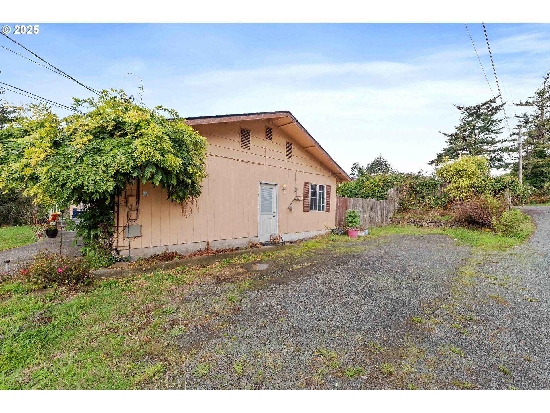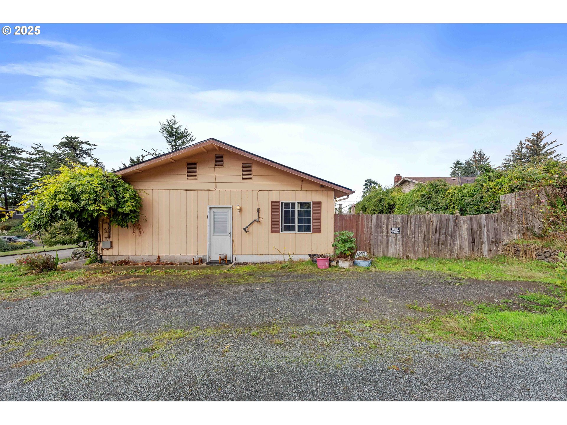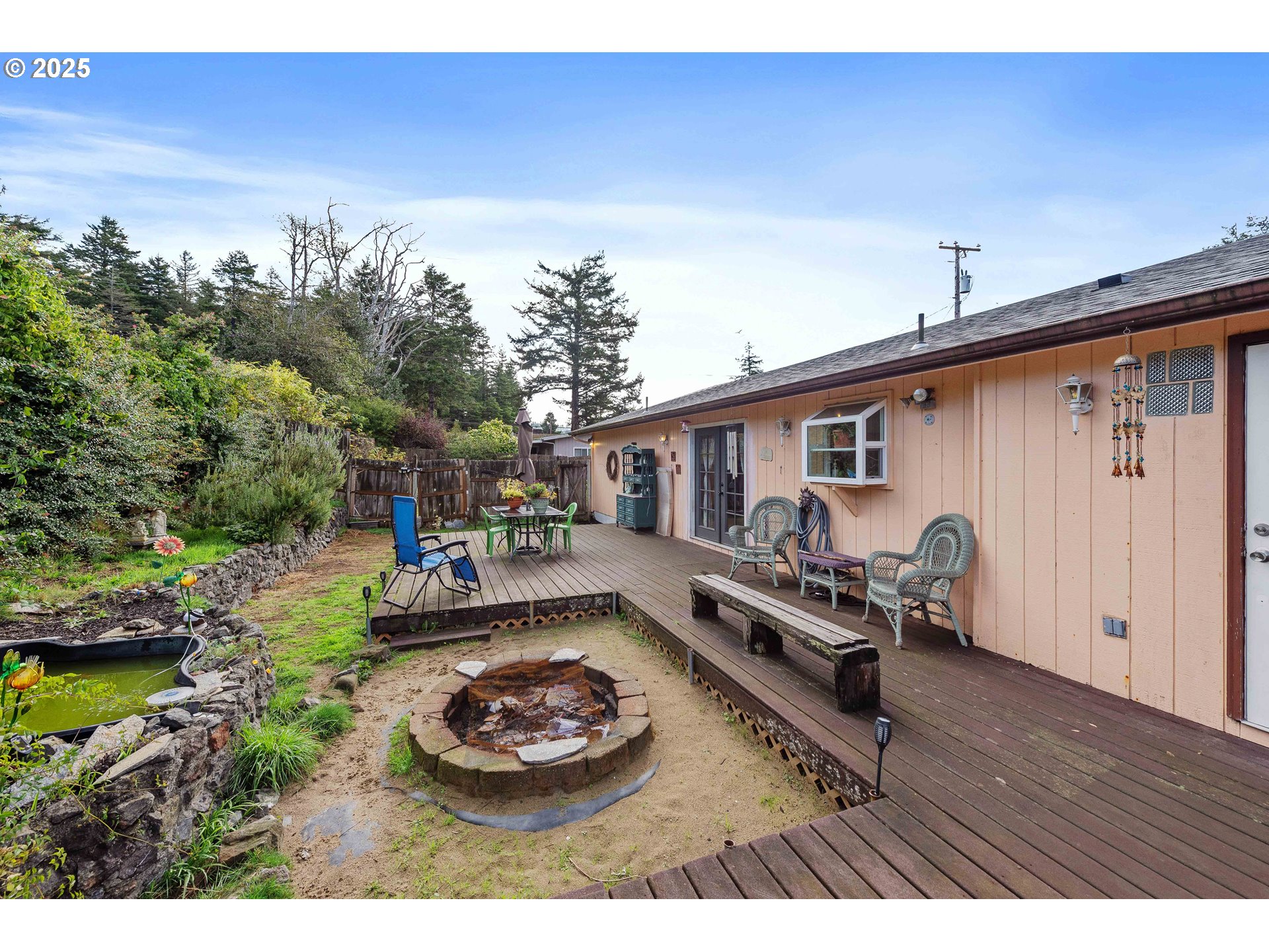 Charming Coastal Retreat on a Corner Lot. Just Minutes from the Pacific Ocean, hear it from your back yard. Don’t miss this must-see priced-to-sell 1,436 sq ft single-level ranch-style home, ideally located on a spacious corner lot with excellent curb appeal. Just minutes from the breathtaking Oregon Coast, you’ll enjoy quick access to Pacific Ocean beaches, scenic walking trails, and all the natural beauty this area has to offer. This 3-bedroom, 2-bath home features a newer roof, updated kitchen appliances, newer carpet, and vaulted ceilings that enhance the open and airy feel. The primary suite includes a private en suite bath, while the two additional bedrooms offer great space for guests, family, or a home office. A bonus room in the garage adds flexibility for a gym, studio, or extra storage. The cozy living area includes a pellet stove and built-in media cabinet. French doors off the dining room lead to a private, fully fenced backyard complete with a deck and custom fire pit—perfect for entertaining or relaxing. Additional parking next to the garage provides room for your RV, boat, or other toys. Easy to show, this coastal gem blends comfort, convenience, and charm—ready for its next owner. Hot tub works and goes with sale of home.