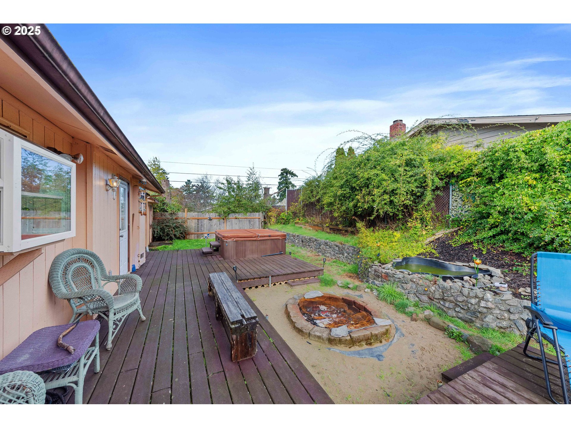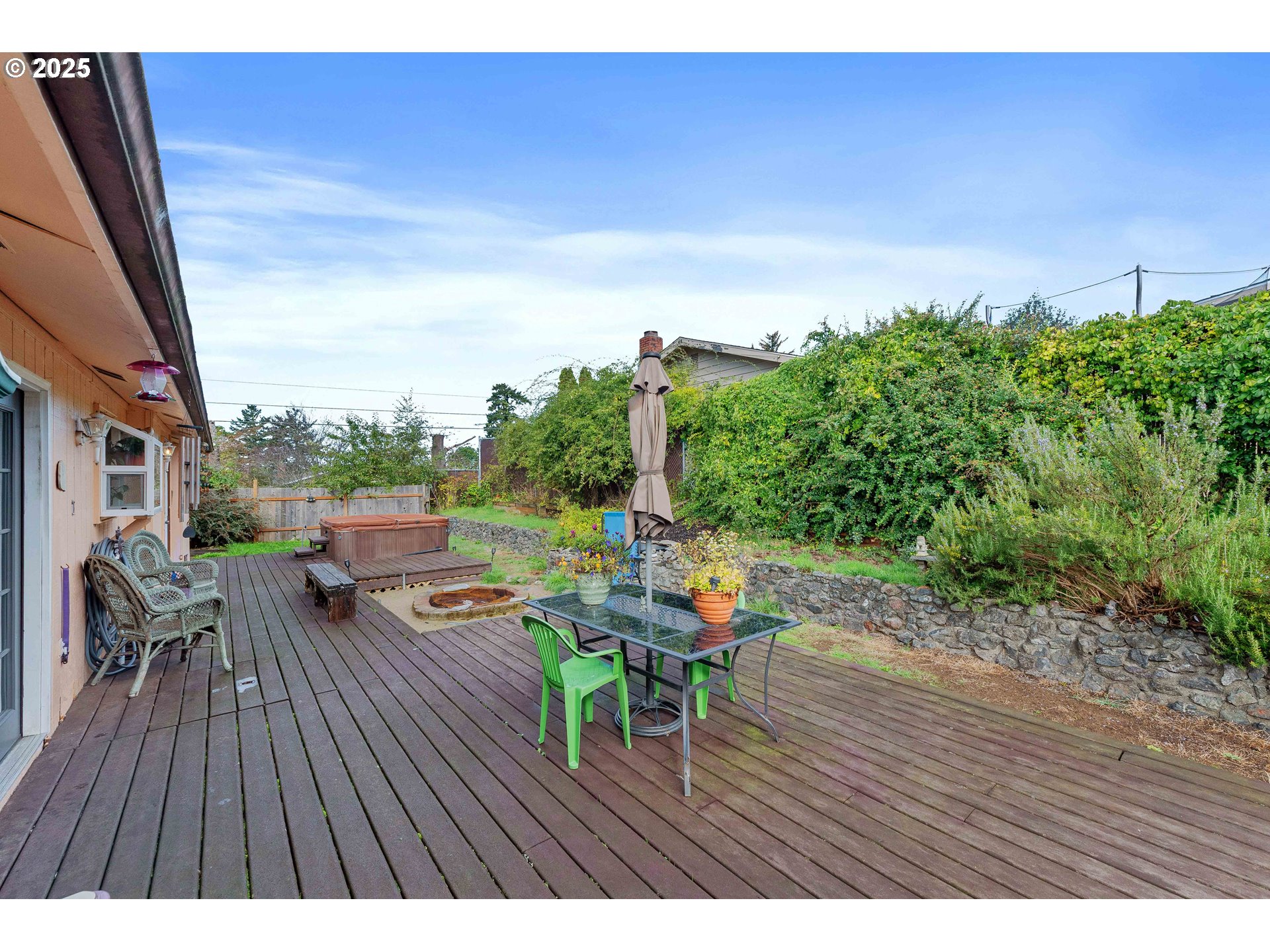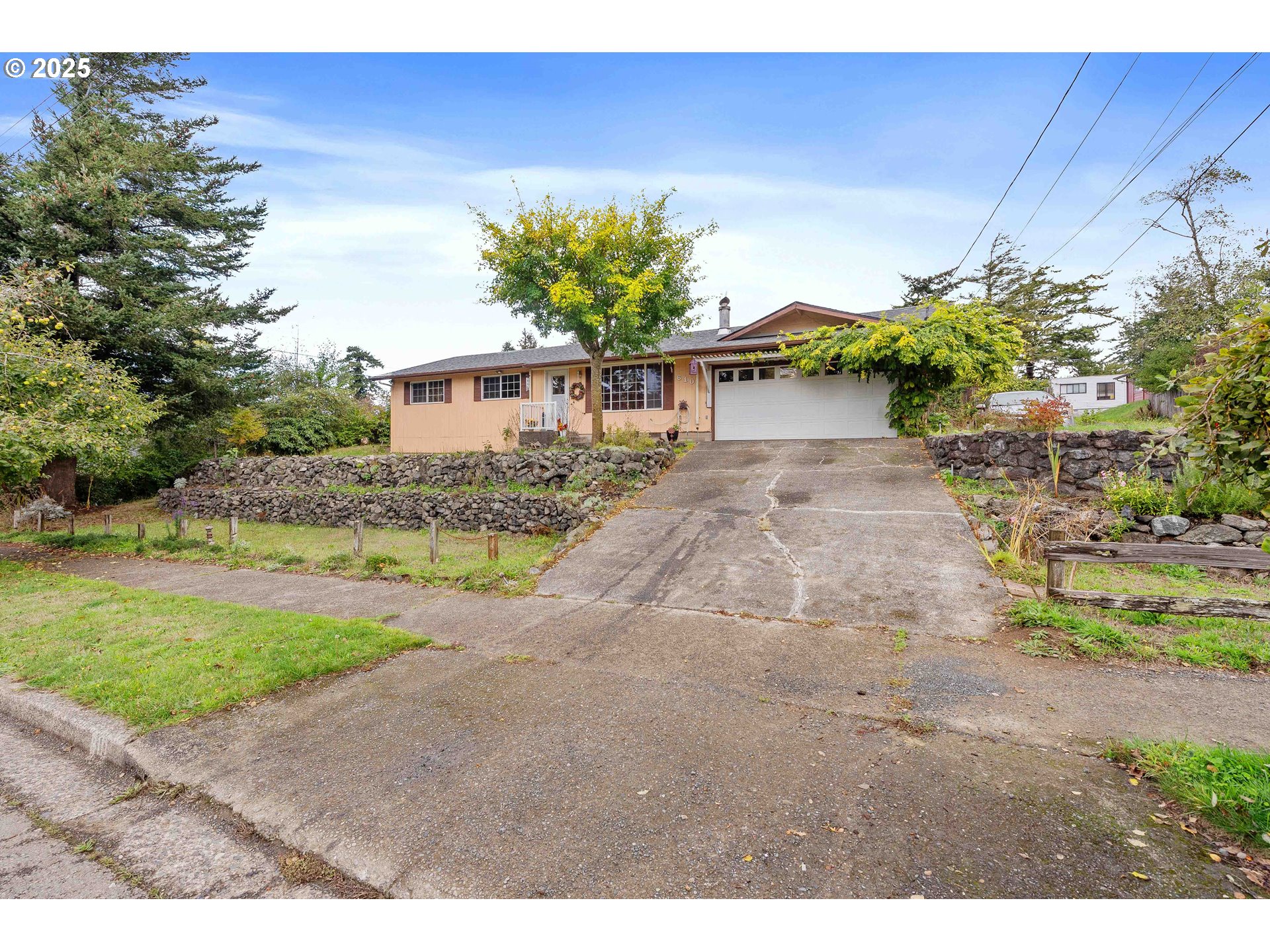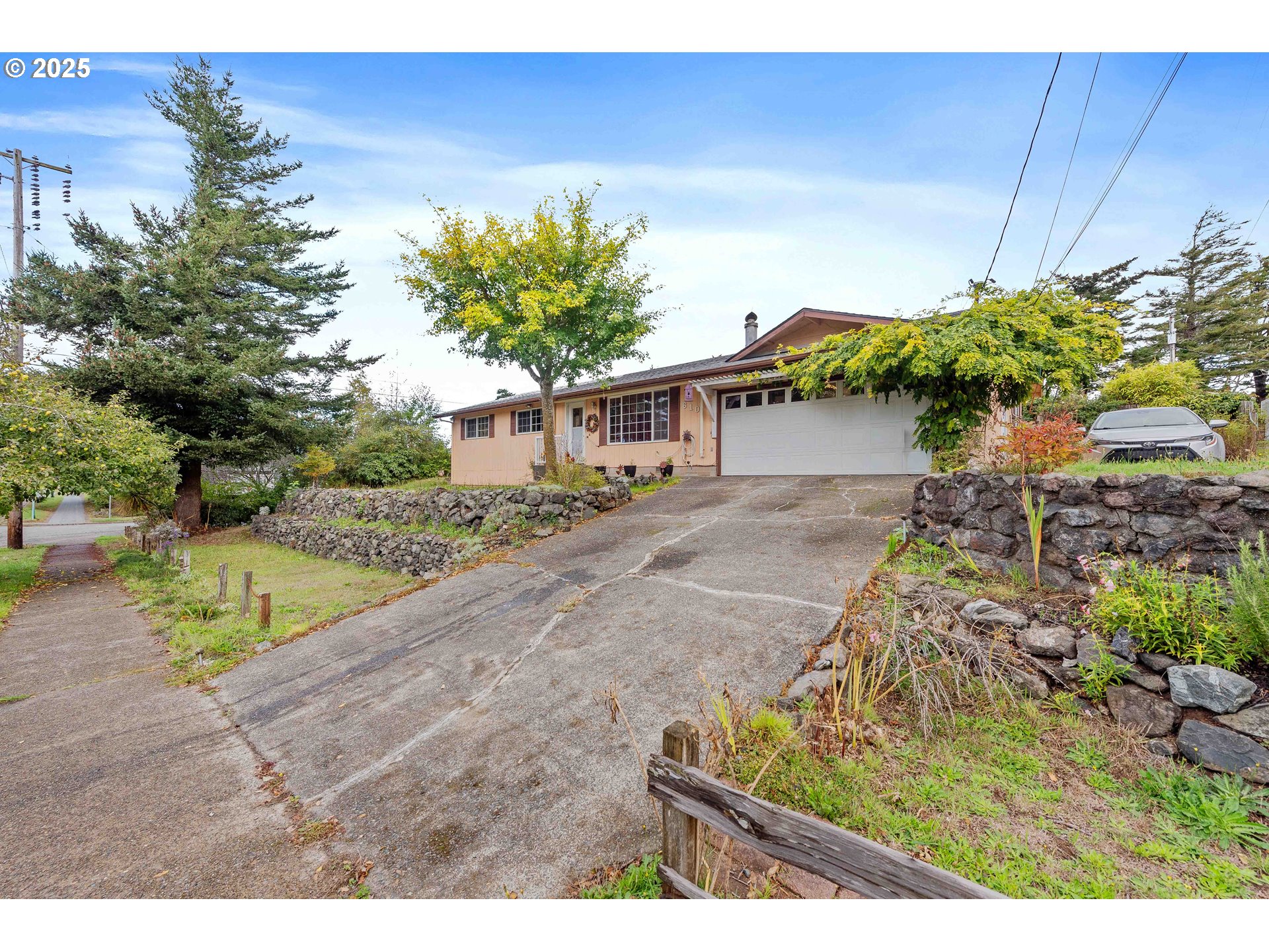 Charming Coastal Retreat on a Corner Lot. Just Minutes from the Pacific Ocean, hear it from your back yard. Don’t miss this must-see priced-to-sell 1,436 sq ft single-level ranch-style home, ideally located on a spacious corner lot with excellent curb appeal. Just minutes from the breathtaking Oregon Coast, you’ll enjoy quick access to Pacific Ocean beaches, scenic walking trails, and all the natural beauty this area has to offer. This 3-bedroom, 2-bath home features a newer roof, updated kitchen appliances, newer carpet, and vaulted ceilings that enhance the open and airy feel. The primary suite includes a private en suite bath, while the two additional bedrooms offer great space for guests, family, or a home office. A bonus room in the garage adds flexibility for a gym, studio, or extra storage. The cozy living area includes a pellet stove and built-in media cabinet. French doors off the dining room lead to a private, fully fenced backyard complete with a deck and custom fire pit—perfect for entertaining or relaxing. Additional parking next to the garage provides room for your RV, boat, or other toys. Easy to show, this coastal gem blends comfort, convenience, and charm—ready for its next owner. Hot tub works and goes with sale of home.