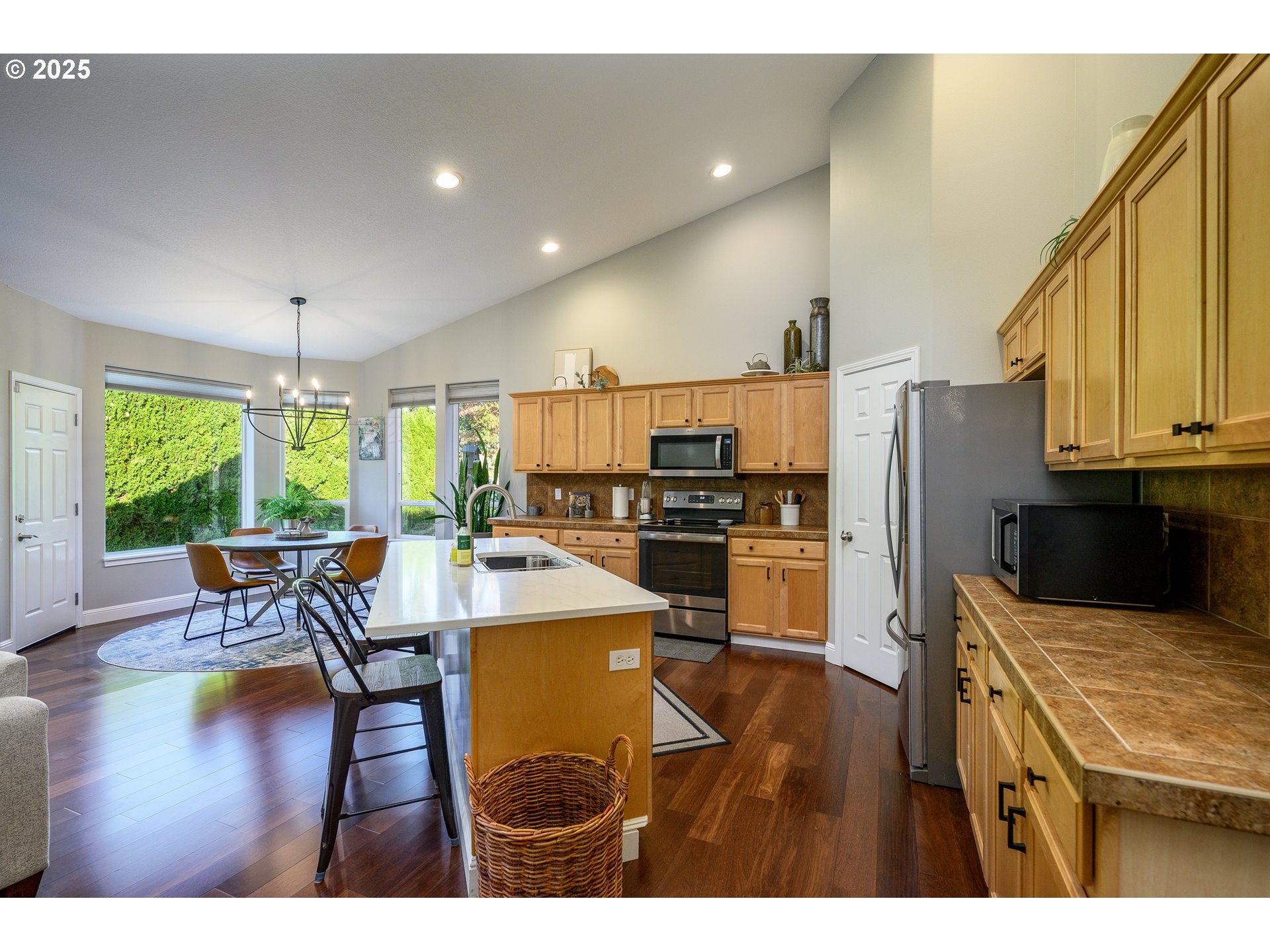 Location, functionality, and upgraded finishes come together to make this a wonderful home in the West Hills. Skylights and windows fill the space with natural light throughout, creating a bright and inviting atmosphere.The large living areas make entertaining effortless, with an expansive kitchen featuring a pantry, quartz island with bar seating, and an open layout that connects to the family room—complete with vaulted ceilings and a cozy gas fireplace.The generous primary bedroom offers privacy, an ensuite bathroom with a large soaking tub, and an expansive walk-in closet. The second bedroom is versatile and can serve as a den or office space.Set on a fully fenced corner lot, this home boasts a private backyard with a new deck, perfect for outdoor gatherings. A delightful shed with power sits on a concrete pad, adding extra storage and convenience.