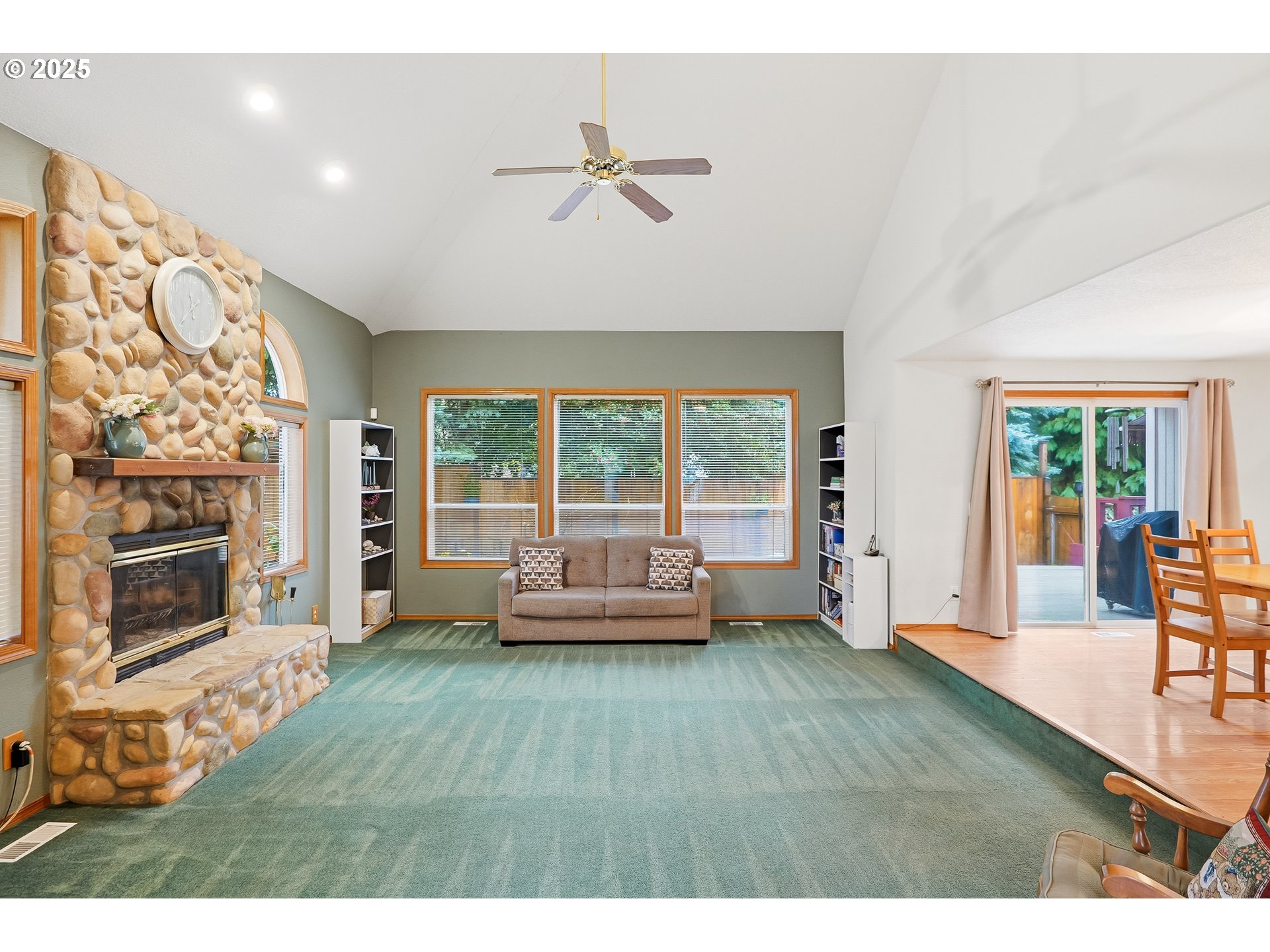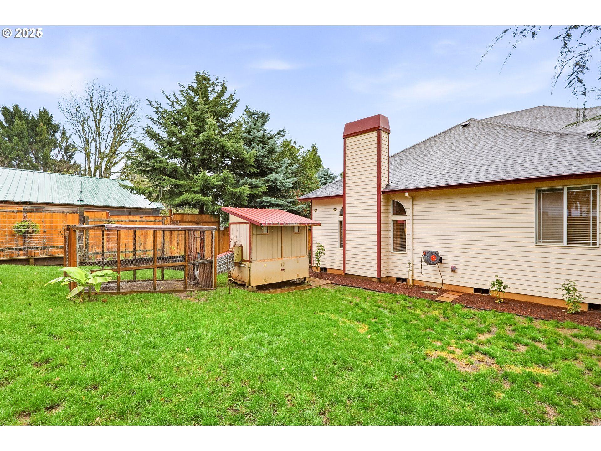 Welcome to this beautifully maintained home nestled in a quiet, established cul-de-sac. The open floor plan features a vaulted living room with a stunning stone wood-burning fireplace, creating a warm and welcoming atmosphere. The spacious kitchen offers stainless steel appliances, a pantry, and a center island. Enjoy the ease of main-level laundry, den and appreciate the extra storage options throughout, including additional space in the garage. Upstairs, you’ll find three generously sized bedrooms filled with natural light. The primary boasts a large walk in closet, soaking tub and walk in shower.Set on a large lot, the yard is a true highlight with a lovely deck, fenced garden area, chicken coop, and extra storage—ideal for anyone who loves outdoor living. Located in a peaceful Estacada cul-de-sac, this home blends comfort, charm, and room to grow.
