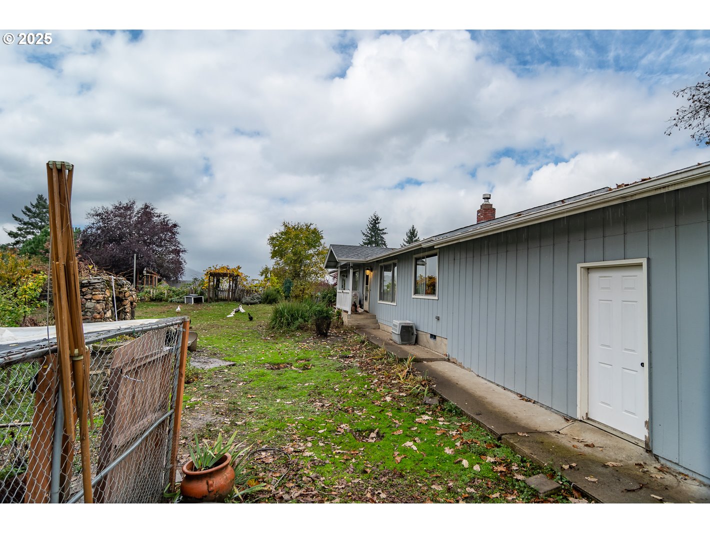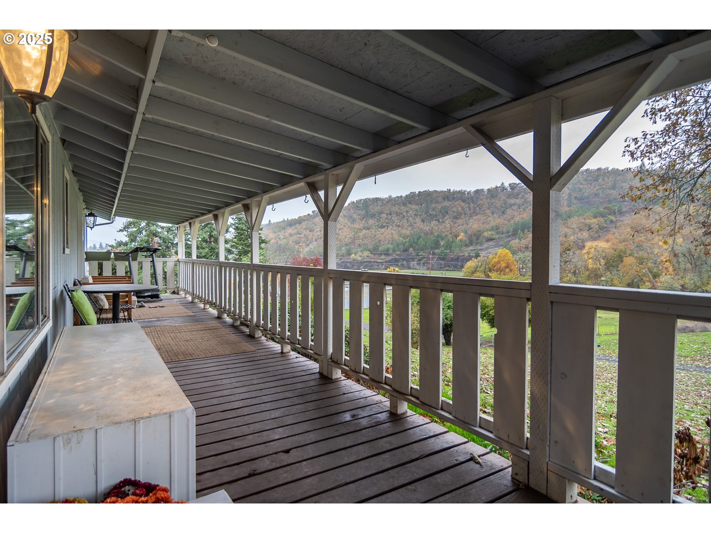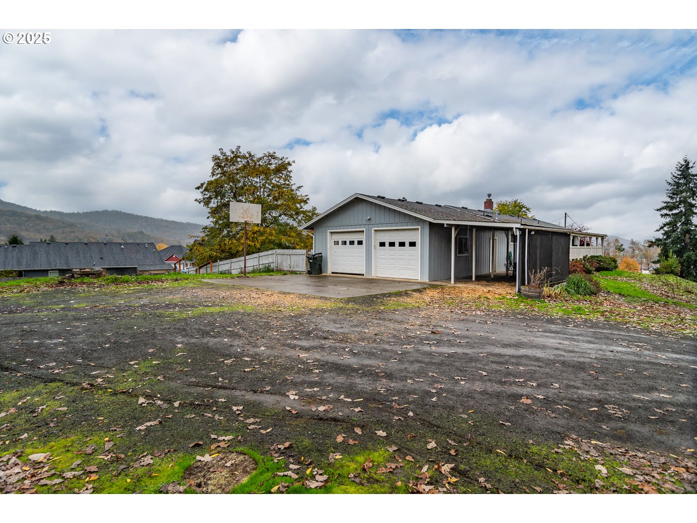 This spacious home sits on nearly 2 acres and offers a country feel with stunning views of the surrounding mountains, all while being just minutes away from everything Roseburg has to offer. The property can be subdivided, as per city regulations. Inside, the residence features both a family room and a living room, along with a double-sided gas fireplace for cozy winter nights. A primary suite has a walk-in closet. There are two full bathrooms. The oversized two-car garage offers ample storage space, complete with a built-in pantry.French doors open to a large, covered deck, perfect for outdoor entertaining while taking in the beautiful scenery. The property includes two RV spots with hookups and a cleared area ready for a workshop. It is fully fenced and cross-fenced. The outdoor space features a built-in BBQ, a chicken coop, and a greenhouse equipped with solar power and a built-in sprinkler system with timers.There is ample garden space that includes a variety of herbs, berries, and grapes, along with numerous fruit trees such as apple, pear, peach, plum, fig, cherry, and a filbert tree.