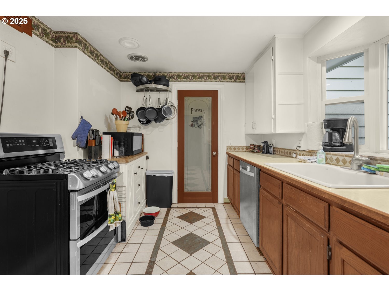 Welcome to this inviting 4-bedroom, 2-bath ranch-style home on a large, beautifully treed .23-acre lot. Step inside to find hardwood floors gracing the living room, dining area, and two bedrooms. The arched doorways and quaint bay window add warmth and character, while the pellet stove creates a cozy gathering spot in the living room. The layout flows seamlessly into the dining area and kitchen featuring stainless steel appliances and a walk-in pantry. A convenient laundry room just off the kitchen opens to a spacious deck, ideal for outdoor dining and entertaining. The primary suite includes a private bath with walk-in shower, while three additional bedrooms share a full guest bath with tub/shower. Outside, enjoy the fully fenced backyard with covered deck, perfect for relaxing or hosting guests, plus space for gardening or play. The detached garage offers a full attic for storage and there’s plenty of parking space for RVs, boats, or extra vehicles. Located just minutes from local dining, shopping, parks, and hiking trails, this home combines comfort, convenience, and charm, with a great bike score to match!