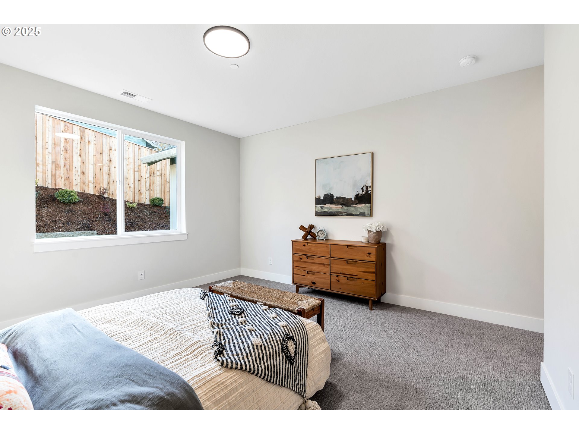 Discover a popular single-level home in North Newberg, featuring stunning interior finishes, quartz countertops in the kitchen and bathrooms, stylish luxury vinyl plank flooring throughout, and high-end carpet in the bedrooms. The home offers a welcoming covered back patio, perfect for outdoor living. The backyard provides privacy and charm, enhanced by a retaining wall. This new construction home is fully landscaped, comes equipped with central air and a refrigerator, and includes a builder's warranty. Located in a desirable neighborhood of just 11 homes on a cul-de-sac, with the scenic Newberg Peace Walking Trail nearby.