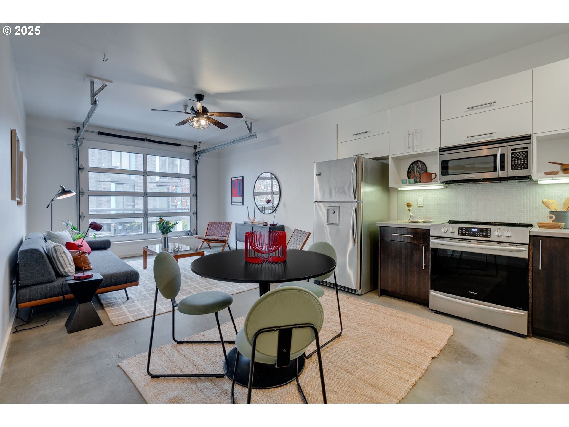 Welcome to Hakoya Lofts, an architecturally distinct mixed-use community in the heart of Williams. Inspired by its Japanese namesake, the building’s striking design showcases a floating cubic upper volume rising above a sleek, all-glass ground floor—creating a bold, modern presence along the vibrant Williams Avenue corridor. With ground-floor commercial spaces energizing the street and six contemporary loft-style residences above, Hakoya seamlessly blends design, culture, and urban energy into one cohesive experience.Unit 203 offers 1,008 sq. ft. of stylish, light-filled two-level living. The open main floor features polished heated concrete floors, high ceilings, a modern kitchen and living area, a convenient half bath, and a signature glass garage-style door that fills the space with natural light and brings the outdoors in. Upstairs, you’ll find two bedrooms, including one with a private balcony, plus a shared full bath and in-unit laundry for everyday convenience.Hakoya Lofts is the product of thoughtful environmental planning and a creative collaboration with Sakura Urban Concepts—an innovative addition to a neighborhood celebrated for its energy, amenities, bikeability, and continual growth. A uniquely modern home in one of Portland’s most dynamic districts, Unit 203 puts you at the center of it all—where modern design meets urban living at its best.