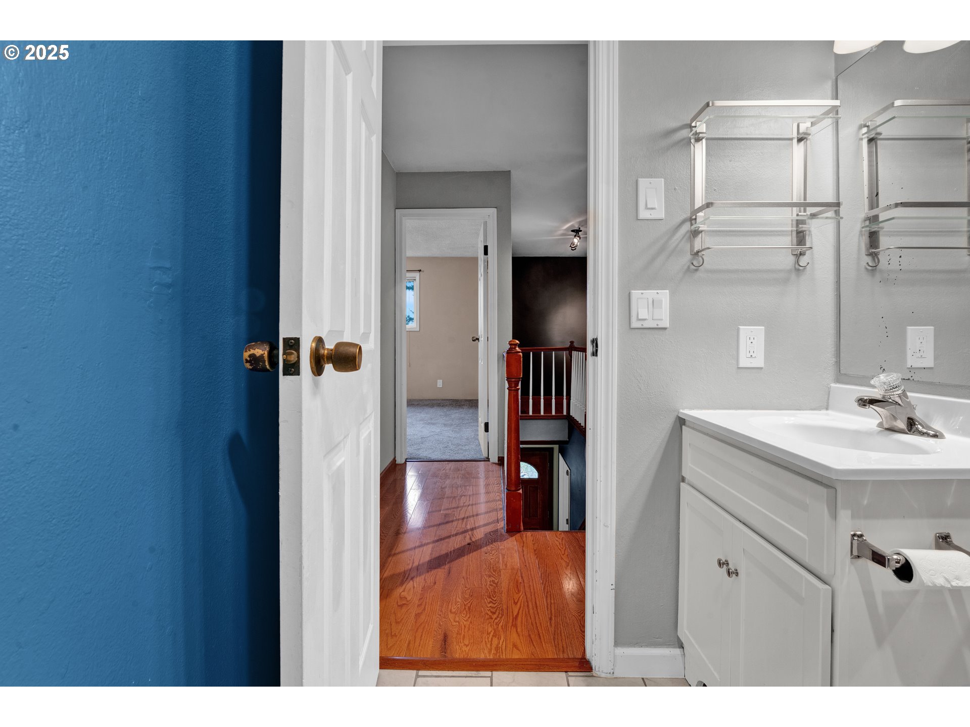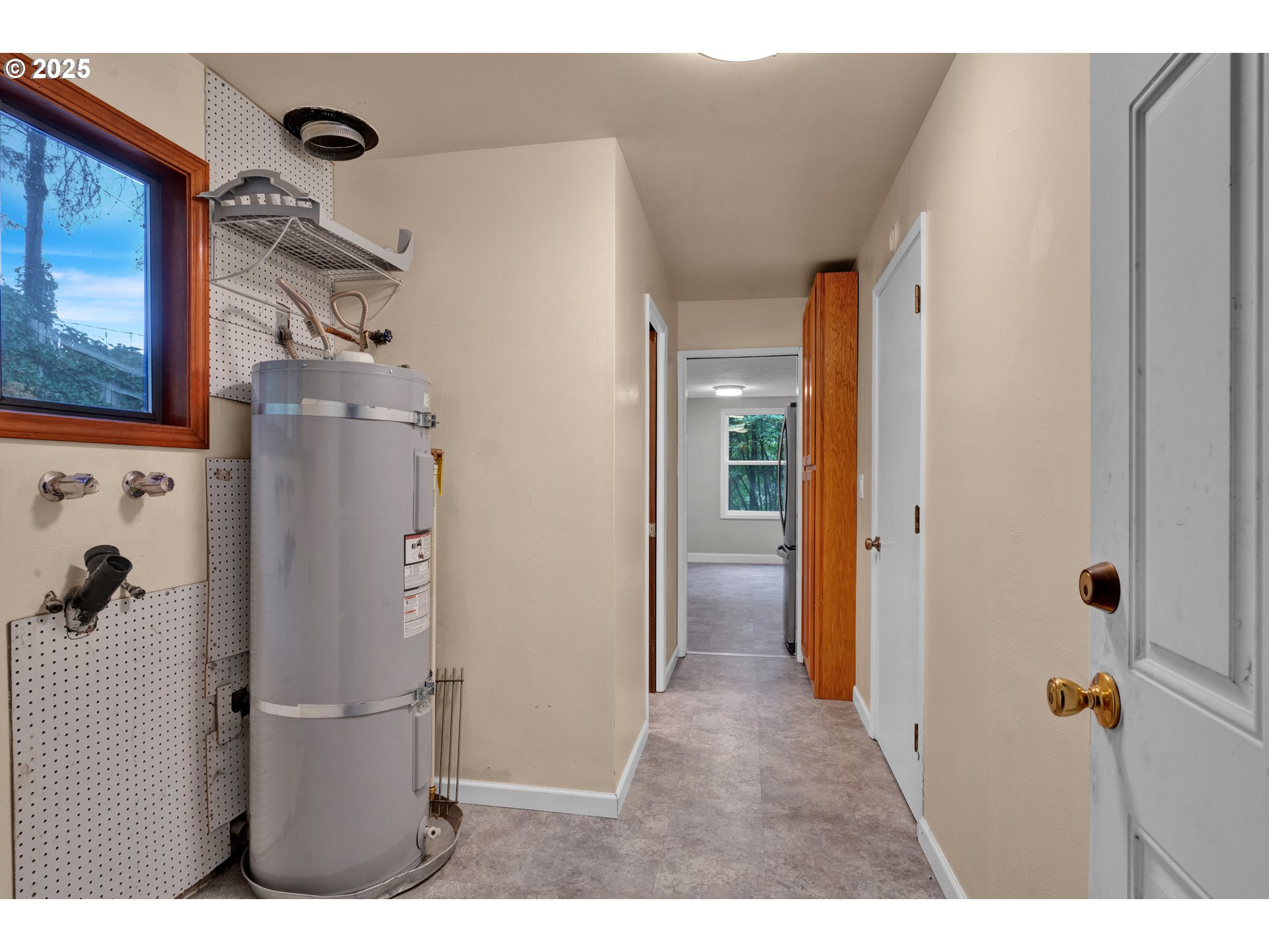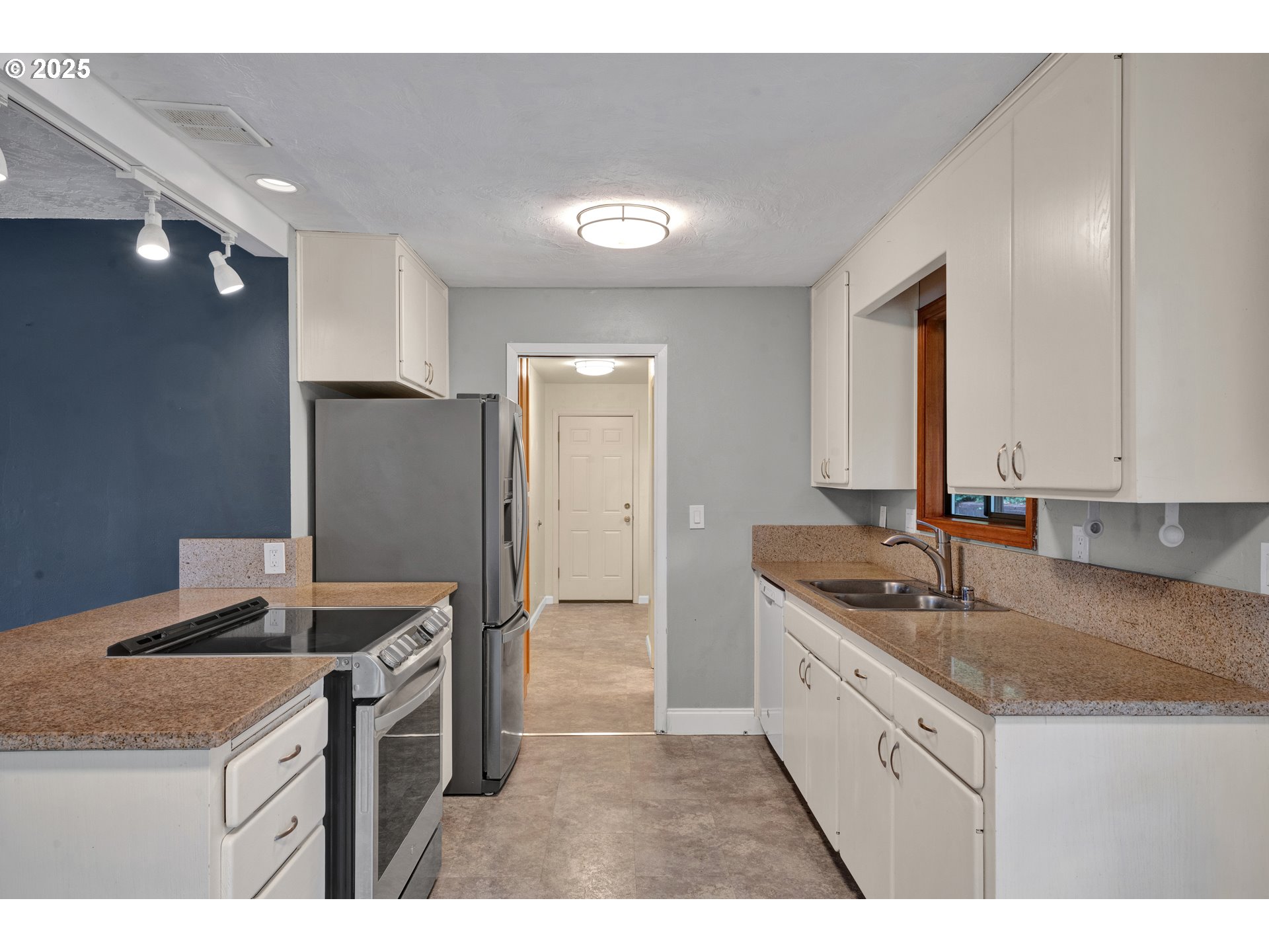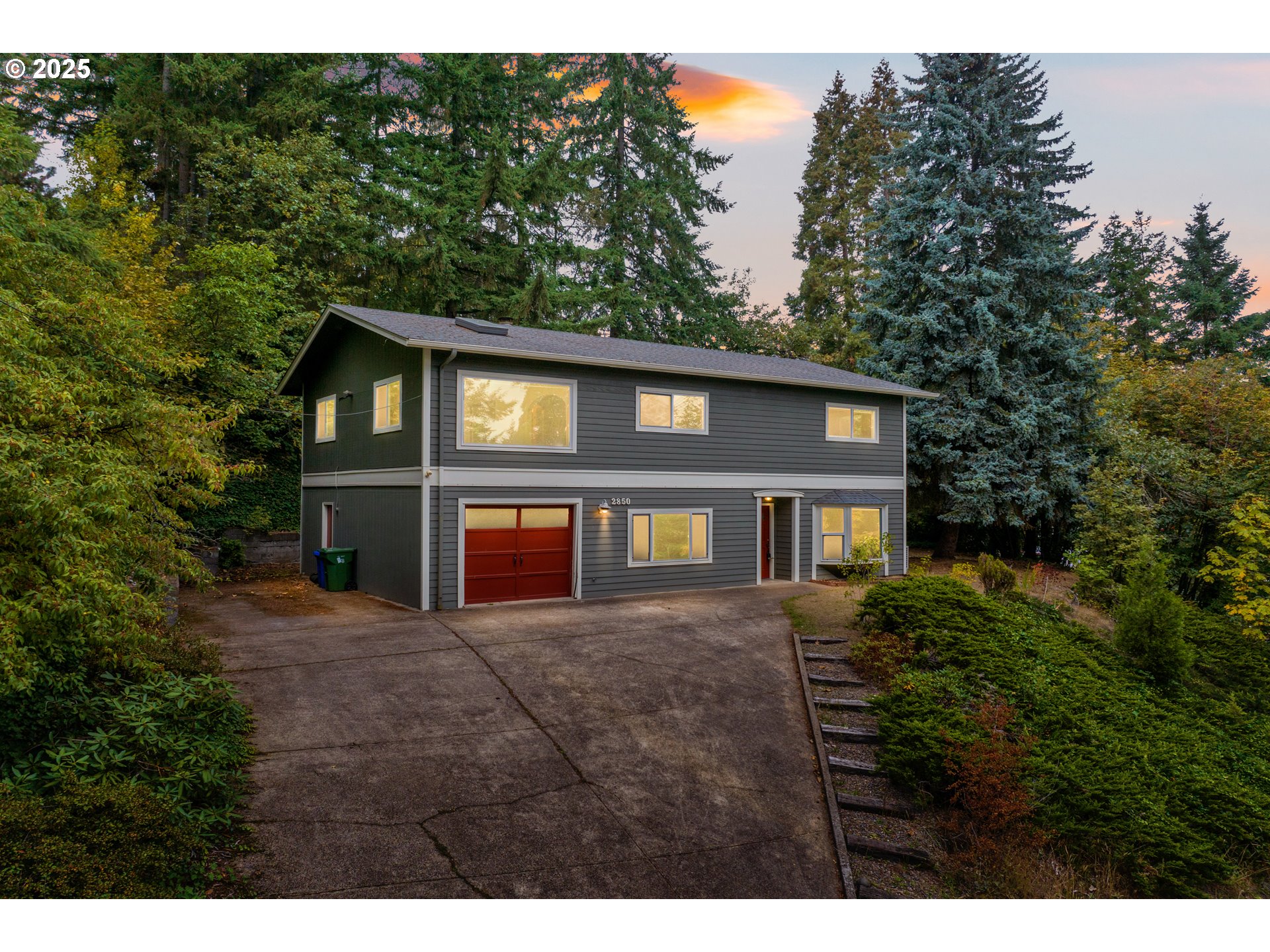 Step inside to a comfortably designed living space with a focus on light and functionality. The main floor features a living room with a big bay window. The galley kitchen boasts granite countertops, a convenient breakfast bar, and French doors that lead directly out to a lovely covered patio—perfect for year-round outdoor cooking and dining. This home offers great flexibility with a one-car garage that opens into a laundry room, complete with a half bath, easily converted to a whole bath. The laundry room conveniently connects to the kitchen and the 4th bedroom. This downstairs room, with its half-bath access, can easily serve as a comfortable downstairs primary suite, a family room, a private office, or a formal dining room, adapting perfectly to your needs. Ascend the stairs to find a full bathroom along with 3 total bedrooms, one being your own private sanctuary: a huge upstairs primary suite. Massive windows and skylights bathe the room in natural light. The exquisite en-suite bathroom is a true retreat, featuring tile work, a glass-stall shower, a luxurious and deep jetted tub for ultimate relaxation, and tons of storage. As a final touch of convenience, the primary bathroom also includes a dedicated laundry chute! Outside, the large lot offers a tiered raised garden bed right off the covered patio—ideal for cultivating your kitchen herbs or flowers. Tucked away in the bottom corner of the yard is a serene cove with a fire pit, a perfect spot for cozy evenings and marshmallow roasting. This versatile home offers a premium location, remarkable indoor-outdoor living, and a truly stunning primary suite. This highly sought-after area offers incredible access to Eugene's best amenities; moments away from shopping and dining. Outdoor enthusiasts will adore the proximity to Eugene's extensive park and trail systems. This home has a lot to offer; the perfect blend of suburban tranquility and urban accessibility, just waiting for your touches.