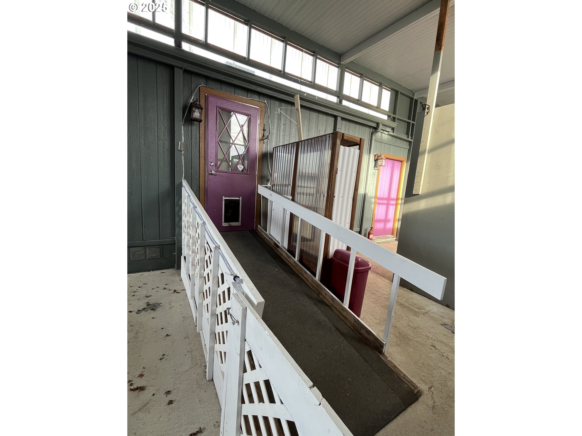 This charming double wide manufactured home is situated in a welcoming 55+ mobile home community in Reedsport, the Heart of the Oregon Dunes, just two miles from the stunning Oregon coast and the scenic Dean Creek elk viewing area. Enjoy a plethora of outdoor adventures with over 17 lakes within a 30-minute drive, perfect for fishing, boating, and other water-related activities. The area also features state and county parks that provide easy access to miles of picturesque hiking trails, abundant wildlife, and exceptional birdwatching opportunities, all within minutes, from the home. Pleasant walking path for duck and wildlife viewing in the Park. Built in 1991, this home boasts an inviting open concept design that seamlessly connects the kitchen, dining room, and living room. The vaulted ceilings and an abundance of windows, including skylights, create a light, bright, and airy atmosphere. With two spacious bedrooms, each featuring large closets, and two well-appointed bathrooms, including a master bath with a walk-in shower, this home is both functional and comfortable. All appliances are included, featuring a stainless steel French door refrigerator with a bottom freezer and ice maker, stainless glass top stove, new disposal and ample cupboard space in the recently updated kitchen. Front loading Washer with matching Dryer included in a separate laundry/pantry area. A new roof and laminate floors were installed in 2020. The property also offers a versatile shop and an indoor-outdoor patio, along with a large multipurpose carport that can double as a year-round greenhouse, and a covered ramp to the back door. For added peace of mind, the home comes with a transferable warranty from Ram Jack for foundation maintenance, ensuring you can enjoy your new space worry-free. Don't miss out on this incredible opportunity to experience coastal living at its finest!