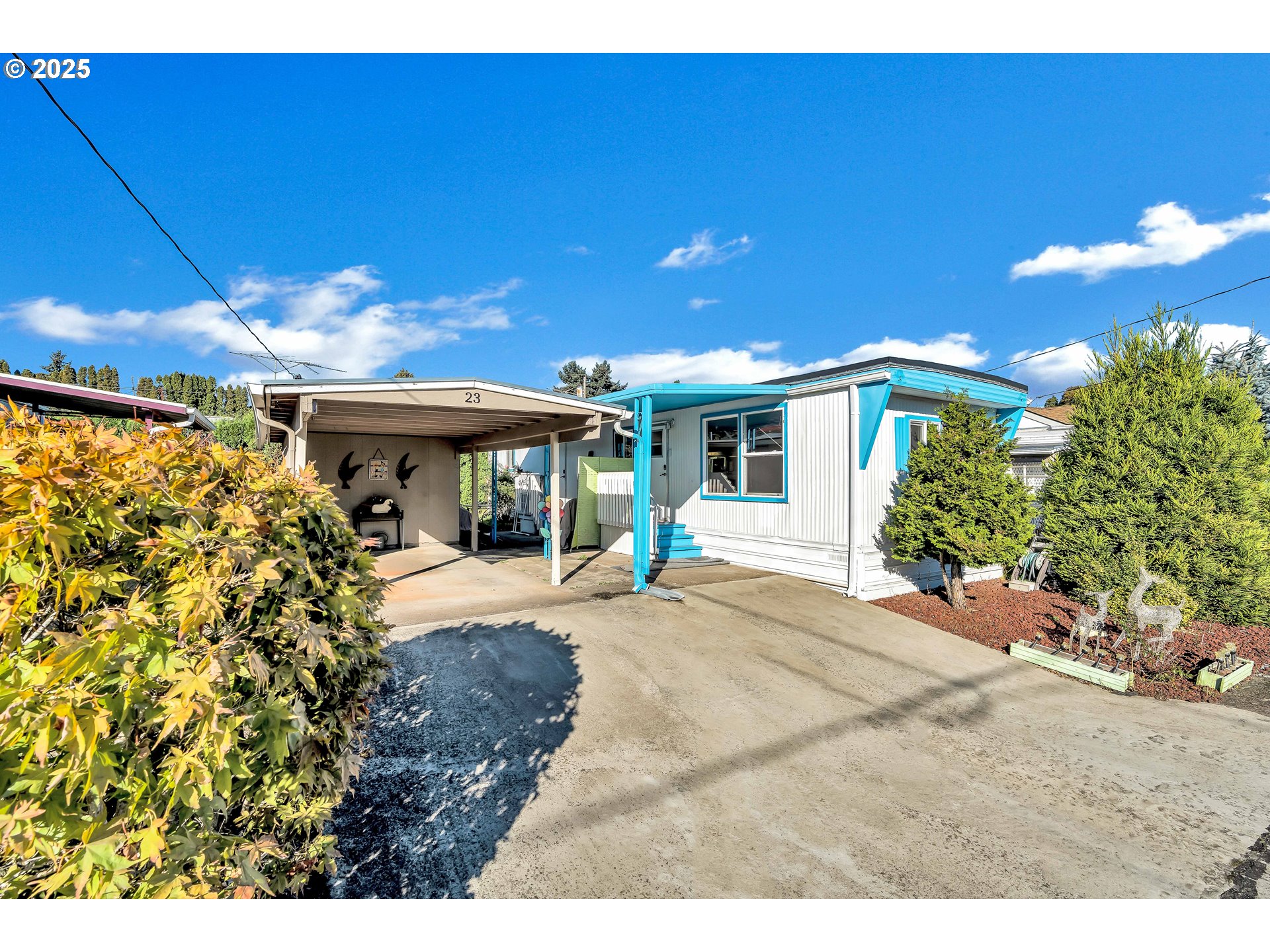 Well-kept manufactured home in a peaceful park setting! This charming 1-bedroom, 1-bath residence offers an open-concept layout connecting the living room, dining area, and kitchen, creating a bright and spacious feel. Large windows fill the home with natural light, enhancing the sense of openness and warmth. Enjoy the convenience of a carport and easy access to highways, making commuting simple and stress-free. A comfortable and affordable place to call home!