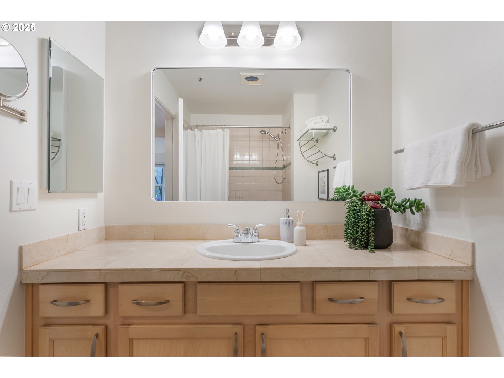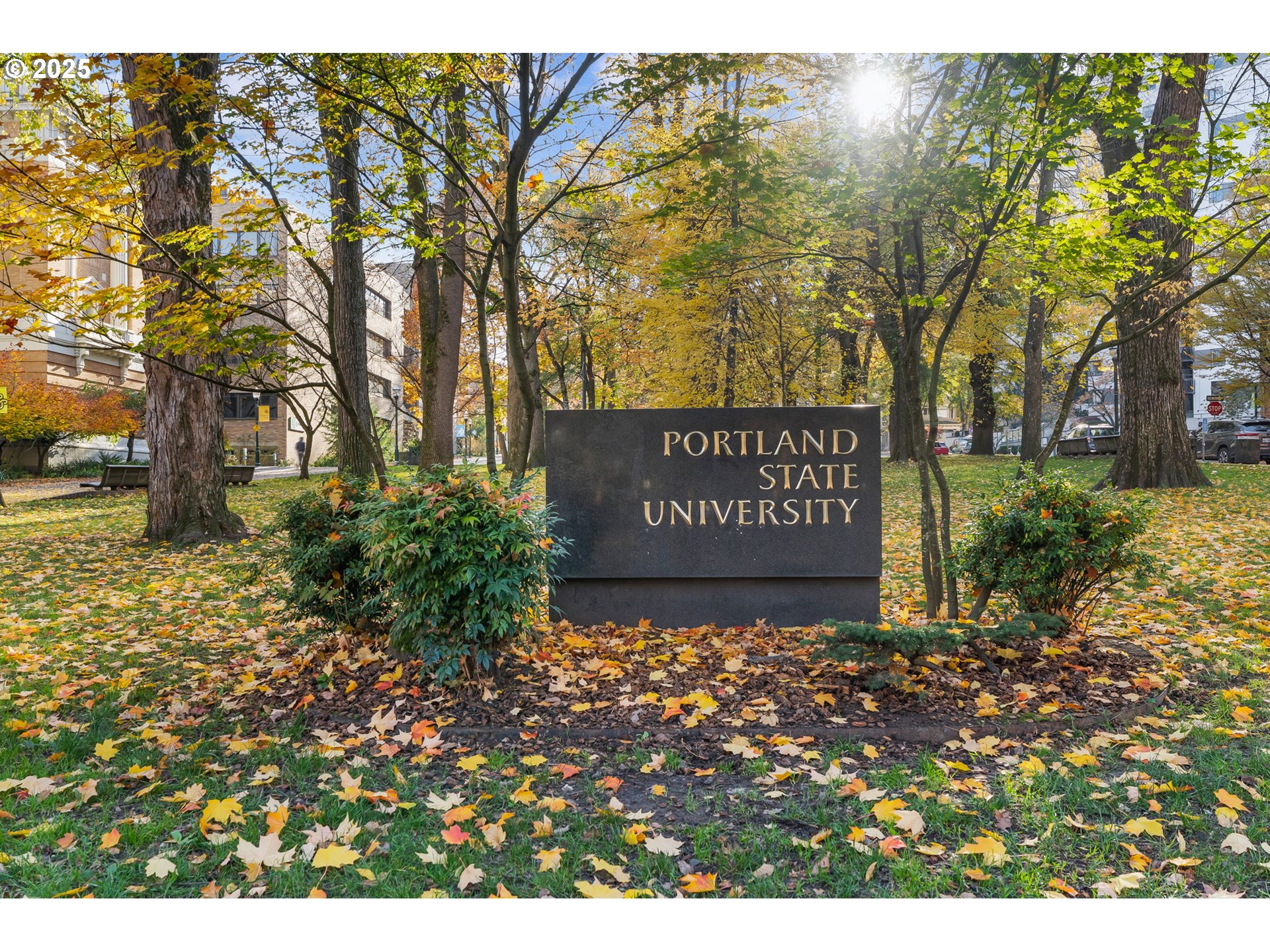 Welcome to the best of urban living just steps from the beautiful downtown park blocks! Enjoy short walks to the Arlene Schnitzer concert hall, Portland Art Museum, Portland State University and a plethora of cafes and restaurants. This first floor one level home was just freshly renovated with new luxury vinyl plank flooring, fresh interior paint through out. The open great room concept allows for a cozy family room and a full dining space. It opens onto a covered balcony that looks onto the beauty of the park blocks. Enjoy a primary ensuite with full bath and walk in closet. The efficient kitchen presents with granite counters and stainless steel appliances. A stackable washer and dryer in the unit included. This is a beautiful and secure building, gated courtyard entrance with secure common areas and onsite building supervisor. The community amenities are extensive including, meeting room/library, weight room/gym, bike storage, roof top, sundeck with city views and a gorgeous courtyard. Deeded parking #99 and storage unit #11. This is a hidden gem in the heart of the downtown, just move in and enjoy city living!