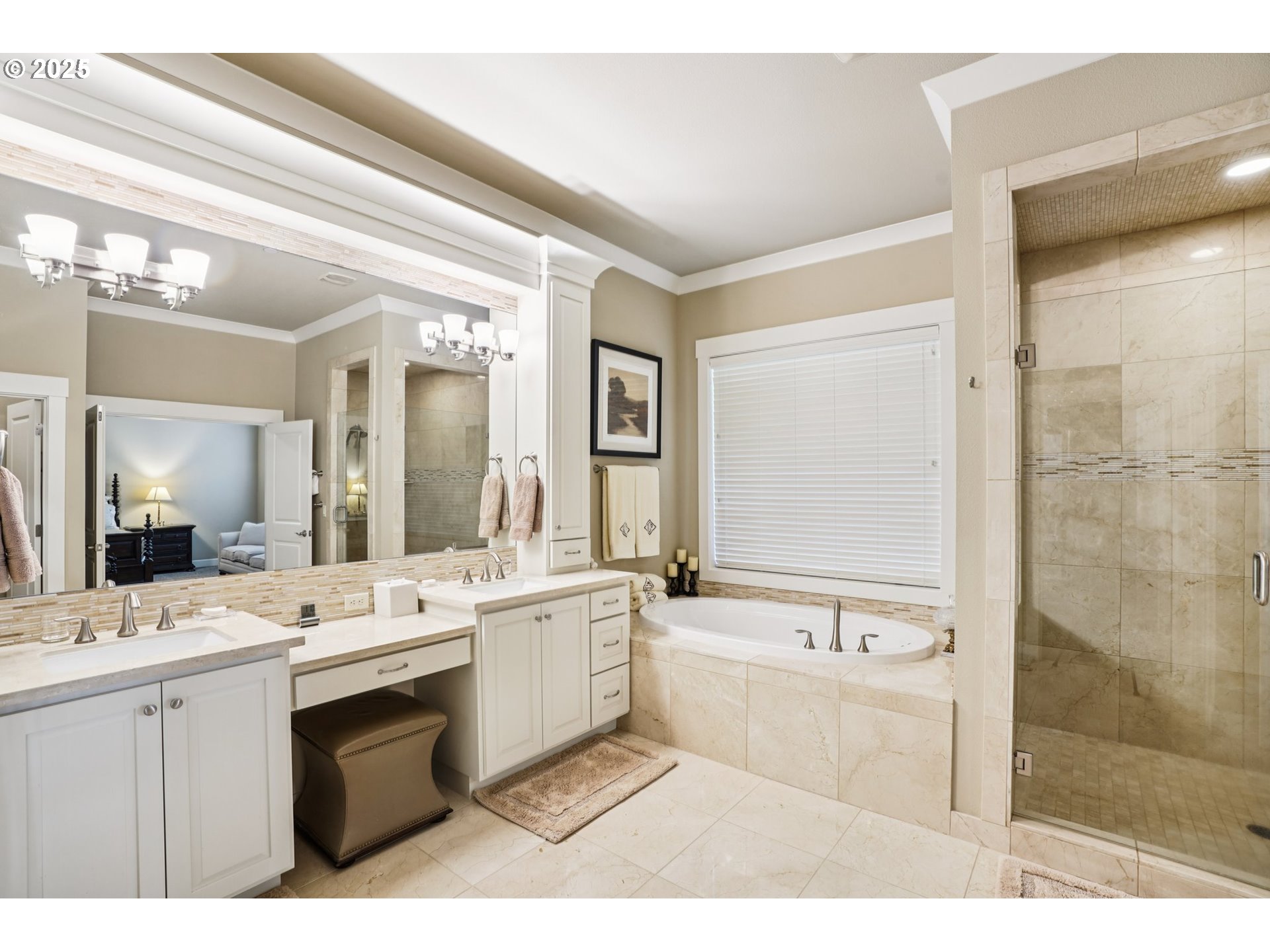Understated Elegance. Meticulously Handcrafted Comfortable Custom Home in Upscale Neighborhood of Lacamas Estates! 4 bedroom, 4 1/2 bath home with the primary as well as an additional full bedroom and bathroom on the main level. Beautifully appointed office, plus bonus and entertainment room upstairs. Two full laundry rooms w/built-in washers & dryers with one on each level. Soaring ceilings with coffered craftsman details, gorgeous wood floors and finishes, heated floors and even heated counters. Built-ins throughout the home as well as extensive storage in the large 3 car garage with flat and level access. Oversized Timber Frame Constructed back patio cover and an easy maintenance custom turf backyard for entertainment. Immaculately kept and maintained. This home needs nothing! Too much to list! Come see to appreciate.$12,000.00 to be paid to a buyer at closing to assist them with their closing costs.