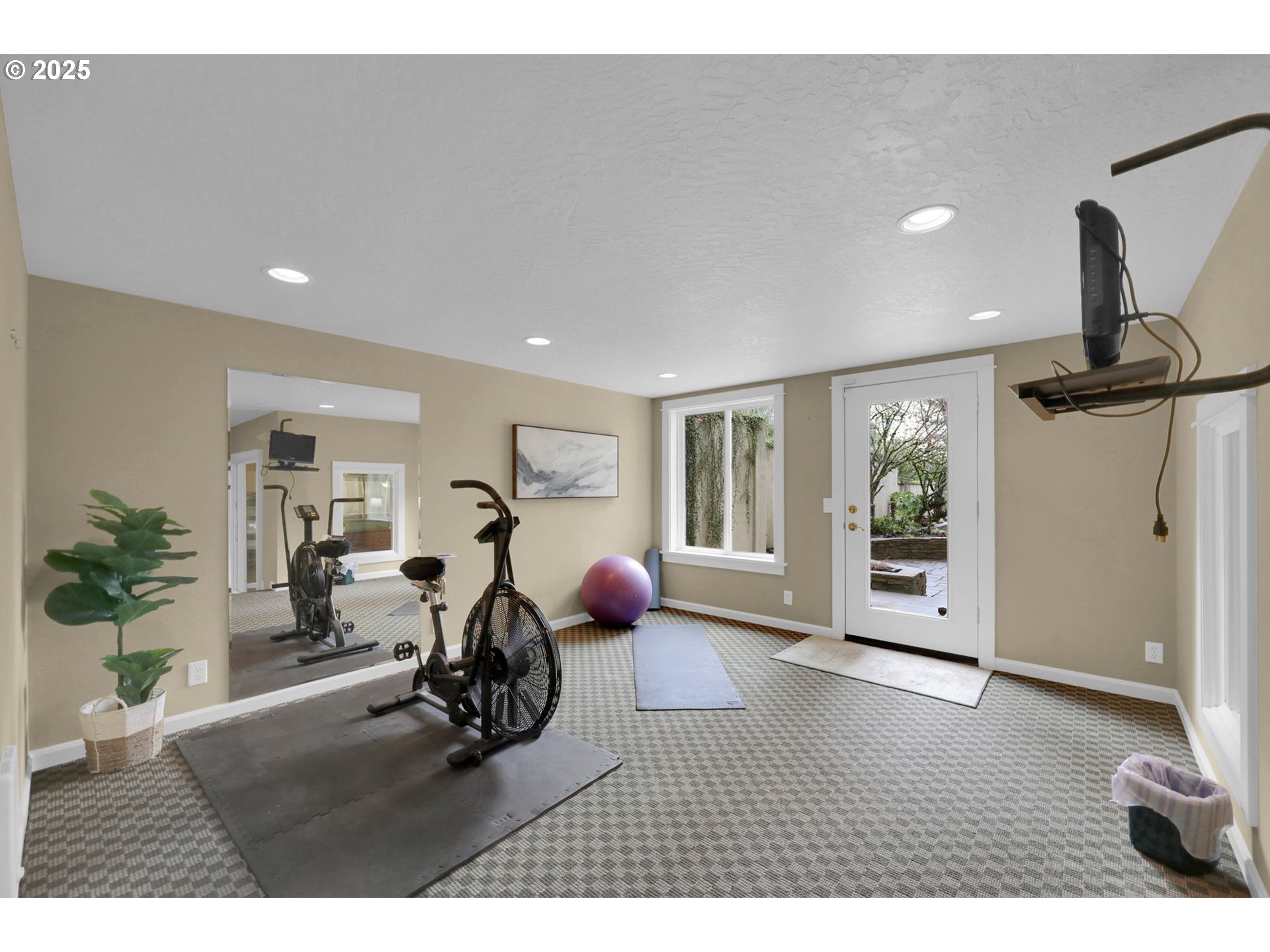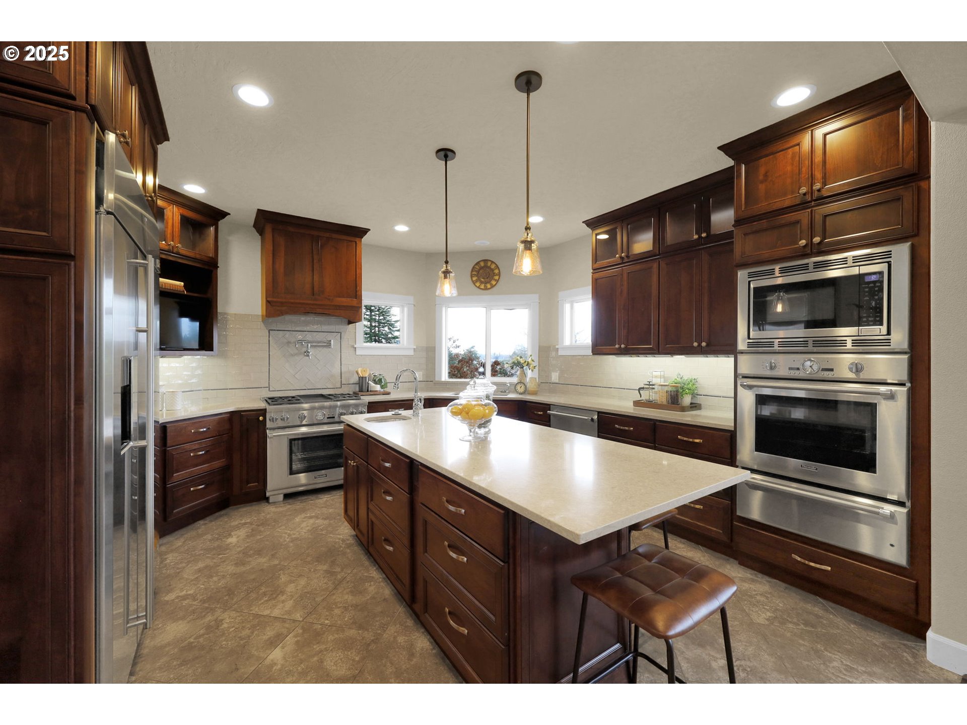 Heart of Eugene Hillside Home-Set high above the city with sweeping views yet impressively close to shopping, dining, and some of Eugene’s most sought-after schools, this refined hillside home offers an exceptional blend of convenience, privacy, and space. The main living area welcomes you with soaring ceilings, hardwood floors, a gas fireplace, and custom built-ins. The updated kitchen is an entertainer’s dream with a quartz-topped island, built-in refrigerator, dual ovens, gas cooktop with pot filler, and a warming drawer. A distinctive private bar area adds a fun and functional space for game nights or casual gatherings.Designed for comfort and flexibility, with a generous main-level wing that includes the serene bedroom suite, an adjoining office, a private gym area, and direct access to a low-maintenance courtyard. The ensuite features dual sinks, a walk-in shower, and two spacious walk-in closets.Upstairs, a large bonus room easily accommodates media, gaming, or recreational setups, and the upper bedrooms each include their own ensuite baths and walk-in closets, offering excellent individual space separation. Additional features include a well-designed mud/laundry room and a three-car garage with built-in storage.The home’s elevated placement maximizes natural light and panoramic views. Outdoor areas are intentionally low-maintenance, perfect for those who prefer relaxing or entertaining without the upkeep of a traditional lawn. With multiple levels and thoughtfully defined zones, this home beautifully supports a dynamic lifestyle where everyone can enjoy their own space.