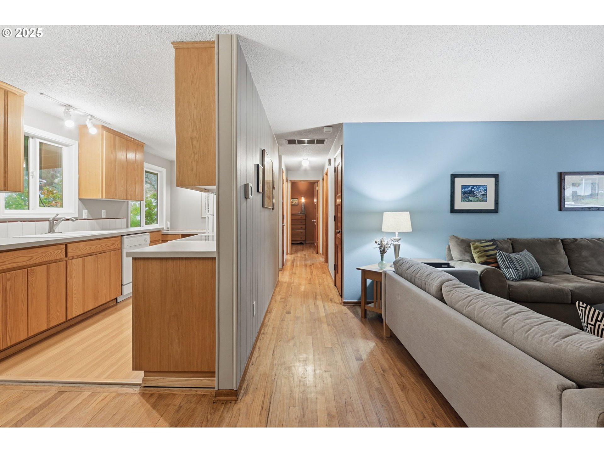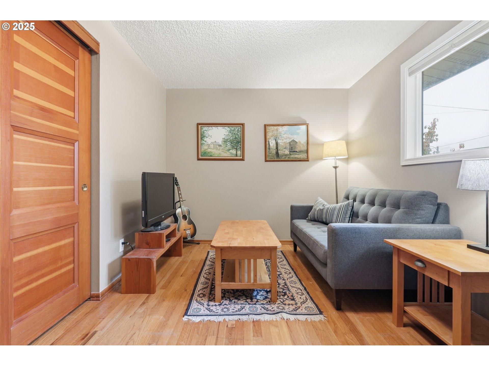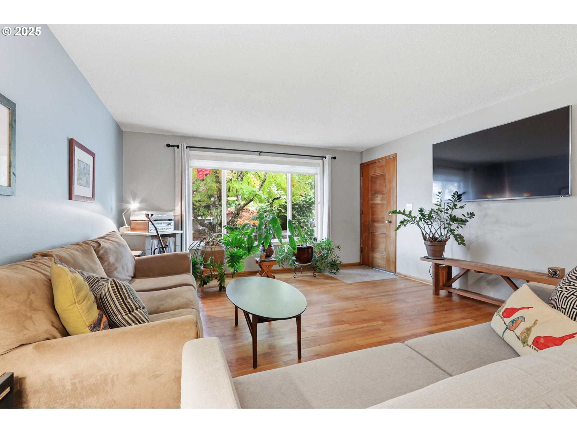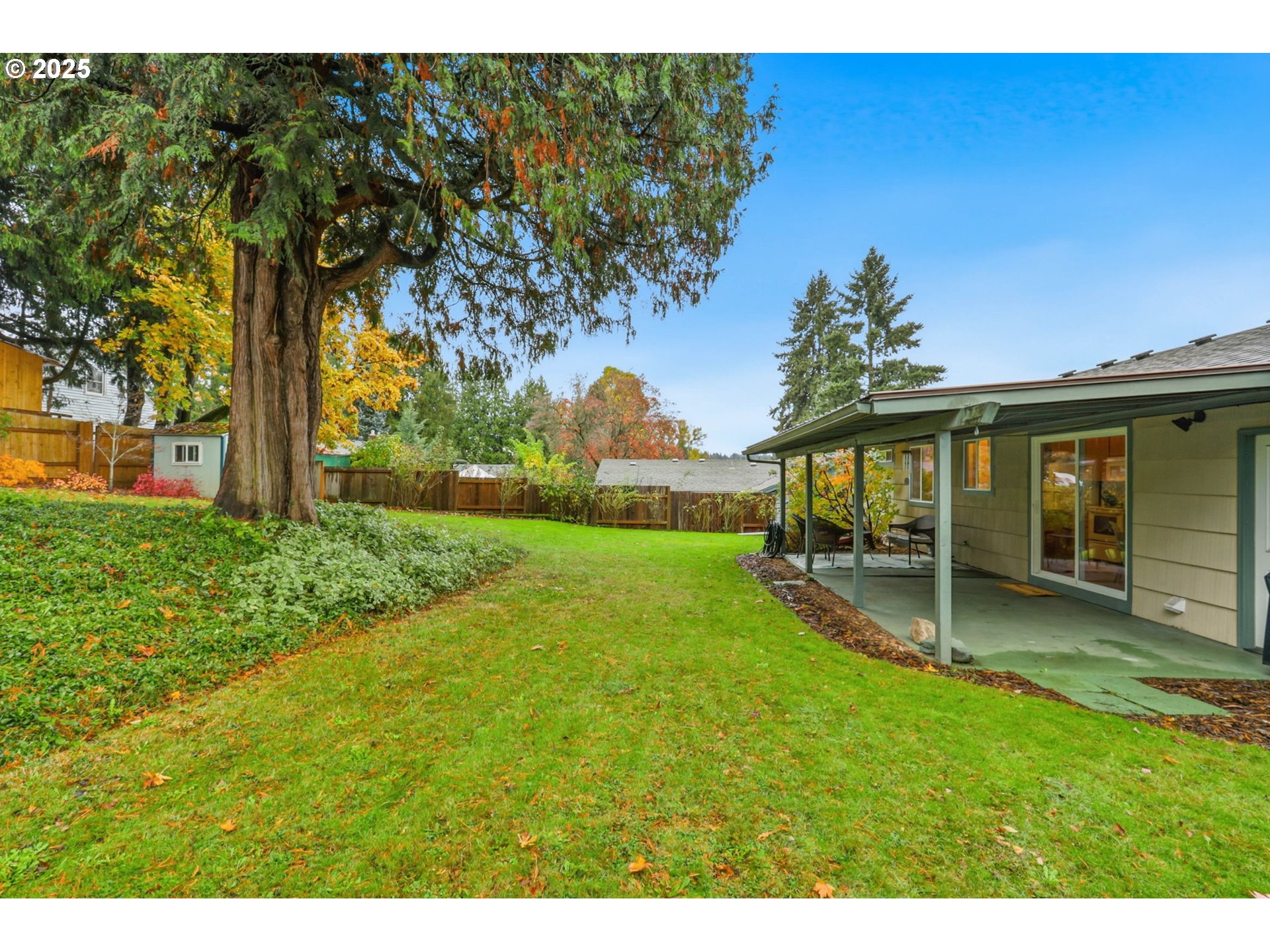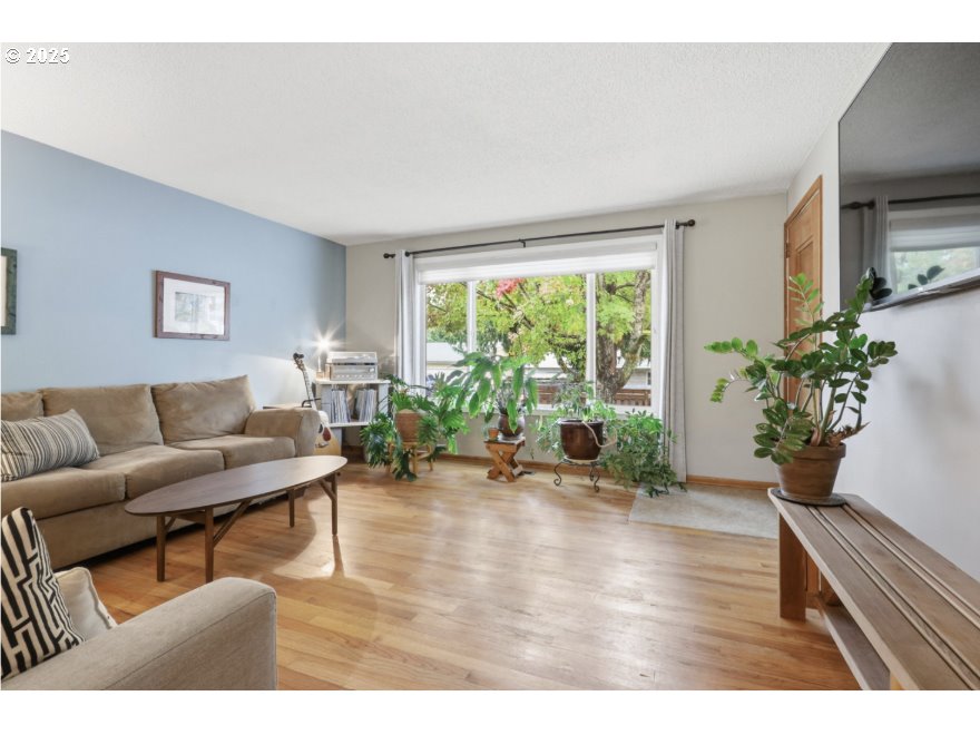 Charming one-level ranch-style home featuring hardwood floors throughout and a bright front living room with a wall of windows that fill the space with natural light. The open layout flows seamlessly into the spacious kitchen and dining area, perfect for everyday living and entertaining. Additional features include vinyl windows, air conditioning, a newer roof, and a finished two-car garage. Enjoy the large, fully fenced backyard with a covered patio, sitting area, and storage shed—ideal for relaxing or gardening. Conveniently located near Homewood Park, the Campbell Community Garden, public transit, and major highways, this home offers both comfort and accessibility in a desirable close-in location. View the video walkthrough: https://tinyurl.com/3f8na2v9 [Home Energy Score = 6. HES Report at https://rpt.greenbuildingregistry.com/hes/OR10242724]
