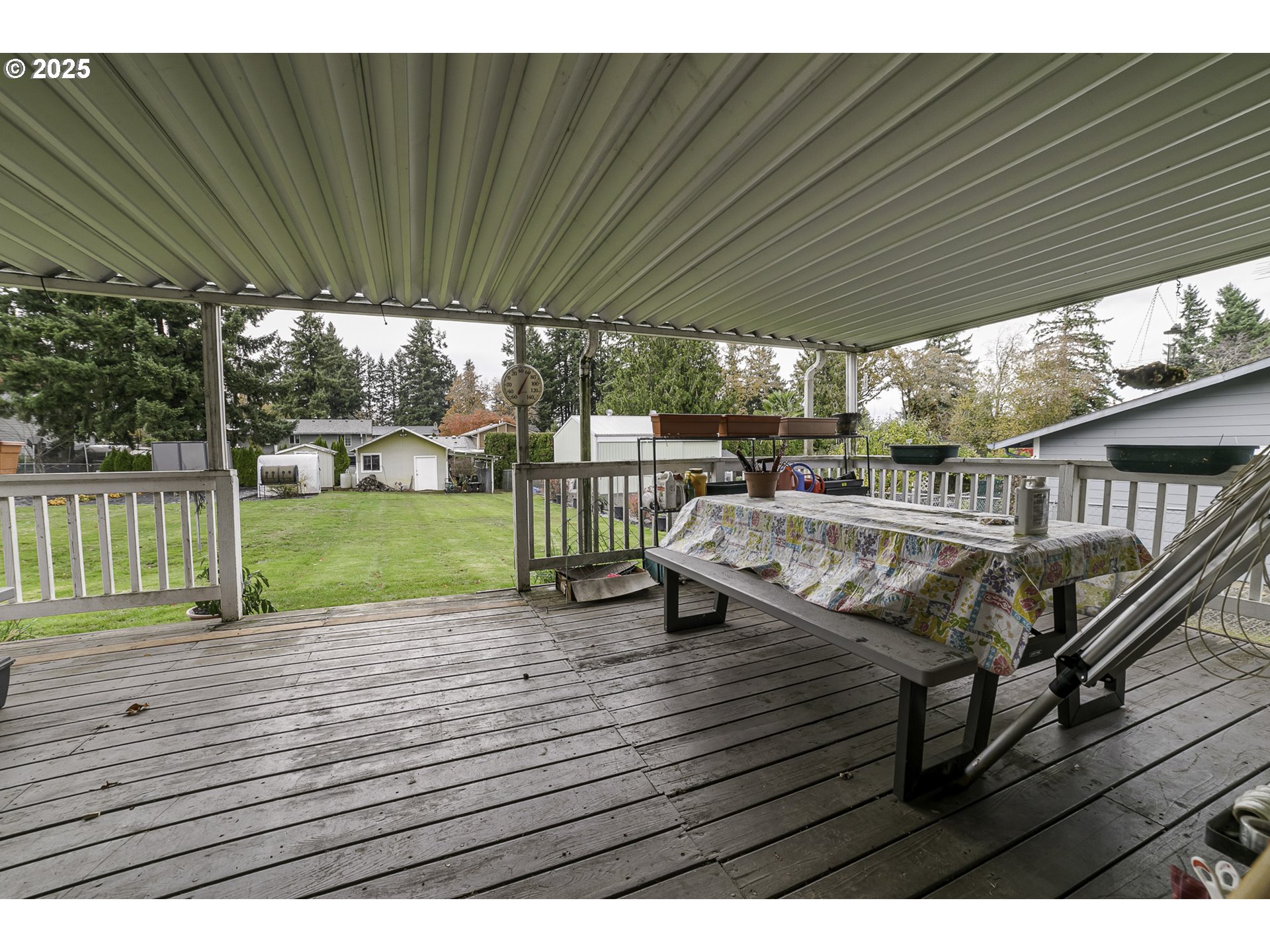 Enjoy nearly a half-acre of space with a fantastic garden area, a concrete-floor shed/shop with power and lean-to, and a huge covered deck perfect for year-round outdoor living. This beautifully maintained single-level home offers easy living with laminate floors in the kitchen, dining, and family rooms. Recent updates include new driveway and sidewalk (2017), full re-piping (2016), a new furnace and A/C (2023), and a remodeled bathroom with a walk-in shower (2024). Room to spread out, garden, or work on projects—this property offers rare space and comfort right in the city!