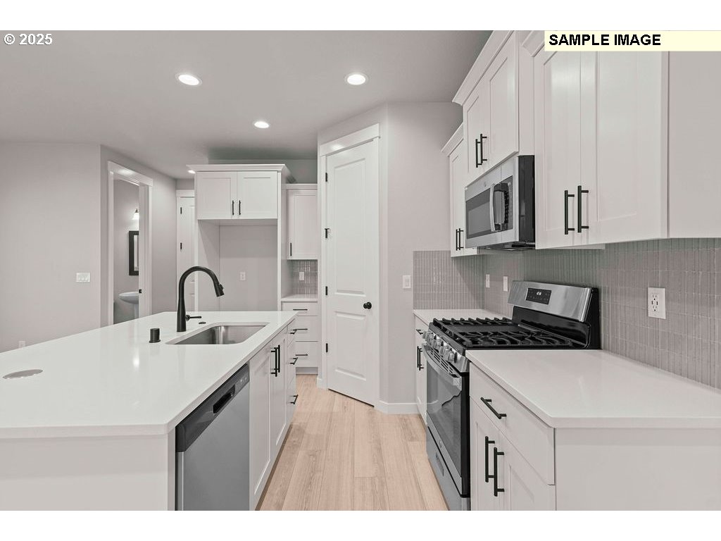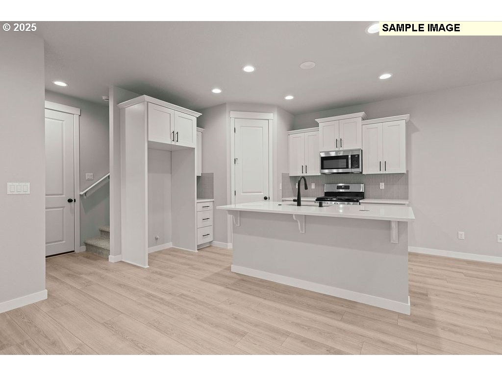 Corner townhome unit in Ramble Creek, a brand-new community in a pristine wooded setting with walking trails, parks, a playground, creek and tall trees, all within easy access to I-5 and I-205. This townhome is an end unit in a four-plex, featuring 3 bedrooms, 2.5 bathrooms, and a 2-car garage. Standard features and included upgrades: Quartz counters, A/C, gas range cooking, beautiful trim work, 9 ft ceilings on main floor, 8 ft ceilings upstairs, vaulted ceilings in bedroom, fenced yard with landscaping and irrigation. HOA maintains exterior of home and landscaping for low maintenance living! Set your GPS to 4519 NE 183rd Street Vancouver, WA 98686 and come take a tour of this beautiful home! This home is estimated to be completed in December 2025.