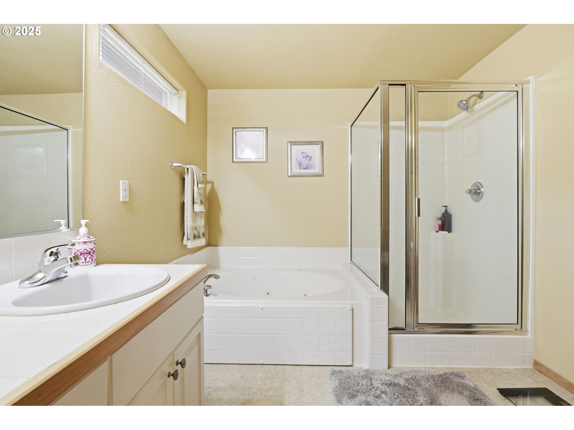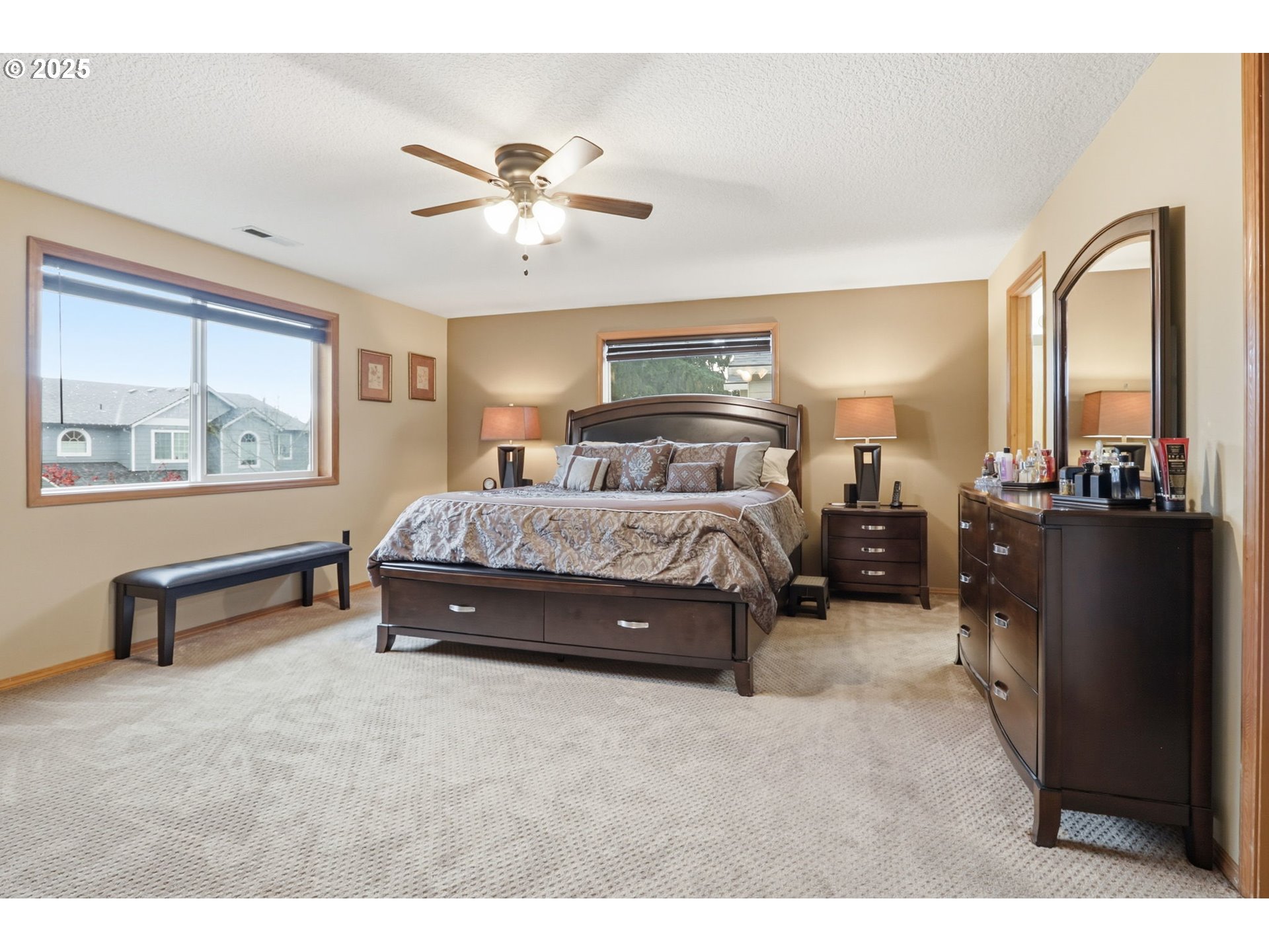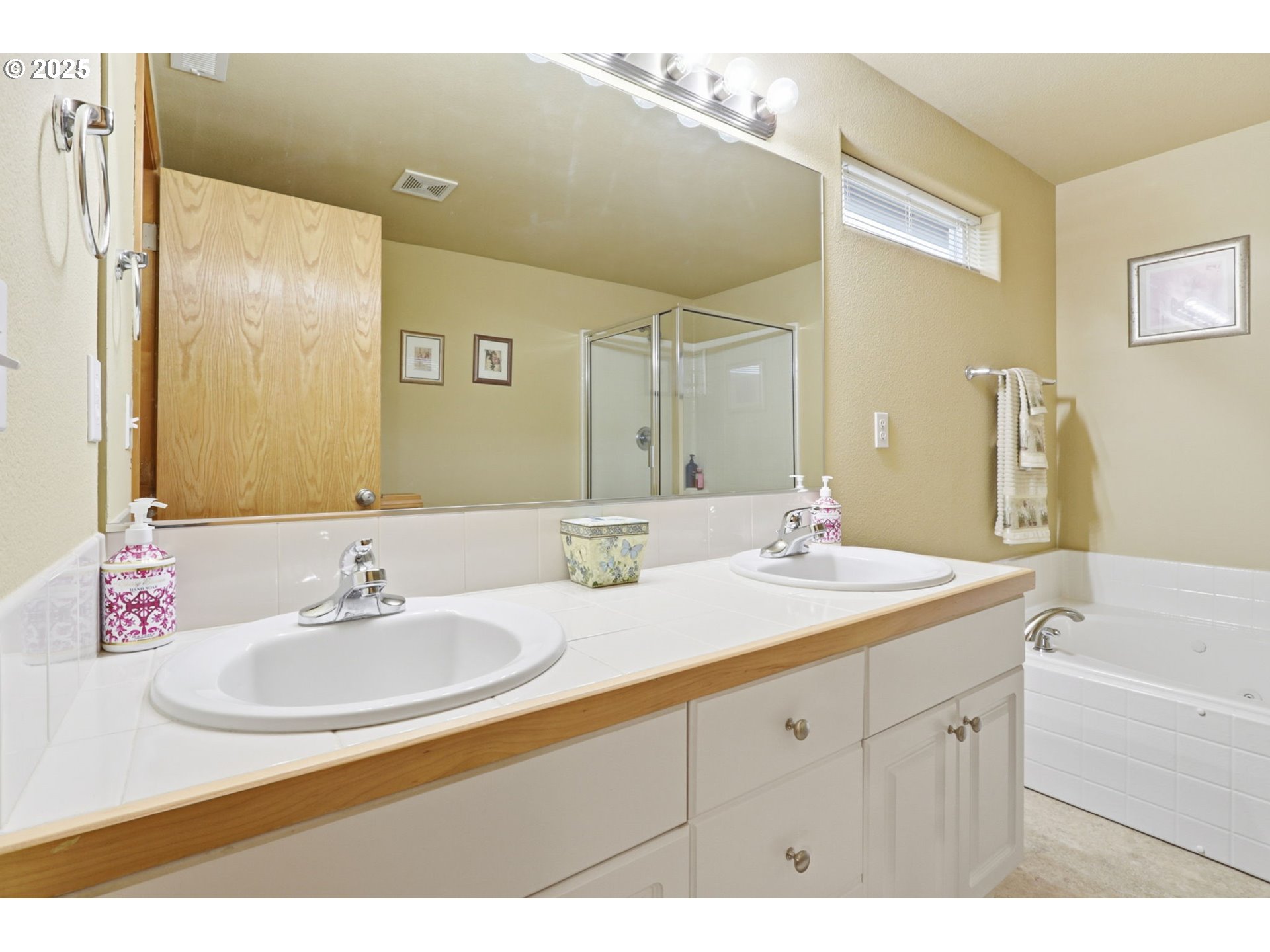 This meticulously maintained, move in ready, single-owner home is ready for you to make it yours. Located in a quiet and easily accessible neighborhood, this nearly 3000sqft home offers 4 large bedrooms, both formal and casual dining spaces, formal and casual living rooms, and a spacious loft. The light and bright kitchen features stainless steel appliances, a breakfast nook, an eating bar and lots of room to entertain. Upstairs the primary suite is the perfect retreat with a gas fireplace, large walk in closet and spacious bathroom with a jetted soaking tub! The three spare bedrooms are all good sized with ample closets and the open loft provides space for an extra office, gym, or play area. Outside, the beautiful landscaping and large covered patio make an idyllic outdoor living space.