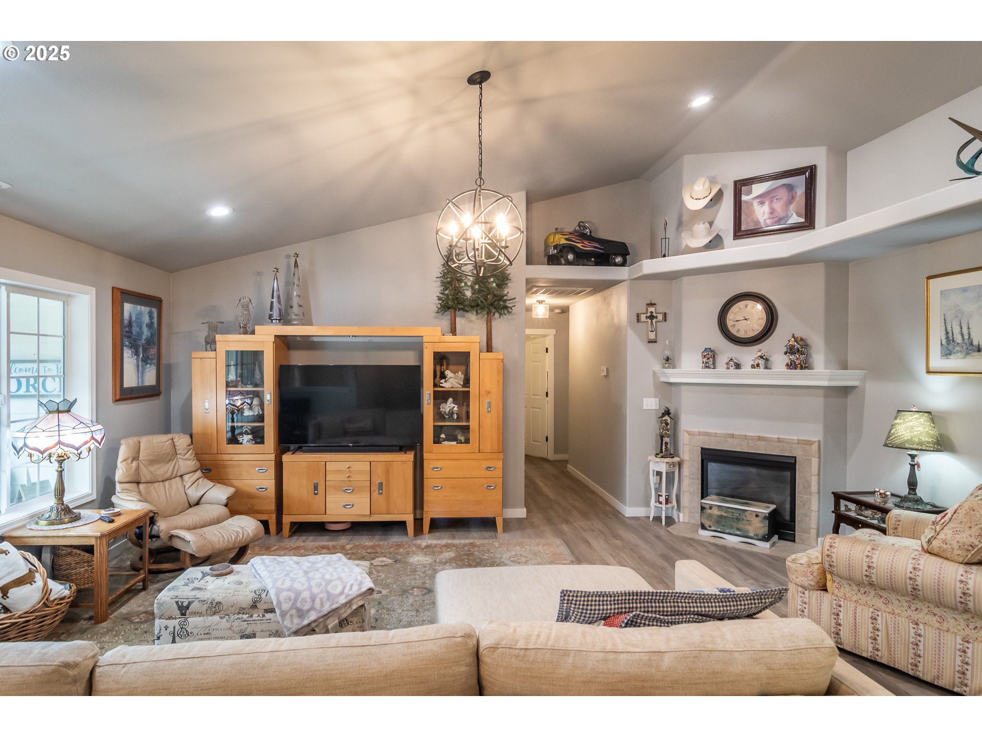 Gorgeous Cul-de-Sac Home: Private Nature Retreat! Welcome to your serene retreat! This gorgeous 3 bedroom, 2 bathroom home is nestled on a private lot at the end of a quiet cul-de-sac, offering the perfect blend of tranquility and convenience. Spanning 1800 square feet, the interior boasts vaulted ceilings and a cozy gas fireplace, creating a bright and inviting atmosphere. The heart of the home is the lovely kitchen featuring a walk-in pantry, a functional breakfast bar, and a dedicated dining area - ideal for casual meals or entertaining. Enjoy true privacy and nature, as the property is beautifully surrounded by trees and nature on the back and sides. Step outside to a private wrap-around patio and deck, making this home an entertaining dream. Storage and parking are a breeze with an attached 2-car garage and additional parking, including space for your RV. A handy tool shed is also included. This stunning home is waiting for you -- don't miss the chance to make it yours!
