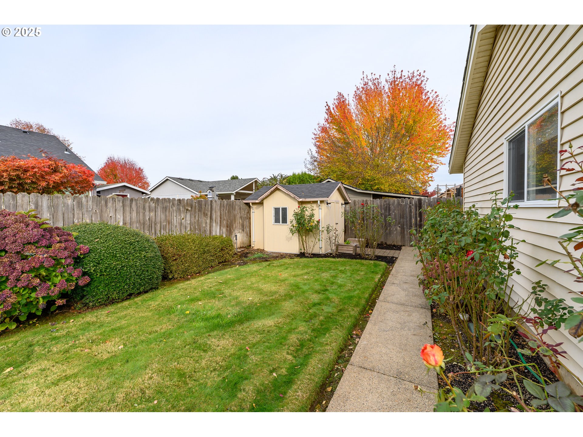Welcome to this lovely single-level home on a corner lot in one of McMinnville’s most desirable neighborhoods. Featuring two living rooms one with vaulted ceilings and large windows that fill the space with natural light, this home offers versatile space for relaxing, entertaining, or a home office. The kitchen opens to a living area and has a window above the sink overlooking the spacious backyard. A formal dining room is perfect for meals and gatherings, while the primary suite includes a walk-in closet and walk-in shower. A newer roof and heat pump provide peace of mind. The backyard offers a patio, toolshed, and plenty of room for gardening or play. Just steps from parks, walking paths, and conveniences, this home combines style, functionality, and an ideal McMinnville location.
