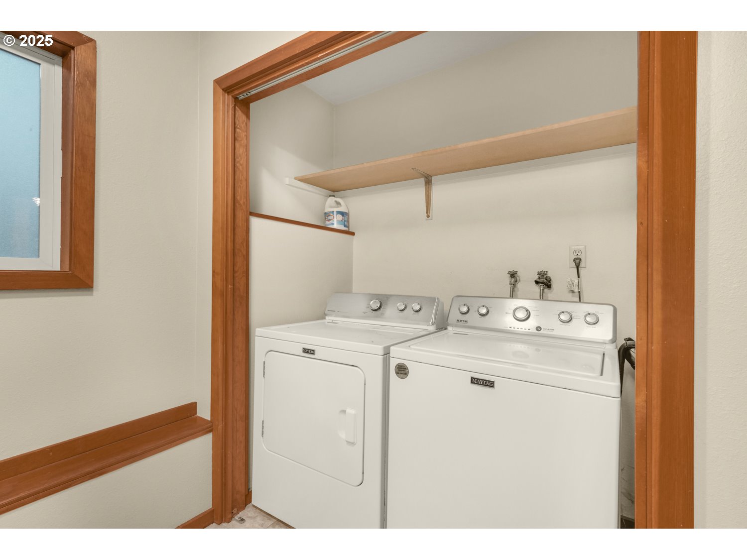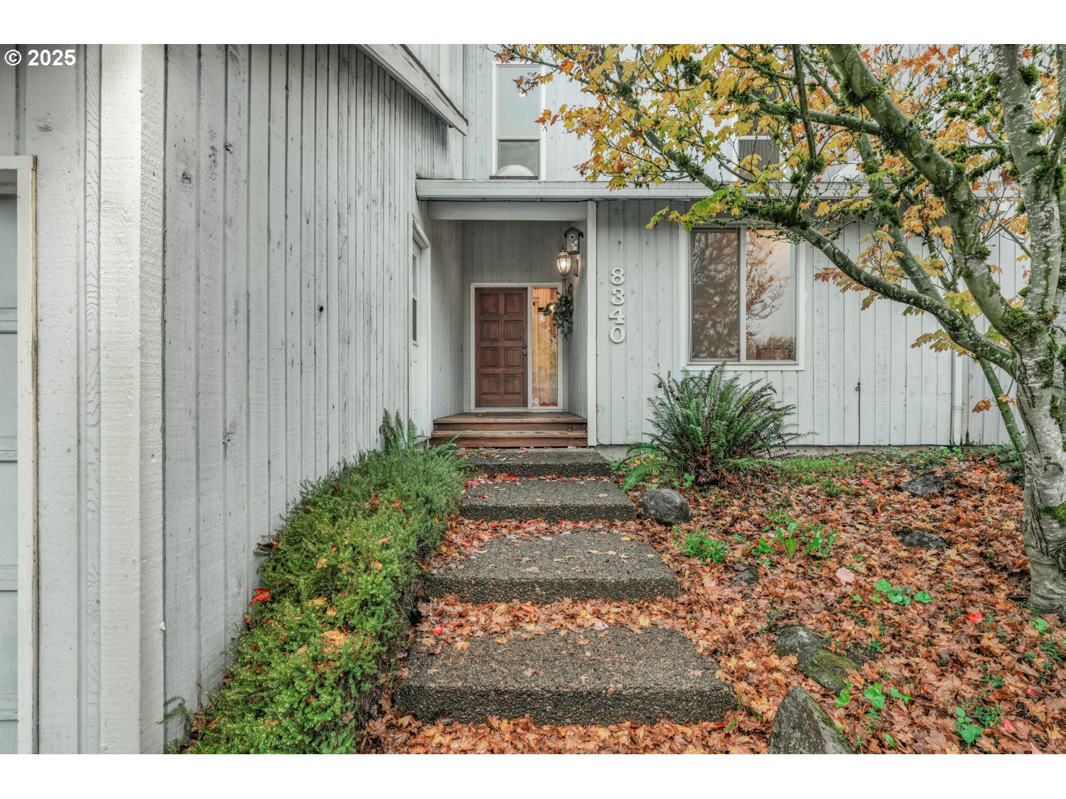 Discover comfort and convenience in this beautifully maintained 2-bedroom, 2-bath townhome nestled in the serene Colony Creek Estates community. Surrounded by mature trees, this home offers a peaceful, private setting just minutes from restaurants, shopping, Legacy Meridian Park Medical Center, and with easy access to I-5 and Hwy 217. Step inside the inviting living room with vaulted ceilings, a cozy fireplace, and sliding doors leading to a private deck that's perfect for relaxing or entertaining. The kitchen features stainless steel appliances, abundant cabinetry and prep space, an eat bar, skylight, and a built-in desk area ideal for remote work. Enjoy easy indoor/outdoor living with a door to the covered patio and fenced yard. The main-level bedroom offers a vaulted ceiling and nearby access to a spacious bath with walk-in shower and convenient laundry area. Upstairs, retreat to your private primary suite with sliding doors to a balcony, a walk-in closet, and a luxurious soaking tub under a skylight. Additional perks include HOA access to an RV parking area and a quiet community atmosphere that blends privacy with convenience.