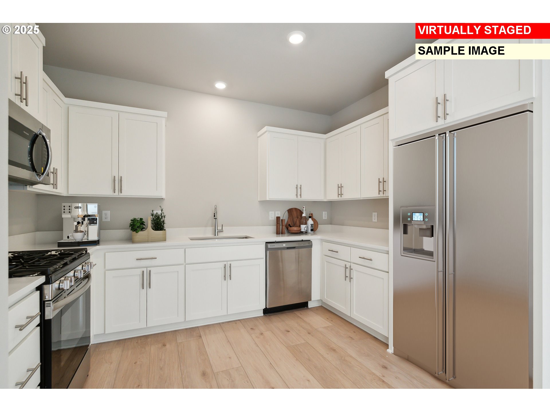 Welcome to Autumn Sunrise by Lennar. This move-in ready Dawson plan duplex offers a two-story design with an open main floor that connects the great room, kitchen, and dining area, with sliding doors leading to a backyard patio. A gas fireplace adds extra comfort, while upstairs offers three bedrooms including a private primary suite with an en-suite bath featuring a double vanity and large walk-in closet. Interior finishes include Shaker-style cabinets, stainless steel appliances, quartz countertops, LVP (luxury vinyl plank) flooring in the kitchen and entry way, and LVT (luxury vinyl tile) flooring in the baths, plus fencing and landscaping. This home also includes central air conditioning, a refrigerator, washer and dryer, and blinds—all at no extra cost! Autumn Sunrise is a vibrant community minutes from I-5, shopping, and dining, and features an onsite park with a playground, fire pit, and basketball court. Rendering is artist conception only. Photos are of a similar home, features and finishes will vary.
