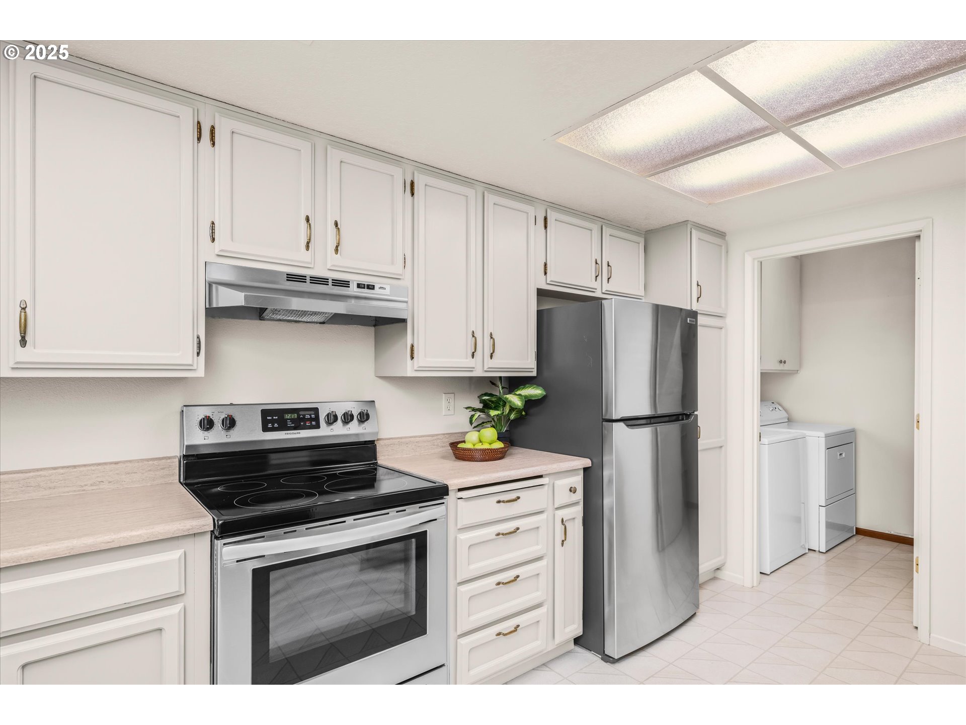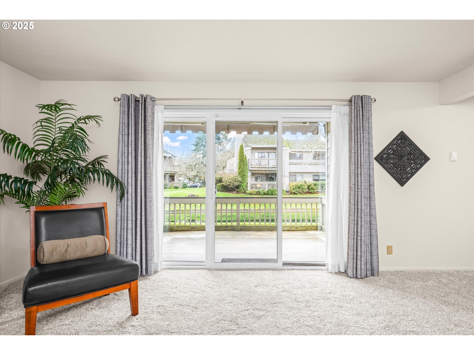 Ground-Level, 3 bedroom, 2 bathroom Island Lakes Condominium. Welcome to this spacious and beautifully maintained condominium in the desirable Island Lakes community. Thoughtfully designed living space, this home features a parquet flooring entry which flows to plush carpeting throughout, a cozy living room with a fireplace, and a sliding glass door that opens to a covered patio with an awning extension for those warm days—perfect for relaxing while enjoying views of the tranquil pond and pool area. The kitchen boasts ample cabinetry and storage, vinyl flooring, a stainless steel double sink, dishwasher, & refrigerator, and an eat bar overlooking the dining room. The spacious primary ensuite offers luxury vinyl plank flooring, a double vanity, step-in shower, a carpeted walk-in closet, a private commode, and a sliding glass door to a covered, fenced, private patio to enjoy the morning sun with your coffee and iPad news. New luxury vinyl plank flooring in the guest bathroom. Lots of hallway closet space. The laundry room includes shelving and comes complete with a washer and dryer. Additional features include one assigned covered parking space and a host of community amenities: water, sewer, garbage, basic internet and TV, a car wash station, clubhouse, pool, secure mail area, and professionally maintained landscaping. Conveniently located by shopping, the bus line, and the Ruth Bascom Riverbank Path—ideal for walking or biking along the Willamette River. Don’t miss your opportunity to own this rare ground-floor unit in one of Eugene’s most picturesque communities.