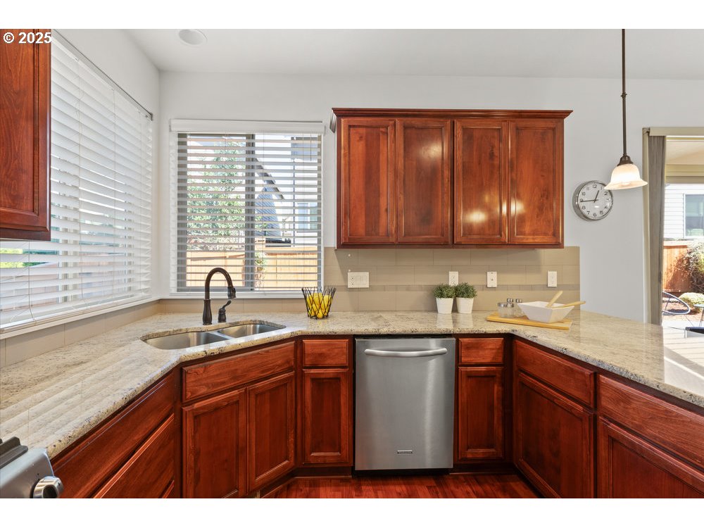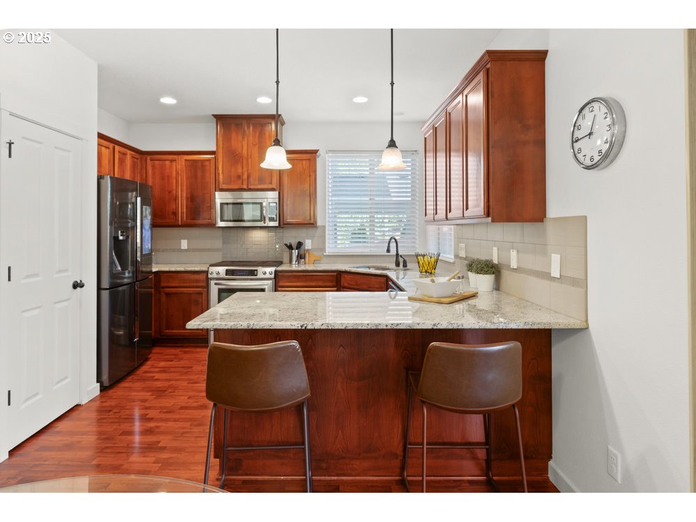 Modern design, thoughtful layout, and unbeatable location come together at 13543 SE Almond Drive. This 4-bedroom, 3-bath home offers over 2,500 sq ft of versatile living space, complete with standout features like a third full bathroom and 612 sq ft of dedicated garage storage. The open-concept main floor features a spacious living area, dining room, and a well-appointed kitchen with stainless steel appliances, a large island, and ample storage. A full bathroom and bedroom on the main level create the perfect setup for guests, remote work, or multigenerational living.The home has been freshly painted throughout, and the three upstairs bedrooms feature brand-new flooring. The light-filled primary suite includes a walk-in closet and en suite bath, while a third full bathroom, laundry room, and bonus loft provide flexibility for any lifestyle.The backyard offers a flat lawn, raised garden beds, and direct access to green space through a private gate—ideal for play, pets, or relaxing outdoors. The oversized garage delivers rare additional storage or workshop potential, with 612 sq ft of space not included in the main square footage.Located on the same street as Pfiefer Park and just two blocks from Rock Creek Middle School and Clackamas High School, this home also offers unbeatable access to local dining, shopping, and the seasonal farmers market—all just minutes away. A perfect blend of comfort, functionality, and convenience in one of Clackamas’ most desirable neighborhoods. Listing agent is related to seller.