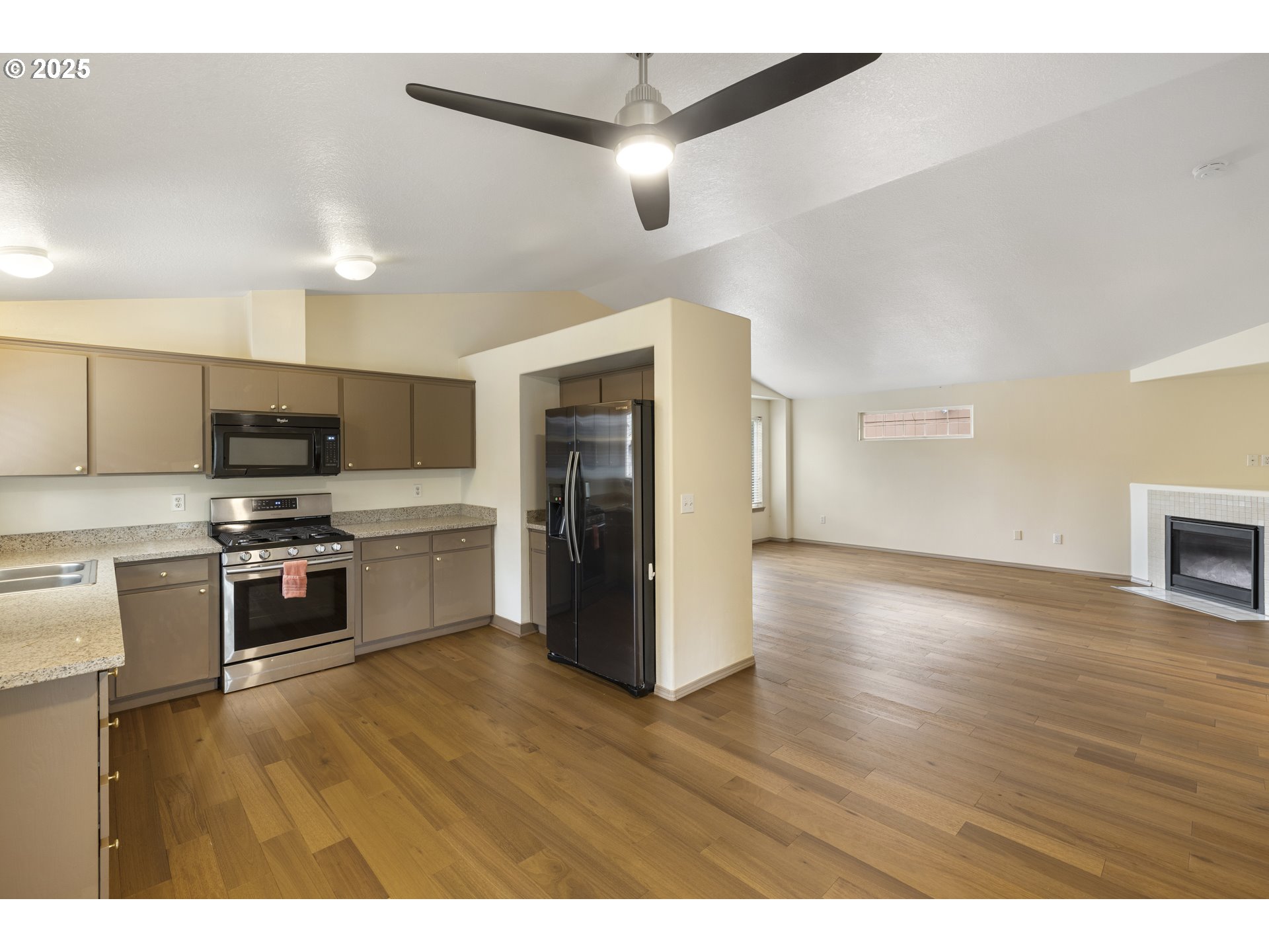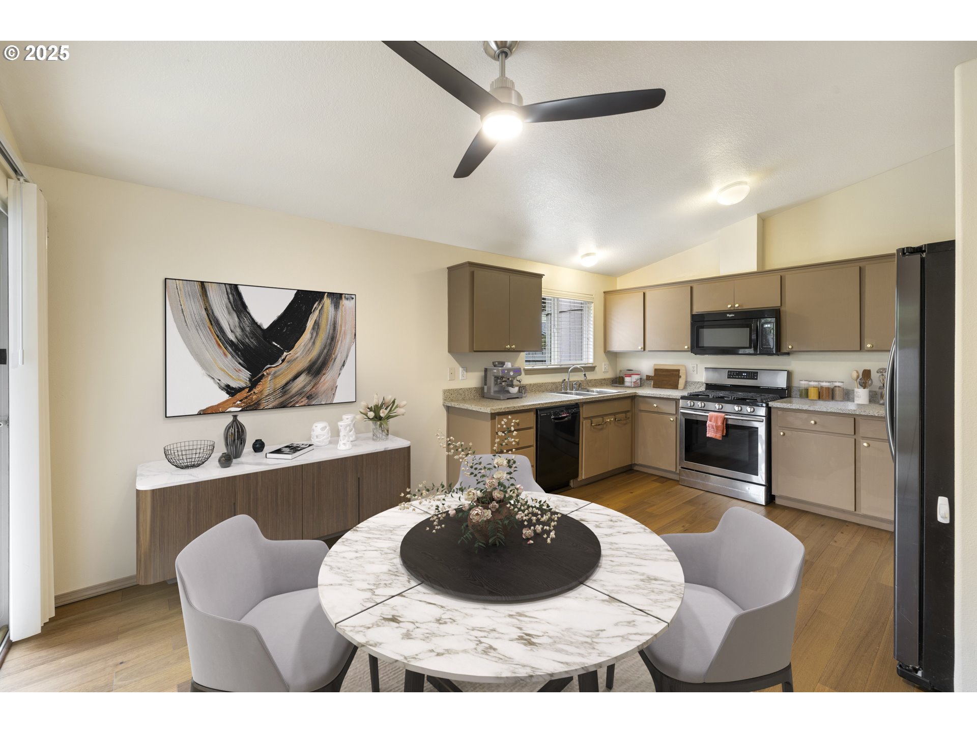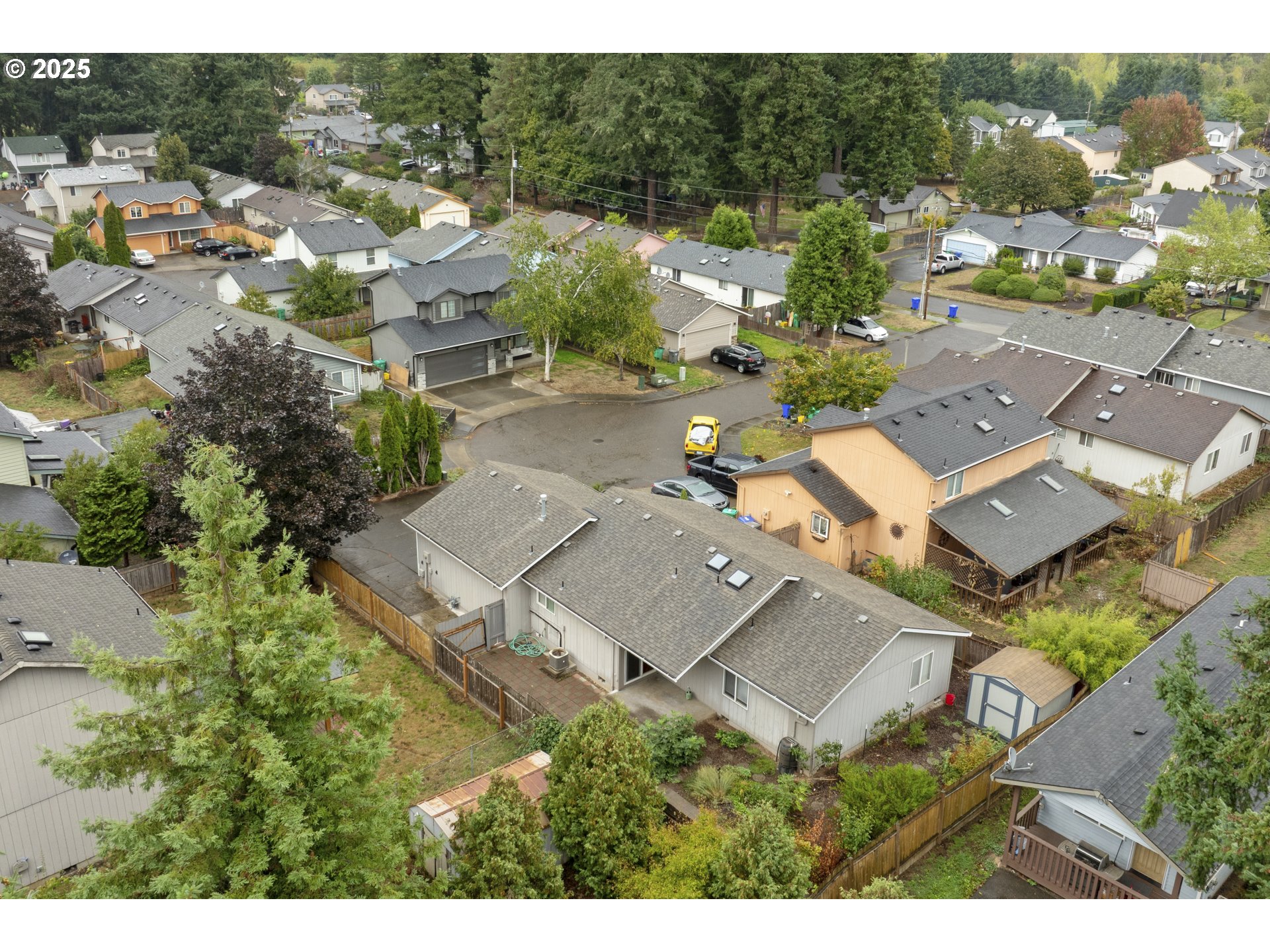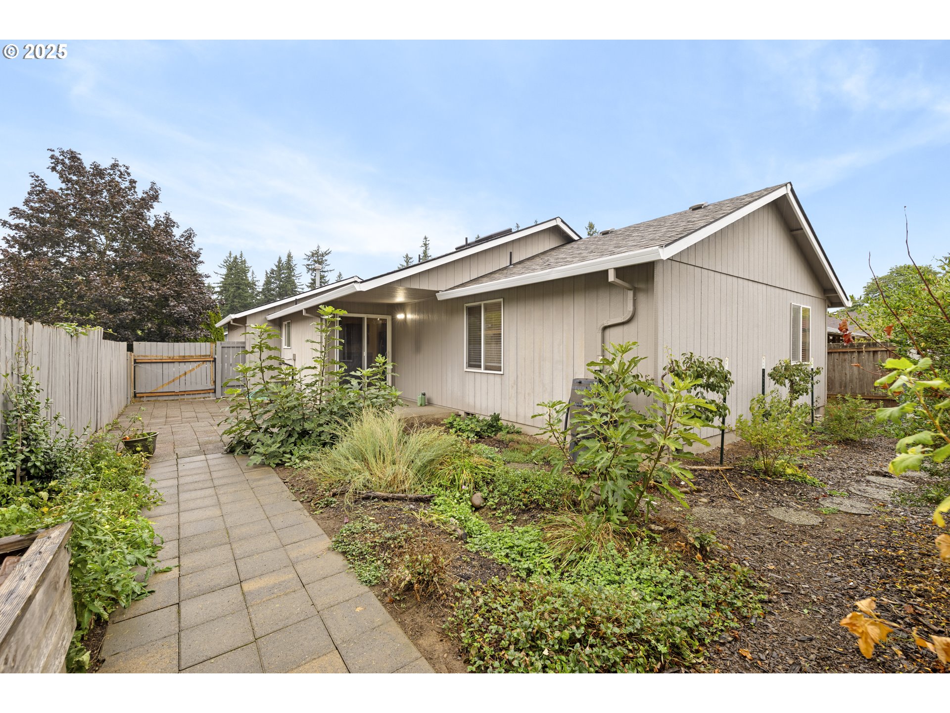 Tucked away in a cul-de-sac, this beautifully maintained one-level home is packed with charm and updates throughout. The spacious, fenced lot is a gardener’s dream, featuring raised garden beds, a thriving pollinator garden with rain barrel irrigation, and a Tuff Shed for all your tools. Step inside to discover brand new natural hardwood floors with 25 year warranty, vaulted ceilings, generously sized primary suite, and large open living spaces anchored by a cozy gas fireplace. The bright kitchen offers updated appliances and plenty of counter space. Other features include a new hot water heater, smart thermostat, skylights, walk-in shower, and regularly serviced systems. Lots of parking options along with space for an RV. This property is exceptionally well-maintained and offers a quiet yet convenient location. [Home Energy Score = 7. HES Report at https://rpt.greenbuildingregistry.com/hes/OR10142050]
