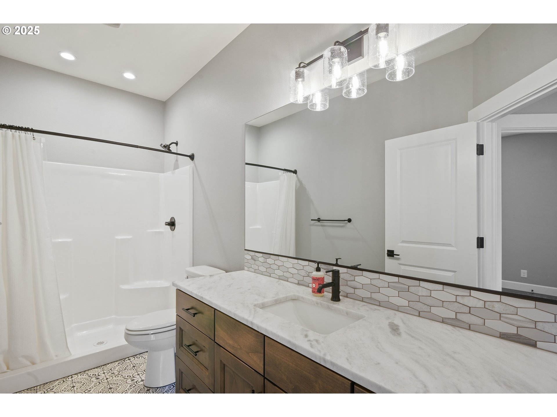 Step into this beautifully maintained, like-new home located in one of Battle Ground’s most desirable neighborhoods. Offering 5 spacious bedrooms and 3 full baths, this home is a perfect blend of high-end finishes and everyday functionality. The open-concept design features a show-stopping kitchen with a massive quartz island, stainless steel built-in appliances, pot filler, wine fridge, roll-out drawers for pots and pans, and an oversized walk-in pantry with custom built-ins and electrical outlets, ideal for small appliances or a coffee station.The open living and dining spaces are perfect for entertaining, featuring rich hardwood floors, a cozy gas fireplace with floor-to-ceiling shelving (with outlets for seasonal décor). The main-level primary suite is a true retreat, with direct access to the backyard, a stylish barn door, soaking tub, dual vanities, tiled roll-in shower, dedicated cabinet outlets for hair tools and accessories, and a spacious walk-in closet with built-ins and an island/storage area.The main floor also features two additional bedrooms, as well as a full guest bath. Upstairs, you’ll find two additional bedrooms, a full bath, a laundry room, and a spacious bonus room. The convenient main-level laundry room features built-in cabinetry, a sink, a pet box area, and a refrigerator. Step outside to the expansive double-wide covered patio, complete with a built-in firepit, ceiling fans, and gas BBQ hookup. The fully fenced backyard offers sprinklers, wrap-around concrete walkways, and a tool shed, ideal for both relaxation and entertaining.Additional features include a Tesla charger, hot water spigots front and back, smart fans, Nest thermostat, smart garage openers, zoned HVAC, central vac, a water filtration & softening system, tankless hot water, wired for high-speed networking, outlets in the eaves for security cameras and holiday lights. This home has it all, luxury, comfort, and thoughtful design. Come experience it for yourself!