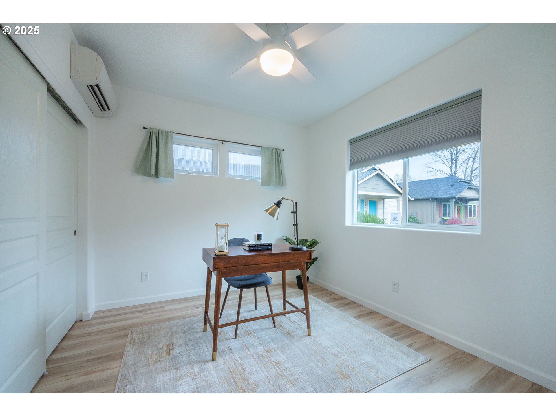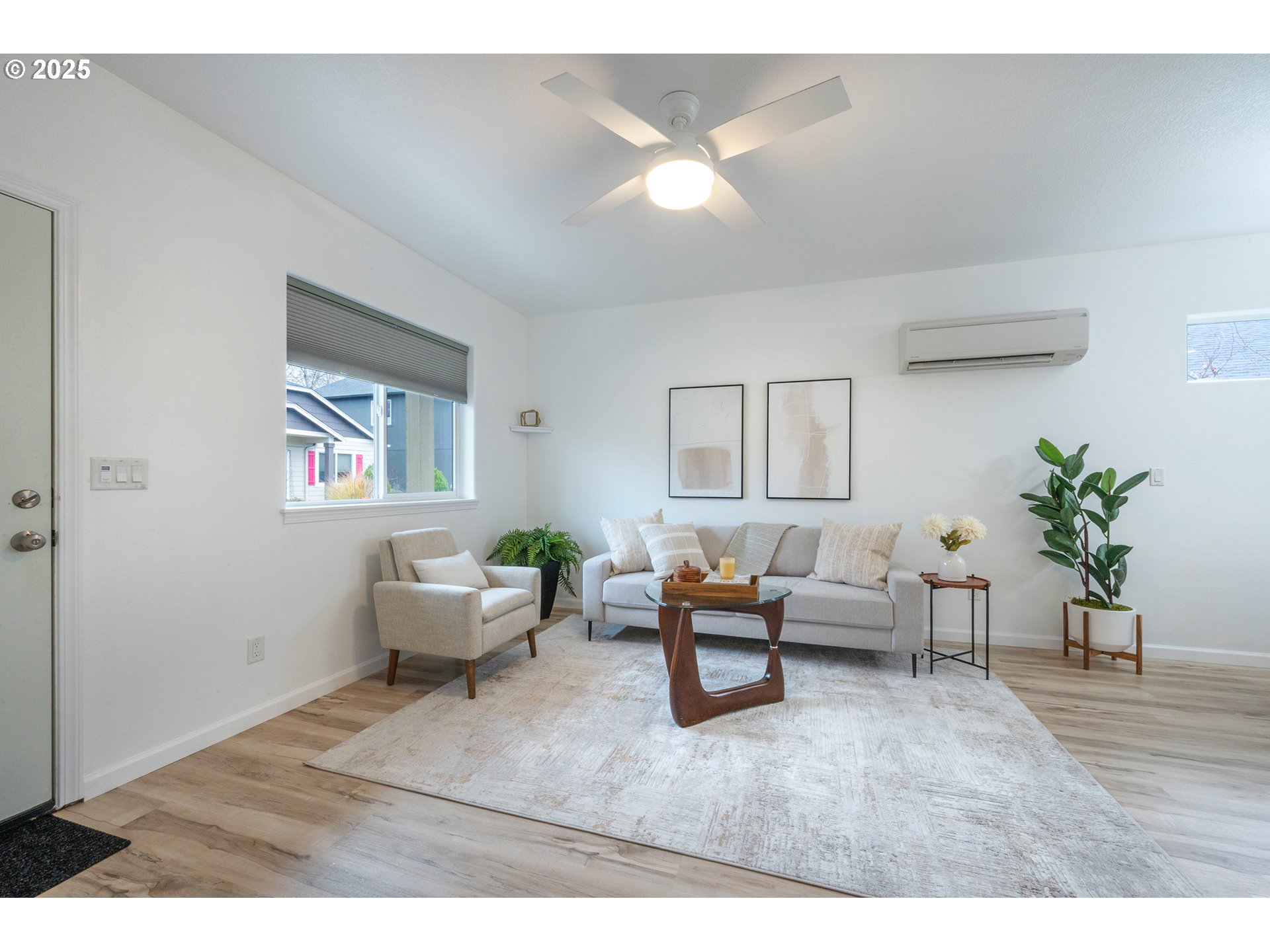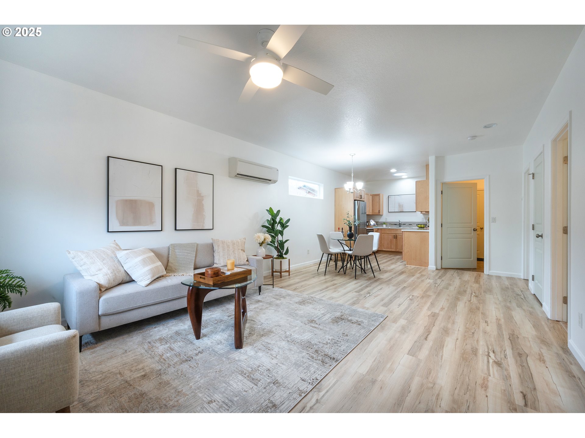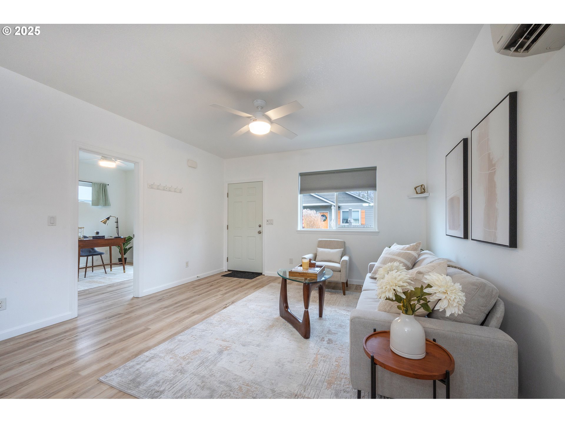 Updated, bright and move-in ready, this two-bedroom bungalow in the Amazon Cottages Community has an open floorplan and an attached single car garage. Seller upgrades include luxury vinyl plank flooring throughout and a beautifully remodeled kitchen with new cabinetry, quartz countertops, a solar tube and a new stainless steel refrigerator and dishwasher. A new ductless heating system was installed in 2024 and provides year-round efficient heating and cooling, with individual mini splits in the living room and both bedrooms. The bathroom has been tastefully renovated with a quartz countertop and a walk-in shower, a utility sink was added in the laundry room for added convenience, and six new windows were installed on the north side of the house for increased natural light. Vibrant location, close to the Amazon Path, dog park, shopping, restaurants, and just a short commute to the University of Oregon and I-5. The HOA maintains the shared common areas for easy, low-maintenance living!