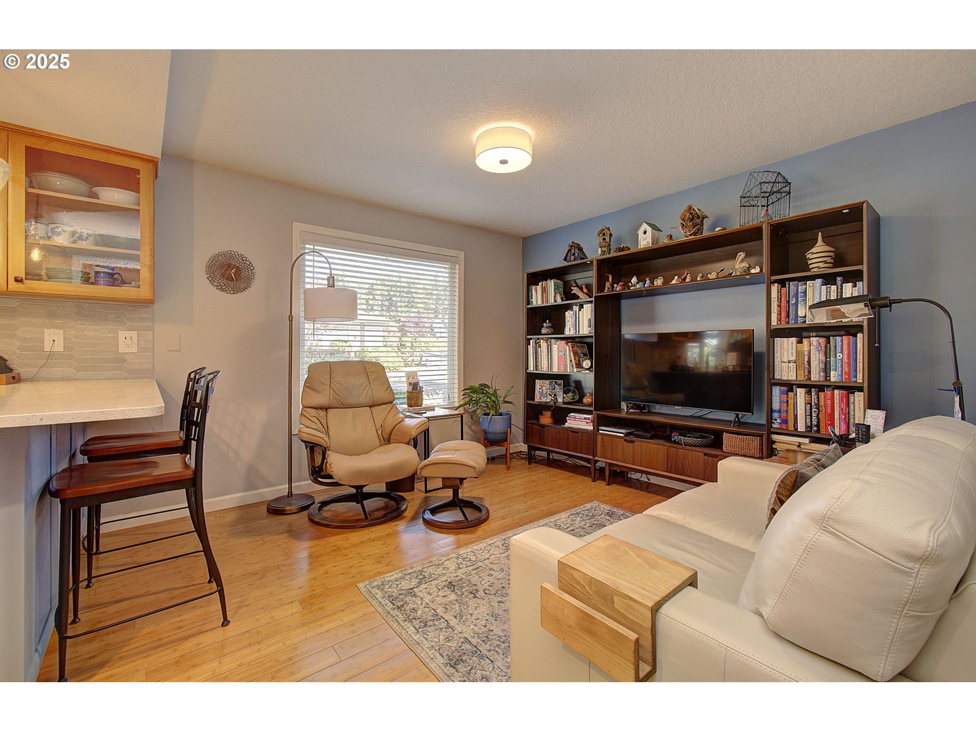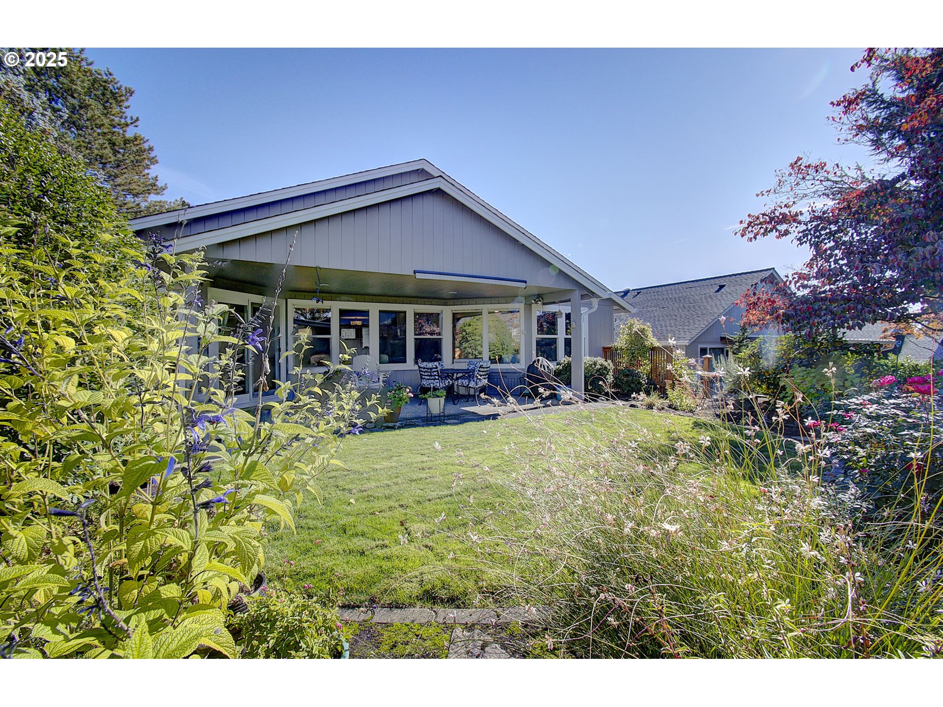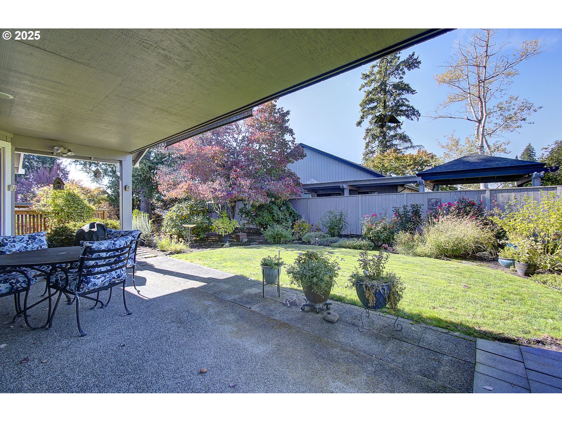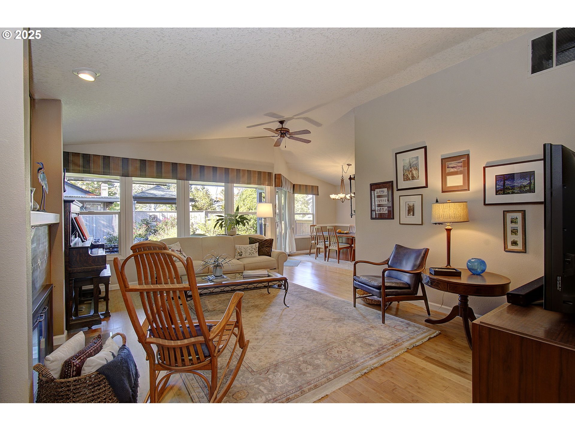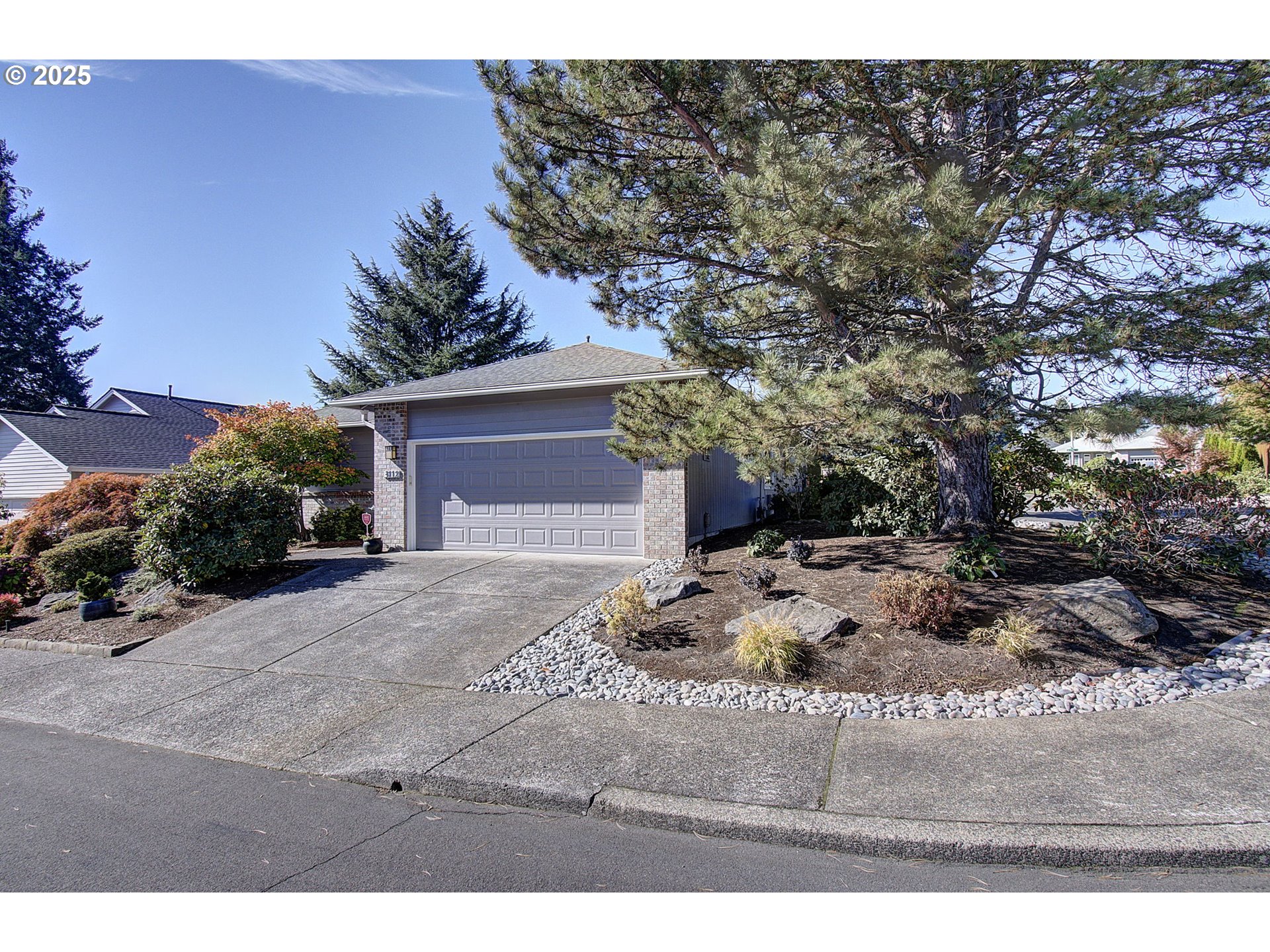 Situated on a corner lot of this sought after 55+ community, this updated home is classy, beautiful & ready for its new owner. Relax in the spacious family room with vaulted ceilings and a cozy gas fireplace. Bamboo floors add warmth and style, while silhouette blinds provide just the right amount of light. The kitchen features quartz countertops, newer appliances, and convenient pull-out shelves in both the cabinets and pantry. There is gas hook up for the stove, in case you want to change the electric stove out. The primary suite offers two closets and a remodeled bath with a walk-in shower. This home has a TON of storage throughout every room. The backyard is a quiet and peaceful oasis—complete with a covered patio and sunshade, new fence, flagstone and paver walkways, and front and back sprinklers for easy maintenance. Additional updates include new carpet, updated windows, fresh exterior paint, and LeafGuard gutters for peace of mind. This home combines comfort, convenience, and an amazing community of people—making it the perfect place to enjoy your next chapter.