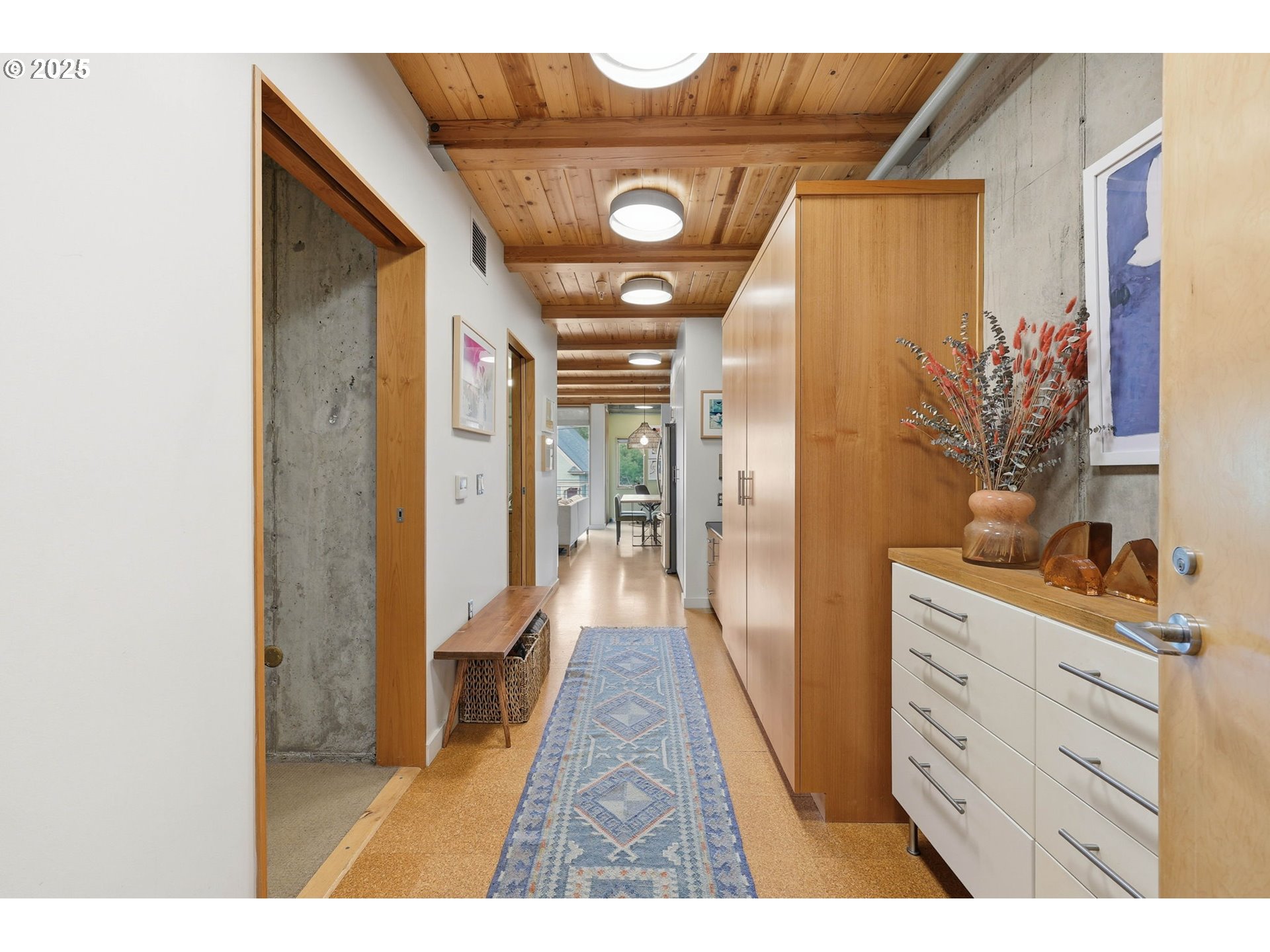 Don’t miss this rare opportunity to own one of only 32 Mississippi Avenue Loft Condos—ideally situated at the heart of one of Portland’s most vibrant neighborhoods. Just steps from renowned local favorites like Fifty Fifty, Prost!, Por Qué No, and Mississippi Studios/Bar Bar, this home places you within easy reach of food carts, microbreweries, coffee and ice cream shops. Constructed with heavy timber, concrete, and steel, the building offers exceptional privacy and sound insulation. Inside, you’ll find a modern, light-filled space featuring knotty pine ceilings, concrete walls, cork floors, an open floor plan, stainless steel appliances, gas cooking, and built-ins throughout. The bathroom showcases tile floors and a tiled shower surround. Additional highlights include an in-unit laundry area, a foyer with custom cabinetry, a built-in office nook, and a private balcony overlooking bustling Mississippi Avenue. This LEED Gold–certified building also offers air conditioning, a serene bamboo-filled courtyard, deeded secure parking, and optional storage available for purchase. Conveniently located near parks and freeways, this condo blends sustainable modern living with the best of Portland’s urban lifestyle. The HOA covers all but electricity! View the video walkthrough at:https://tinyurl.com/zmwb5jcn